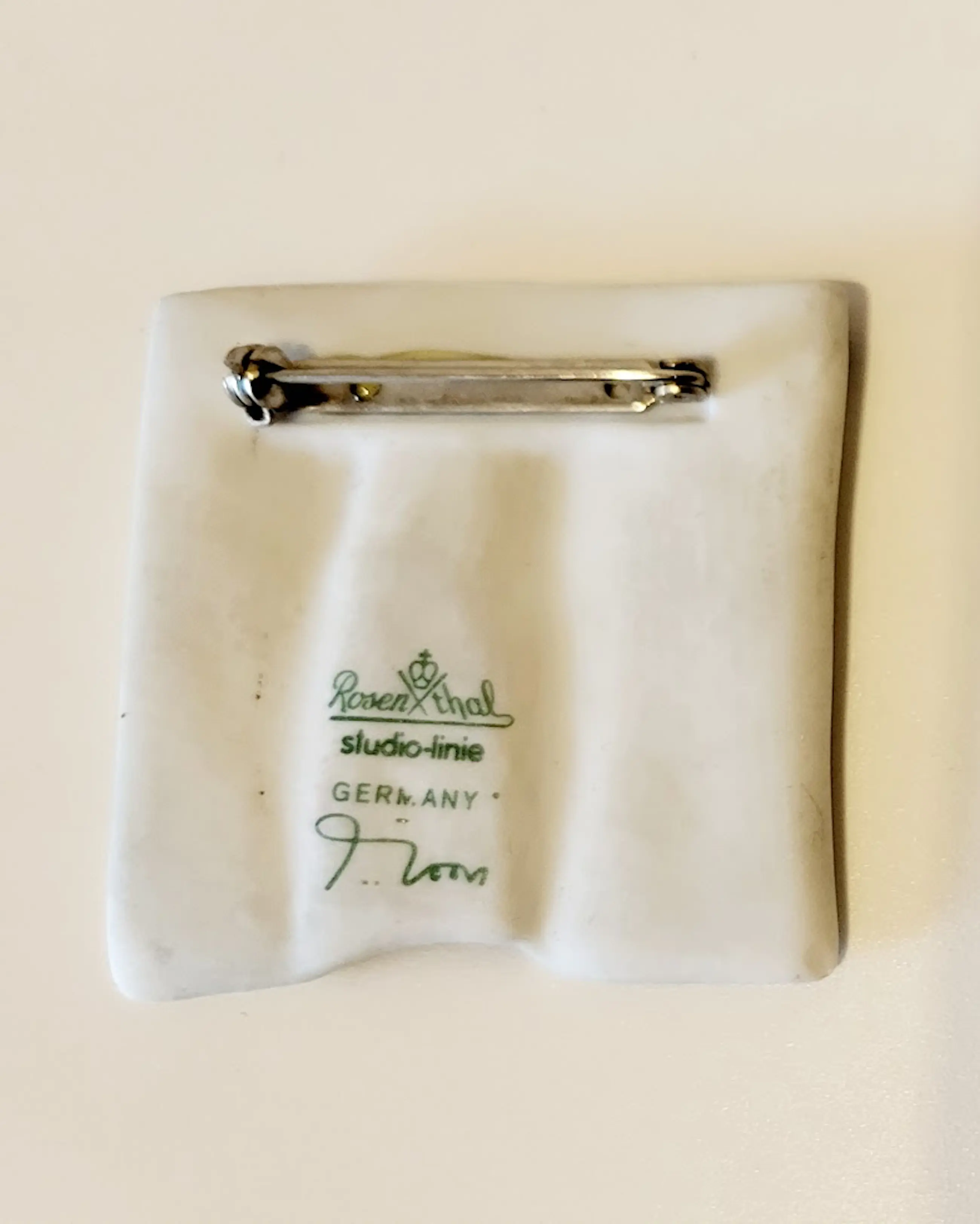 Porseleinen broche van de Nederlands ontwerper Johan van Loon (1934-2020), die van 1980 tot 1997 ontwerper was voor Rosenthal AG .