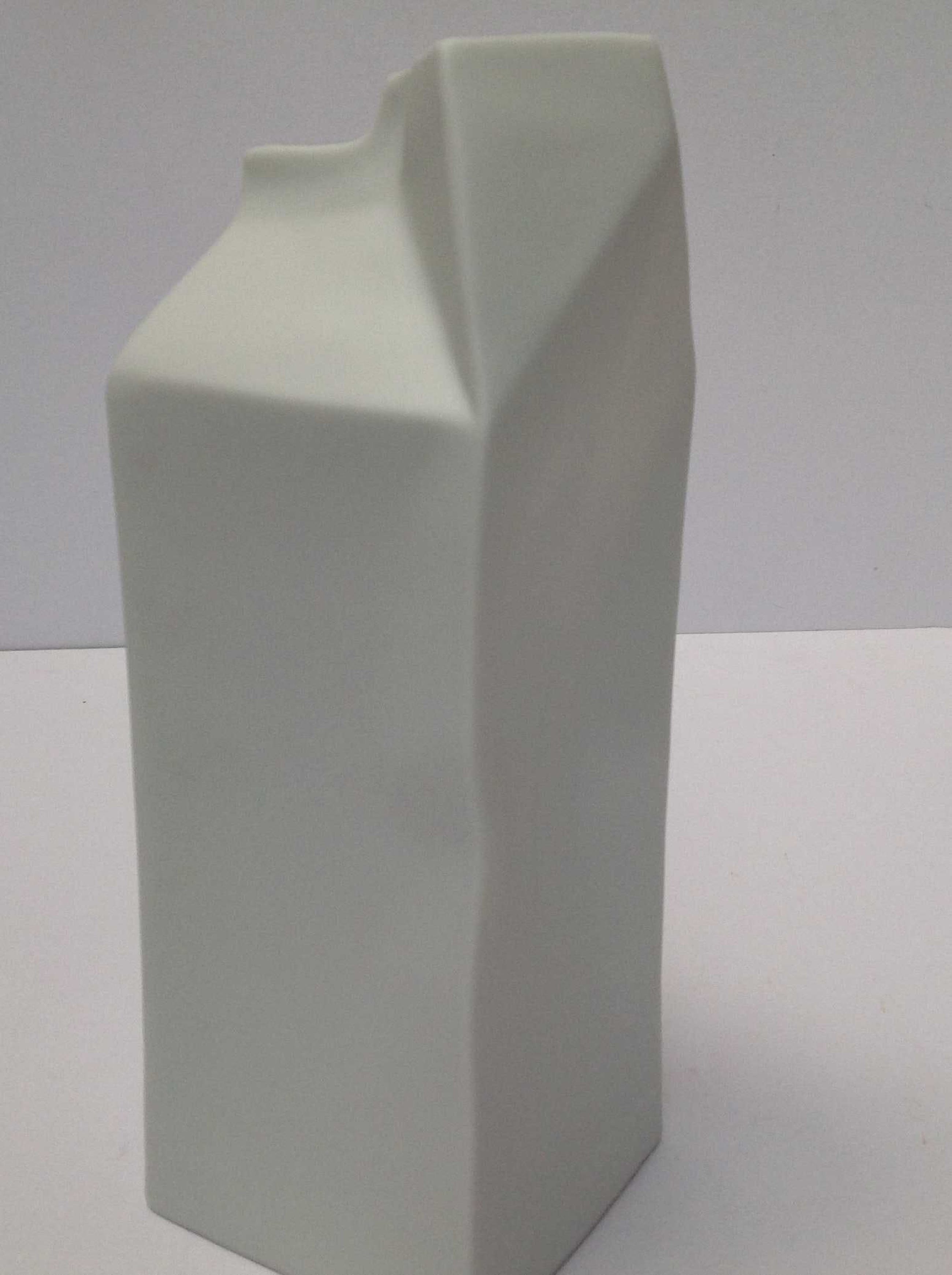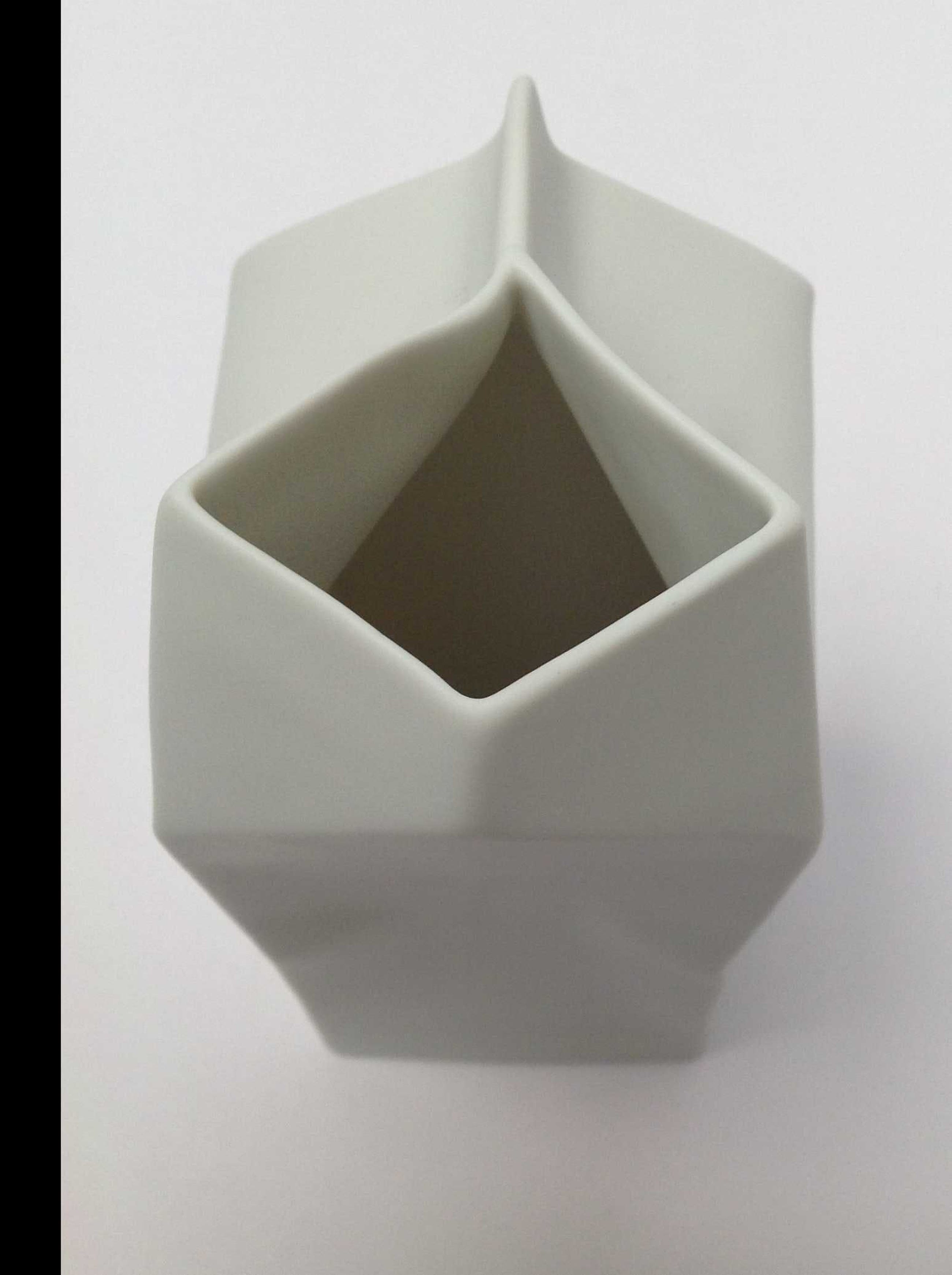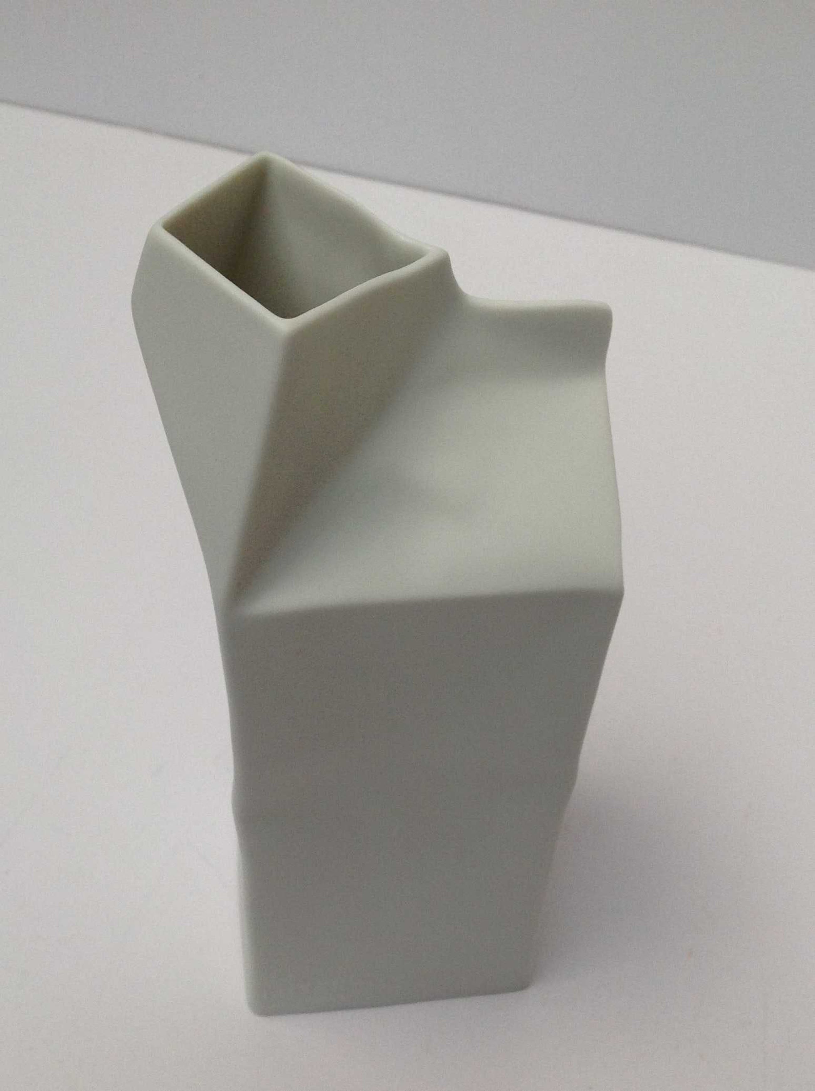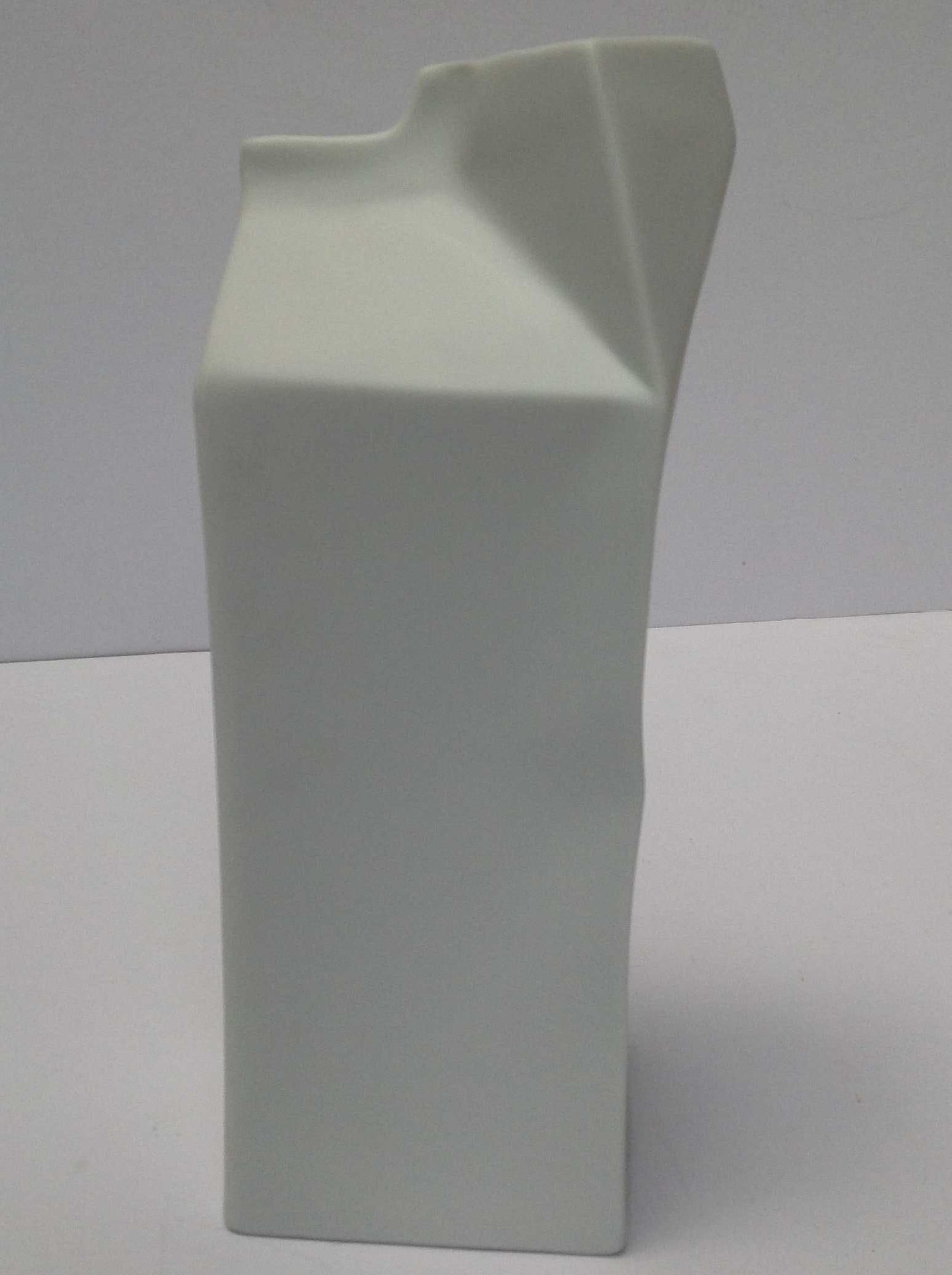 Prachtige, puntgave Melkpak vaas, wit biscuit porselein van Rosenthal ,uit de serie Do not Litter.