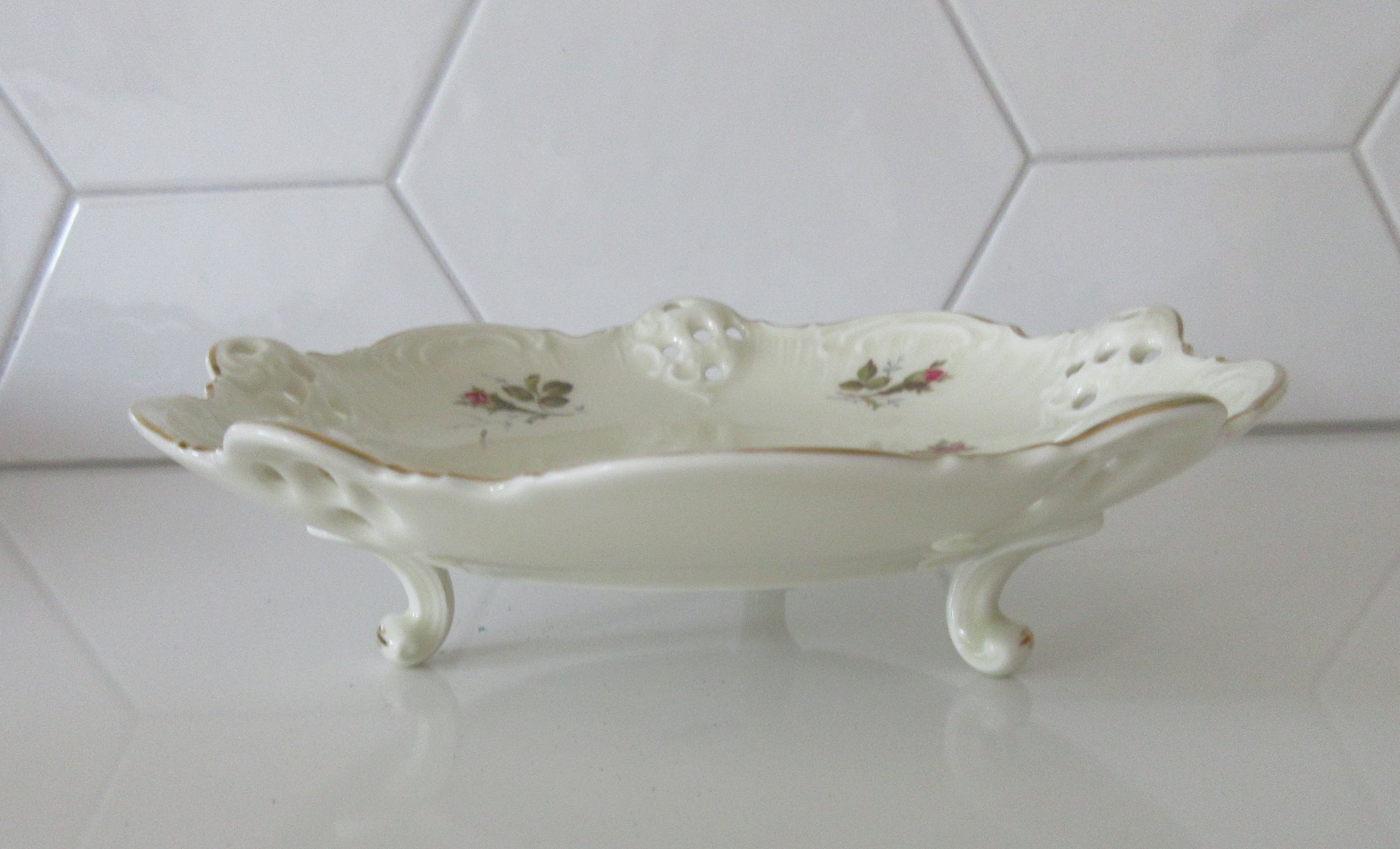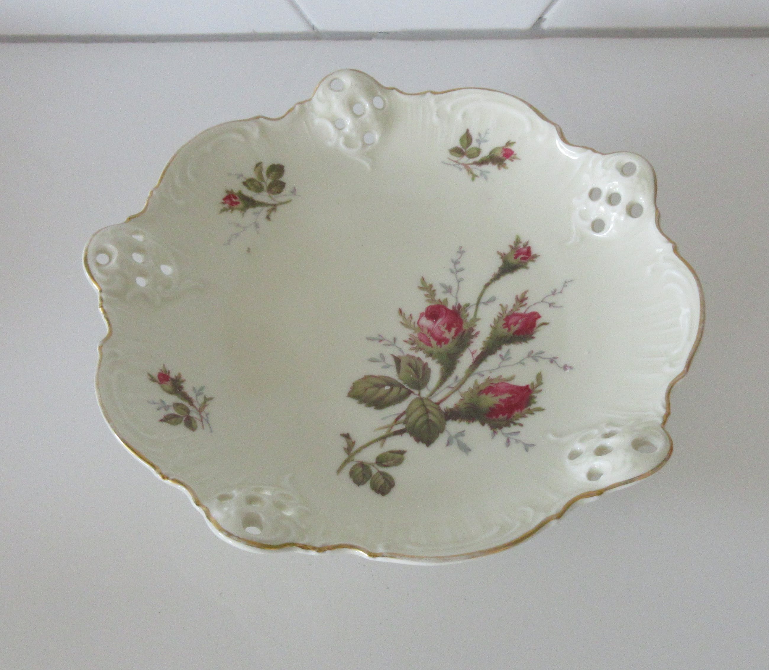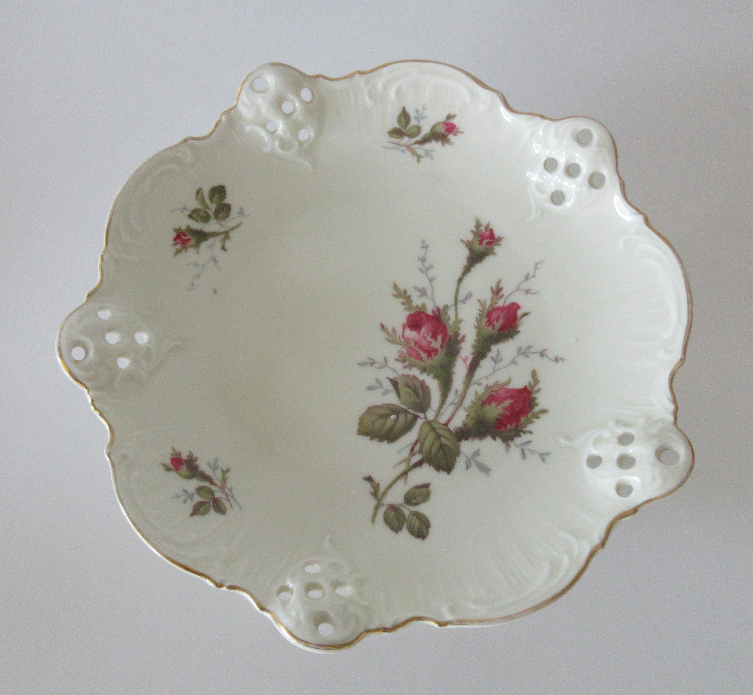 Mooie porseleinen cake standaard met floraal decor model Moliere, uitvoering porseleinfabriek Rosenthal uit Selb Duitsland.