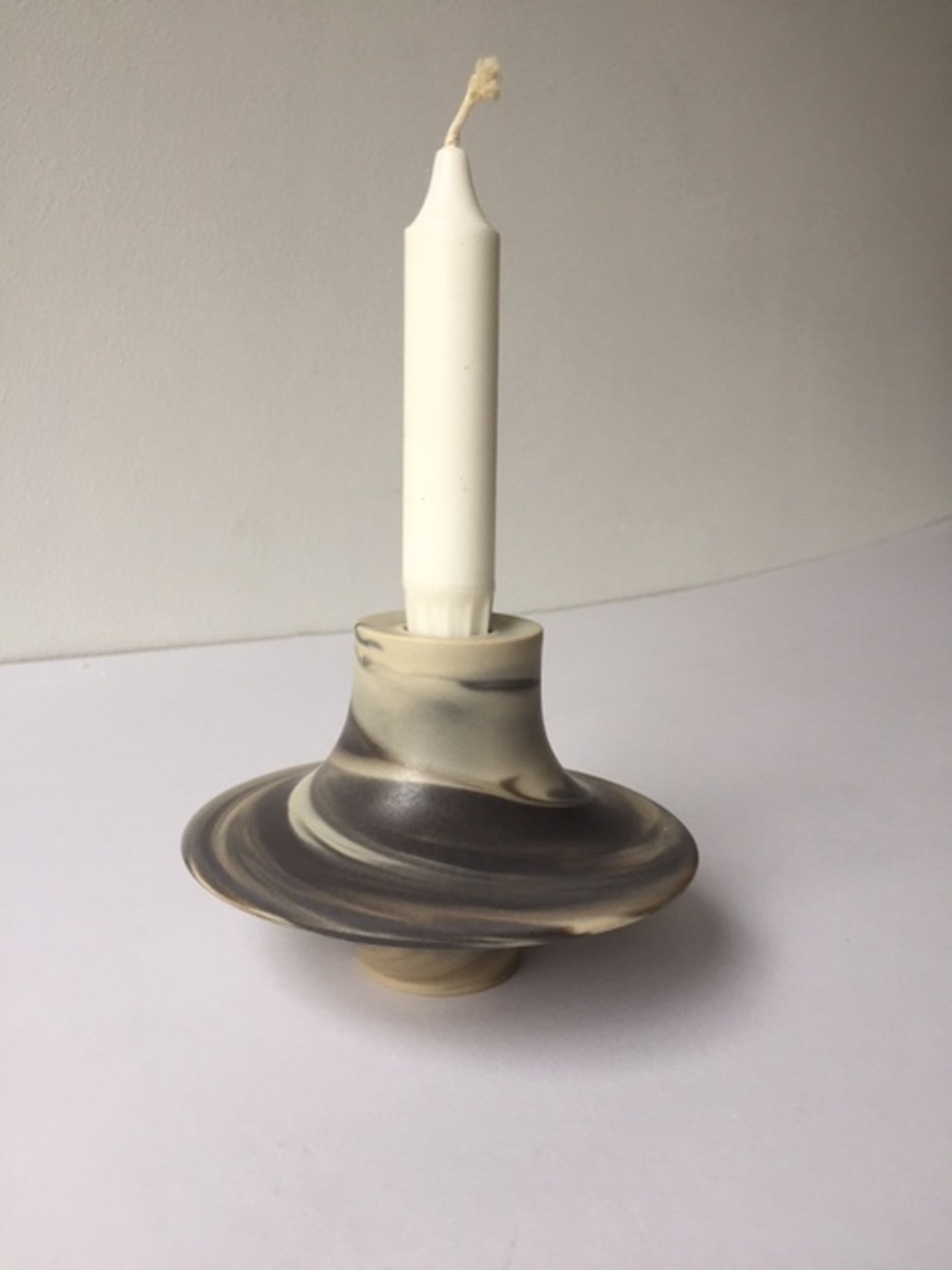Deze Ufo kandelaar van Rosenthal is uitgevoerd in Queensberry marble, vernoemd naar David Queensberry (1929), markies van Queensberry, een gerenommeerd Brits-Schotse keramist.