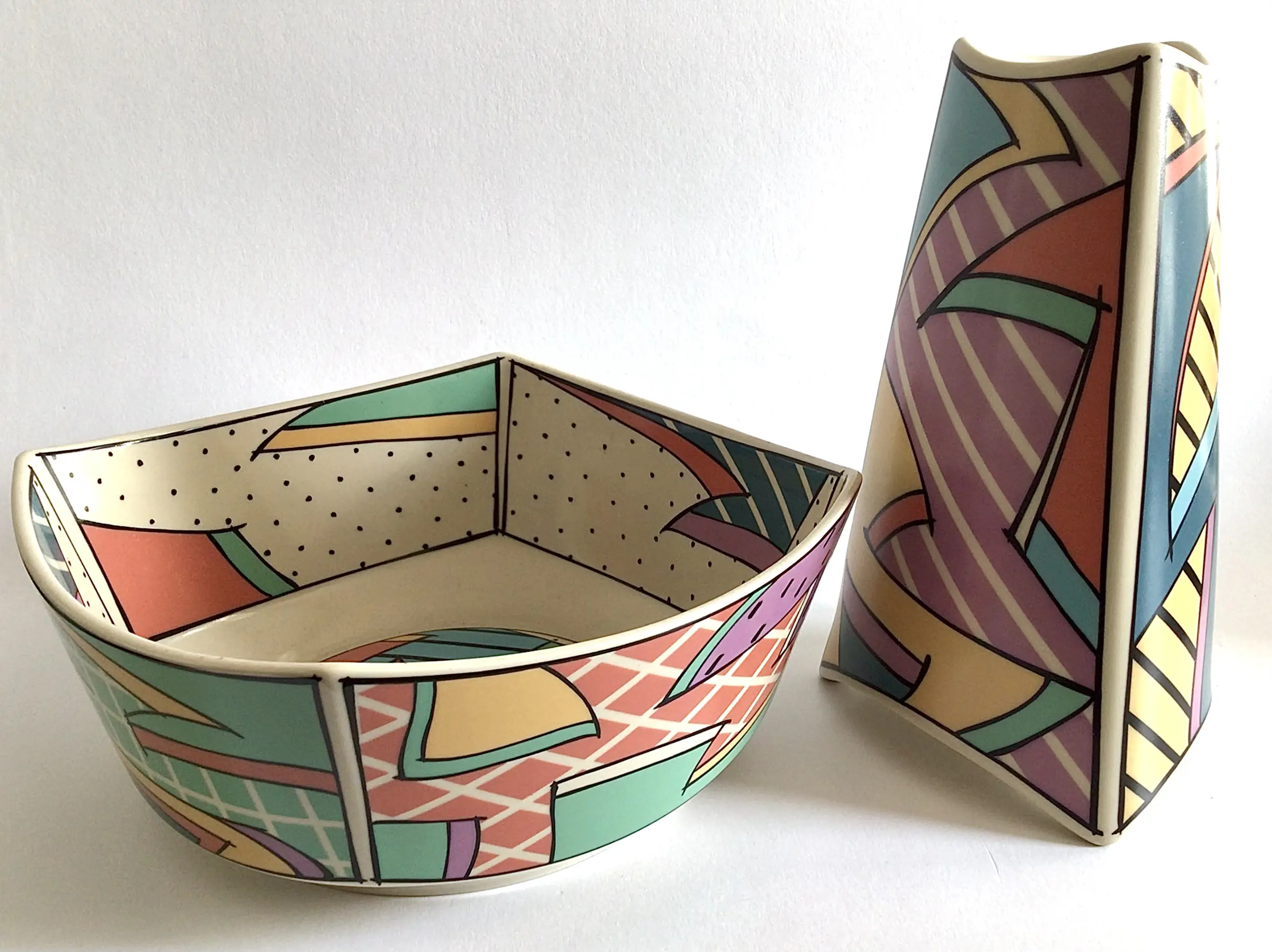 Vaas en schaal, "Flash One" Dorothy Hafner voor Rosenthal Studio Linie. Memphis stijl. Jaren 80.
