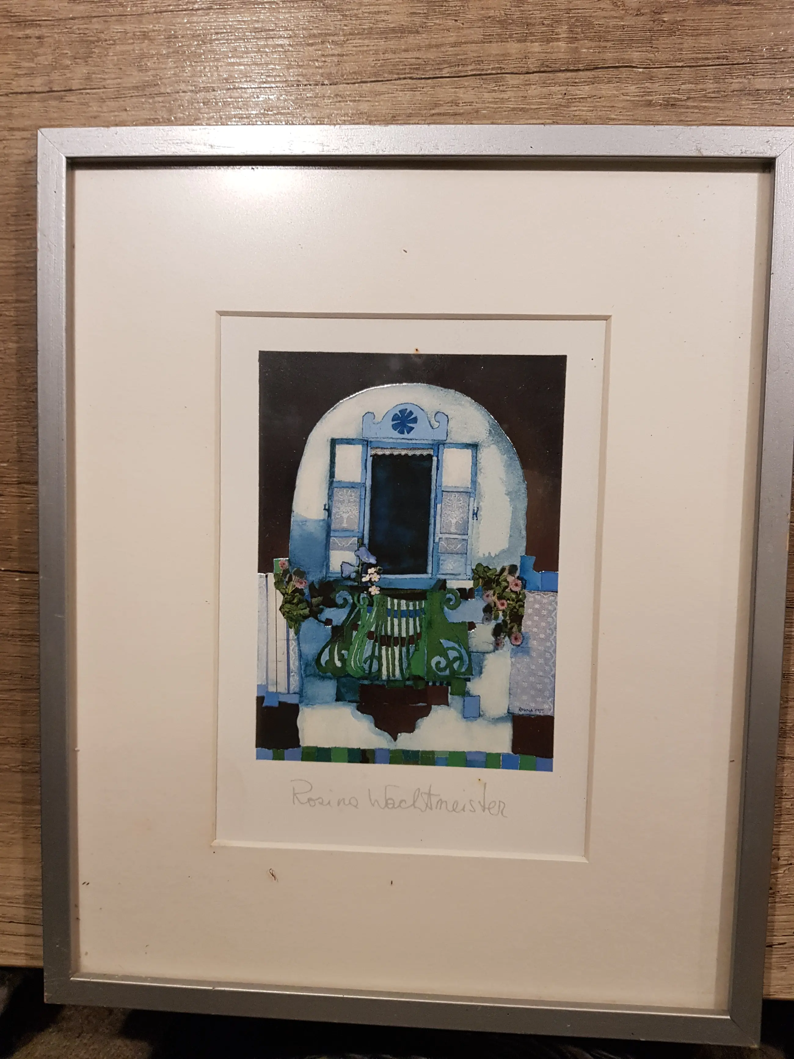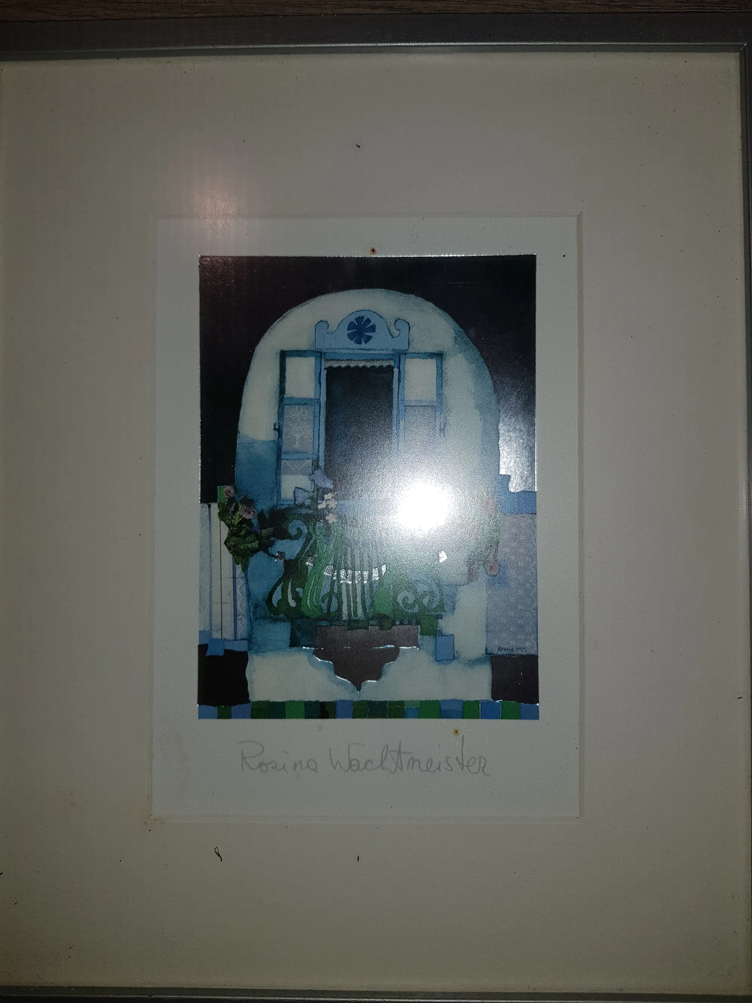 Mooi werkje van Rosina Wachtmeister uit de jaren tachtig. Balkon met blauwe bloemen.