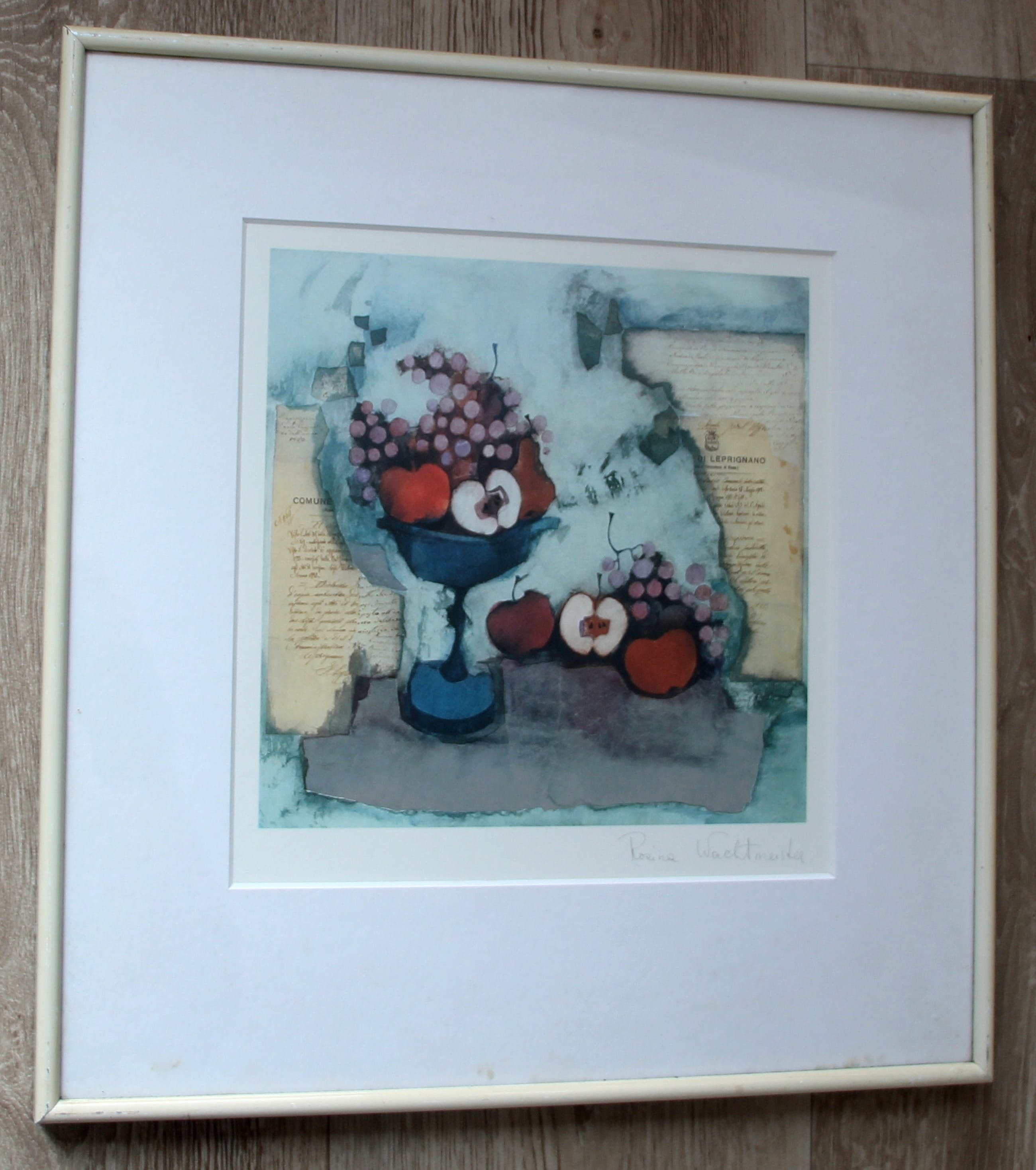 Gemengde techniek van Rosina Wachtmeister. Afmetingen incl. lijst: H40 x b38cm Afmetingen voorstelling: H22 x b22cm. Het werk is rechtsonder gesigneerd door de kunstenares. De authenticiteit van het aangeboden werk wordt volledig gegarandeerd. Een certificaat van echtheid kan, op aanvraag, worden gemaild.