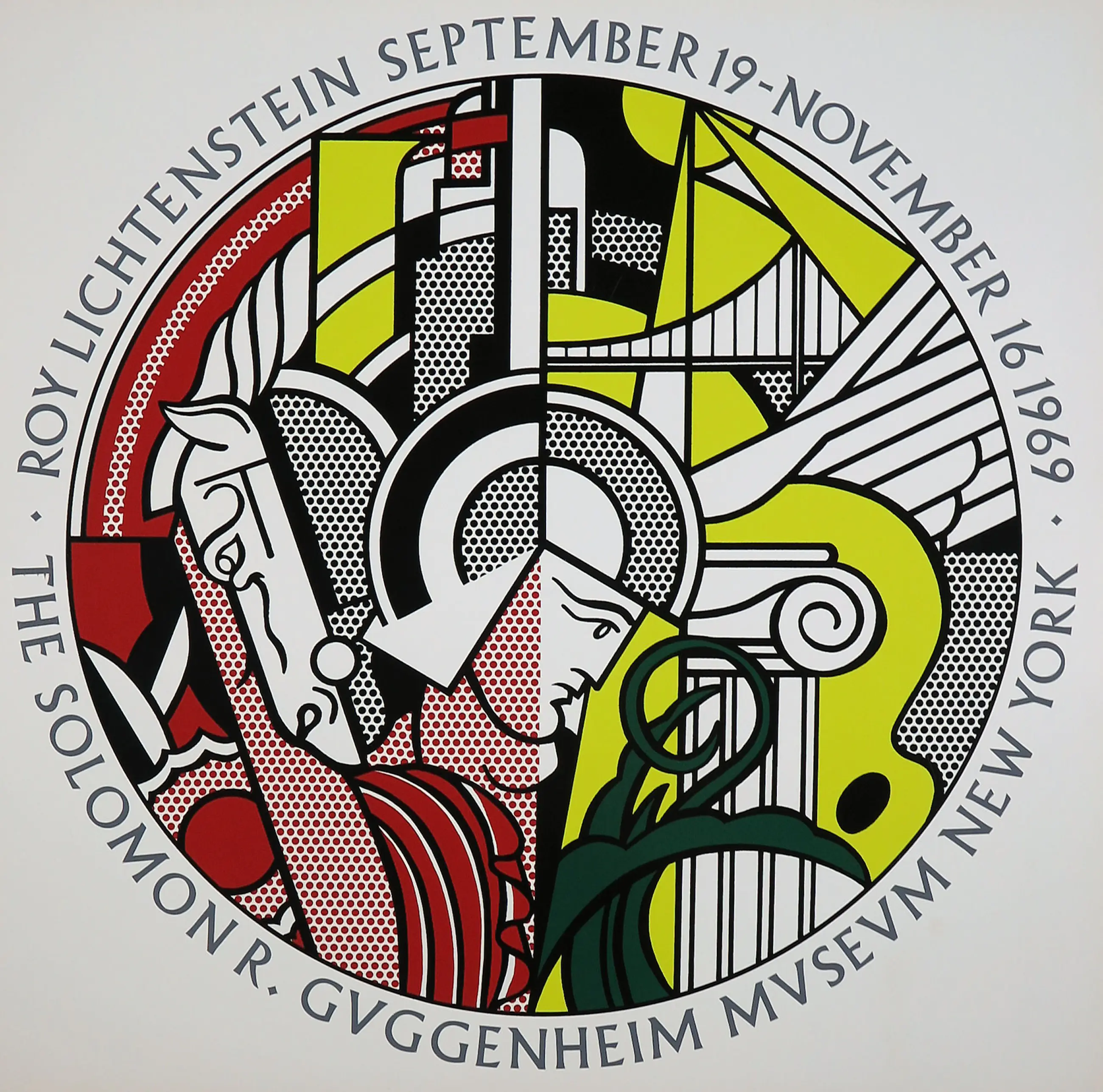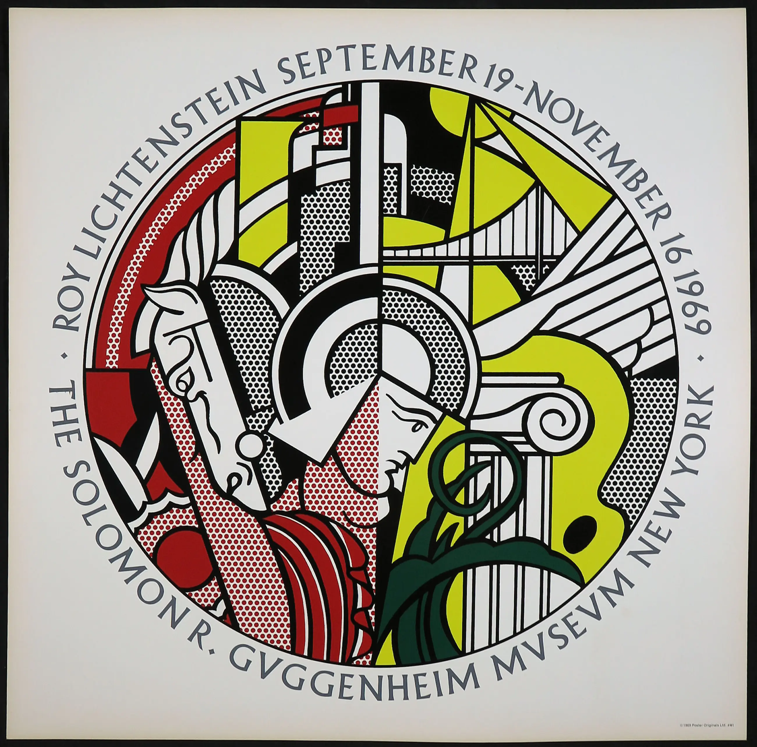 Affiche uit 1969 ontworpen door Roy Lichtenstein, ter gelegenheid van een tentoonstelling van zijn werk in het Solomon R. Guggenheim Museum in New York.