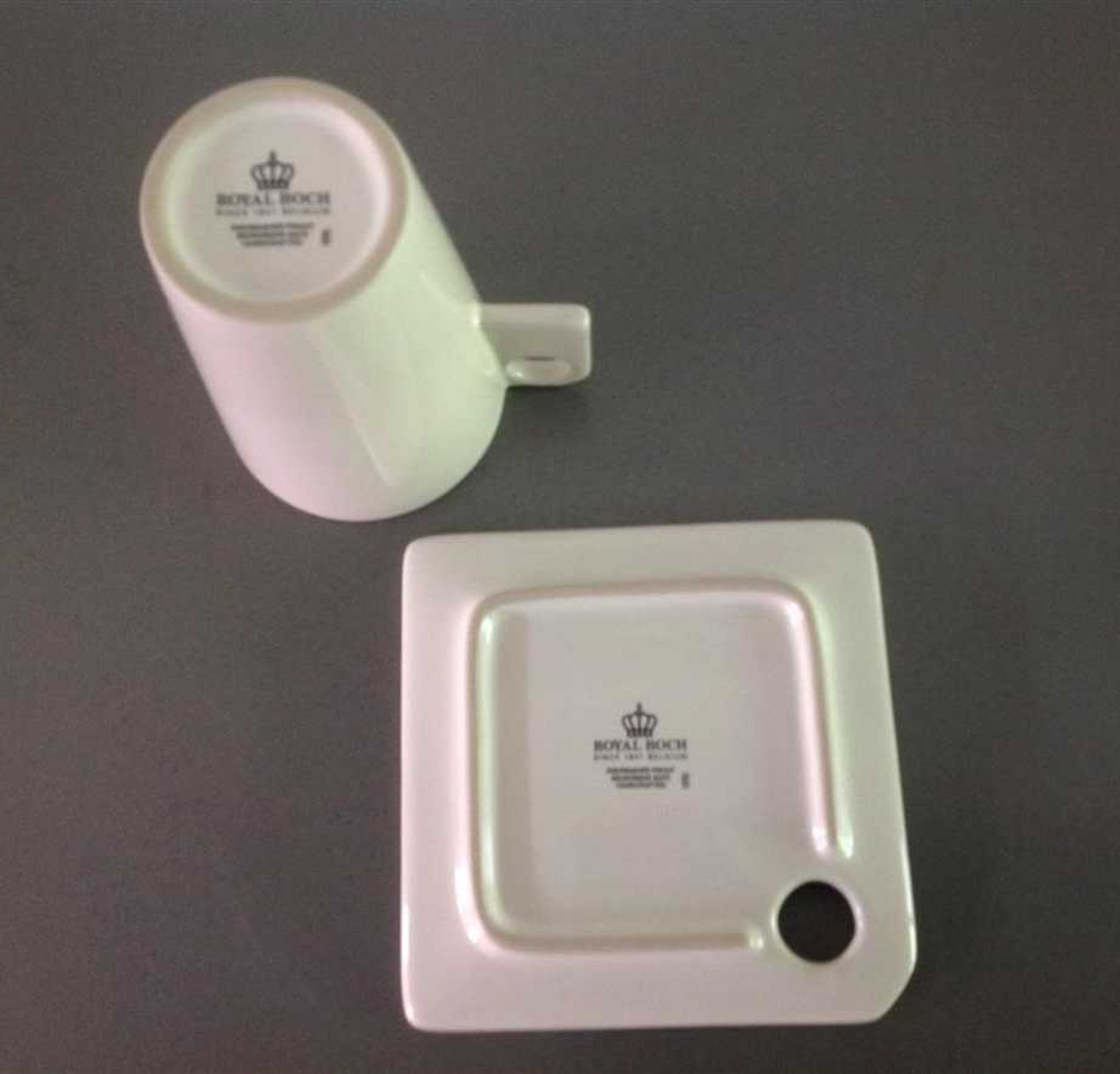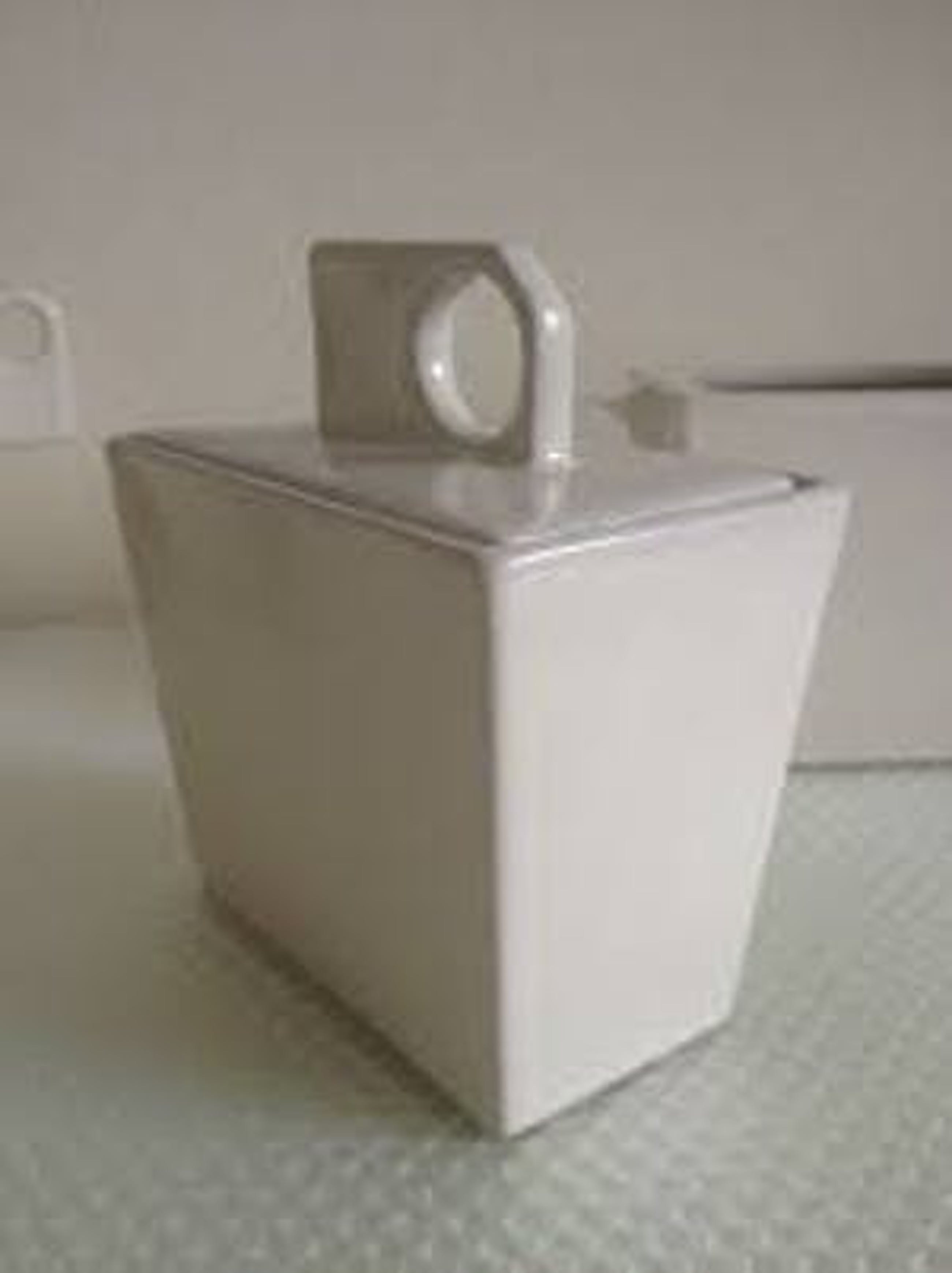 Set Zeosen 4 kop en schotels met suikerpot en roomkannetje. De taps toelopende, ivoorkleurige kop-en-schotels zijn door Marc Pairon ontworpen met een knipoogje naar de art-Deco periode. De kopjes zijn goed stapelbaar.