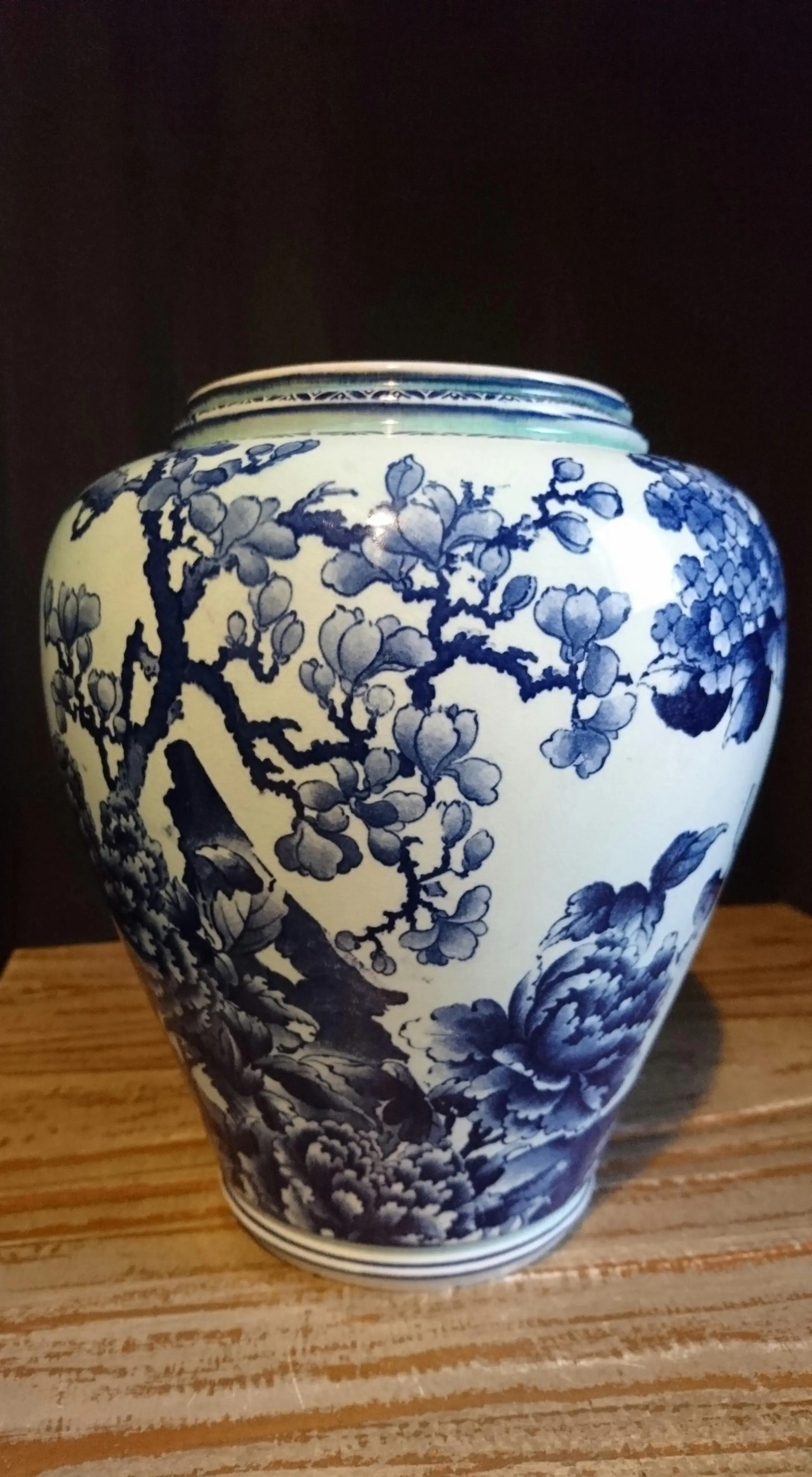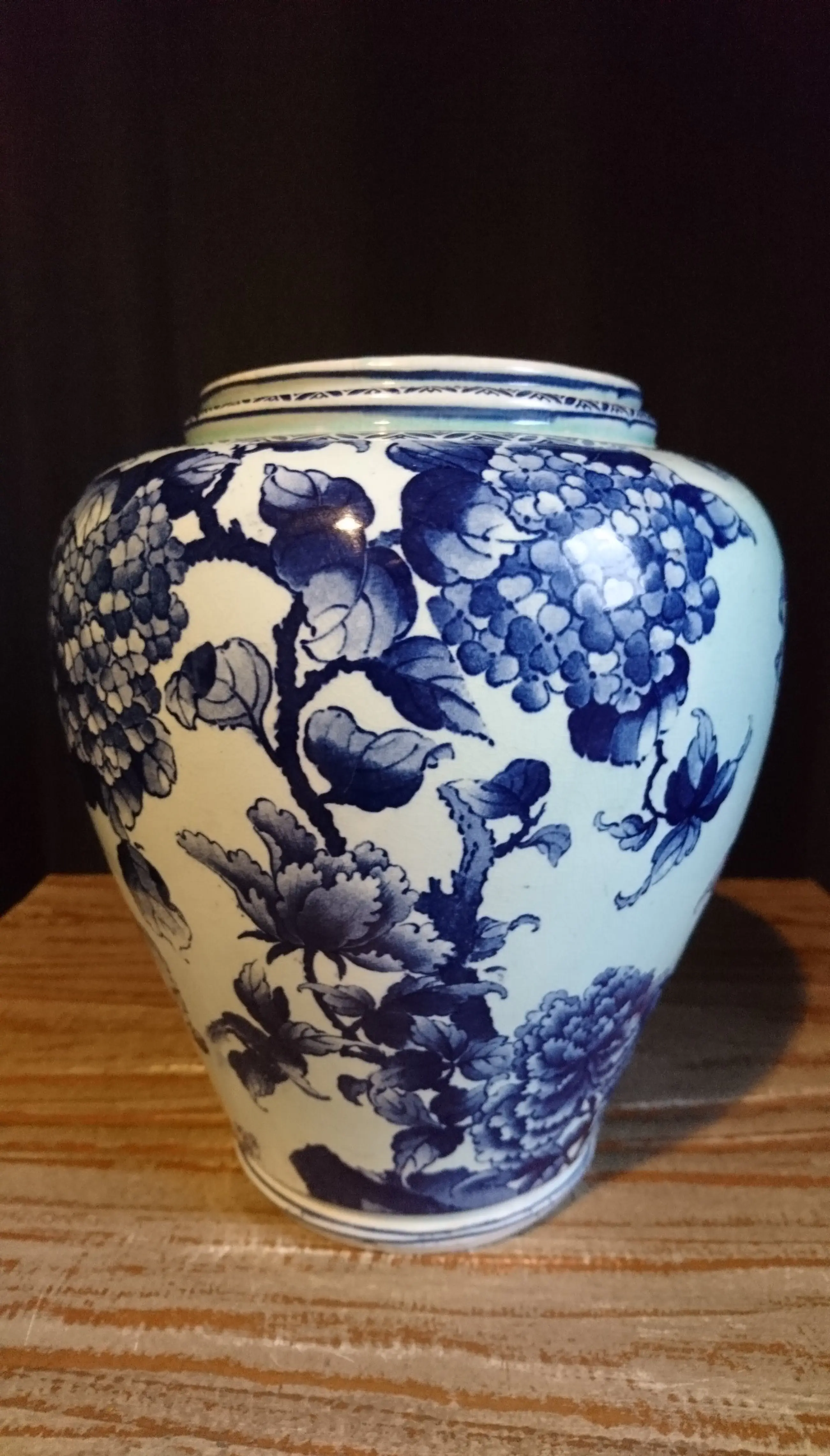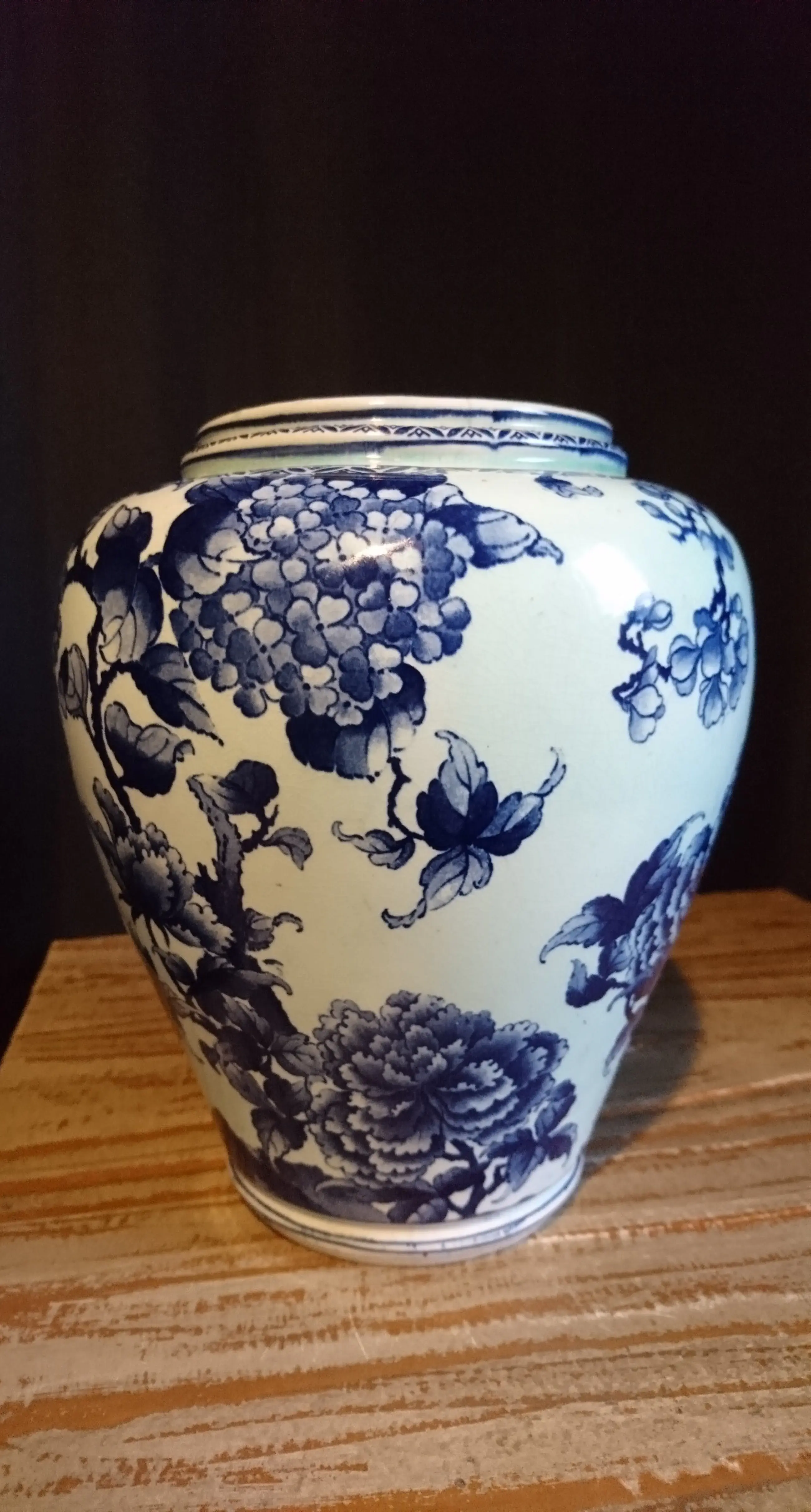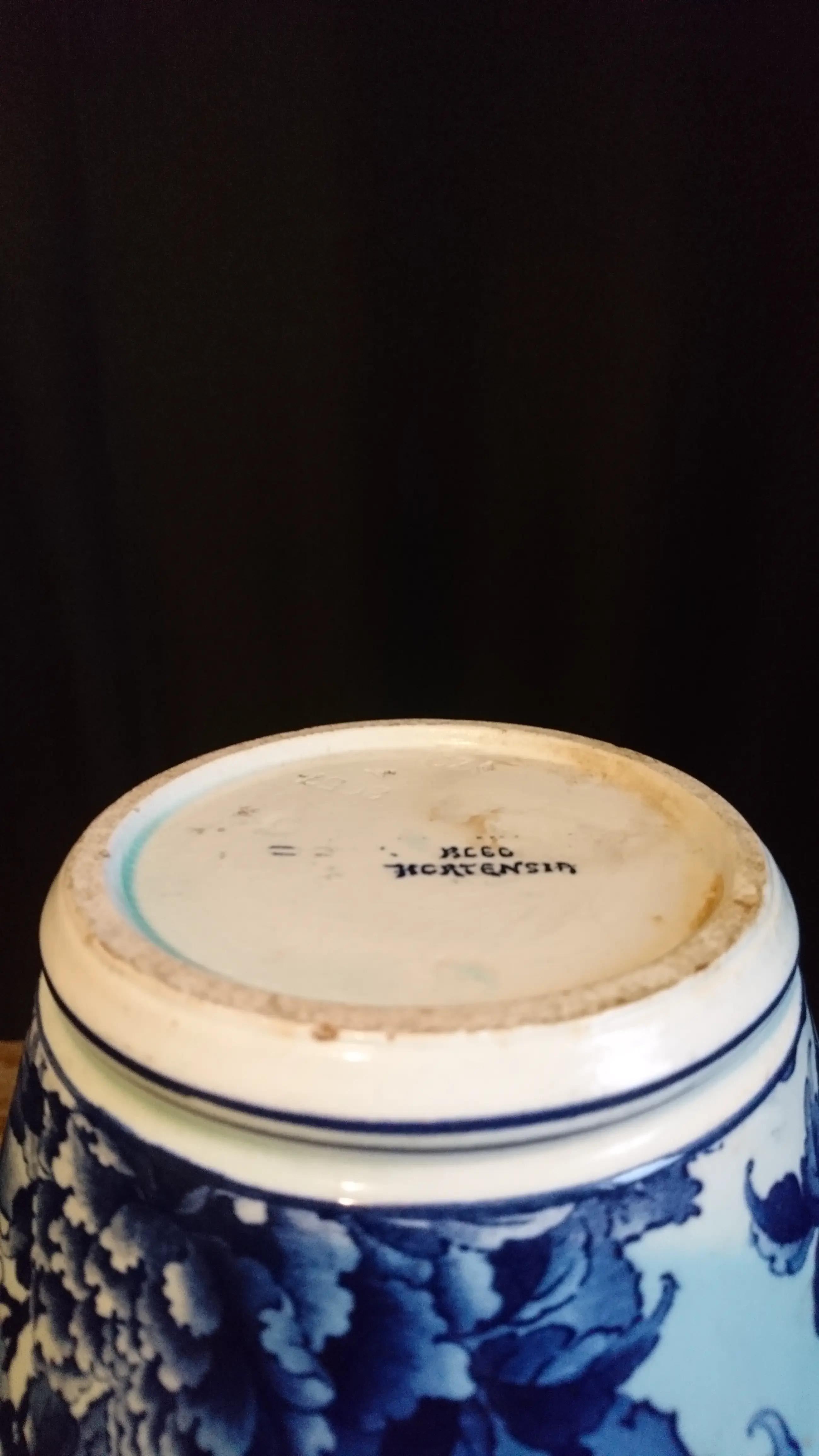 Een zeldzame (eind) 19e eeuwse antieke vaas met decor "Bleu Hortensia" van Franz Anton Melhem/Royal Bonn in donker en lichtblauw contrast.
