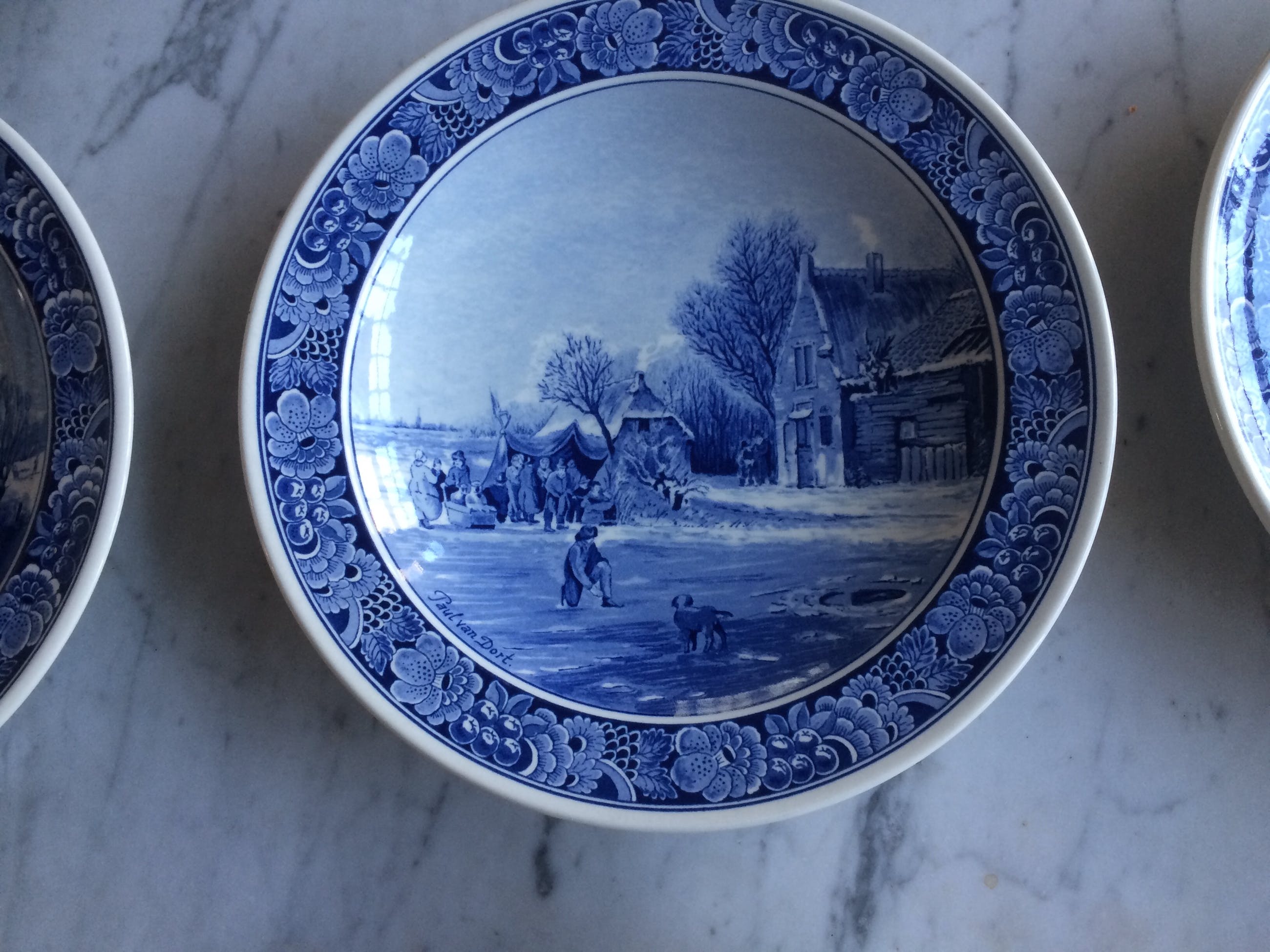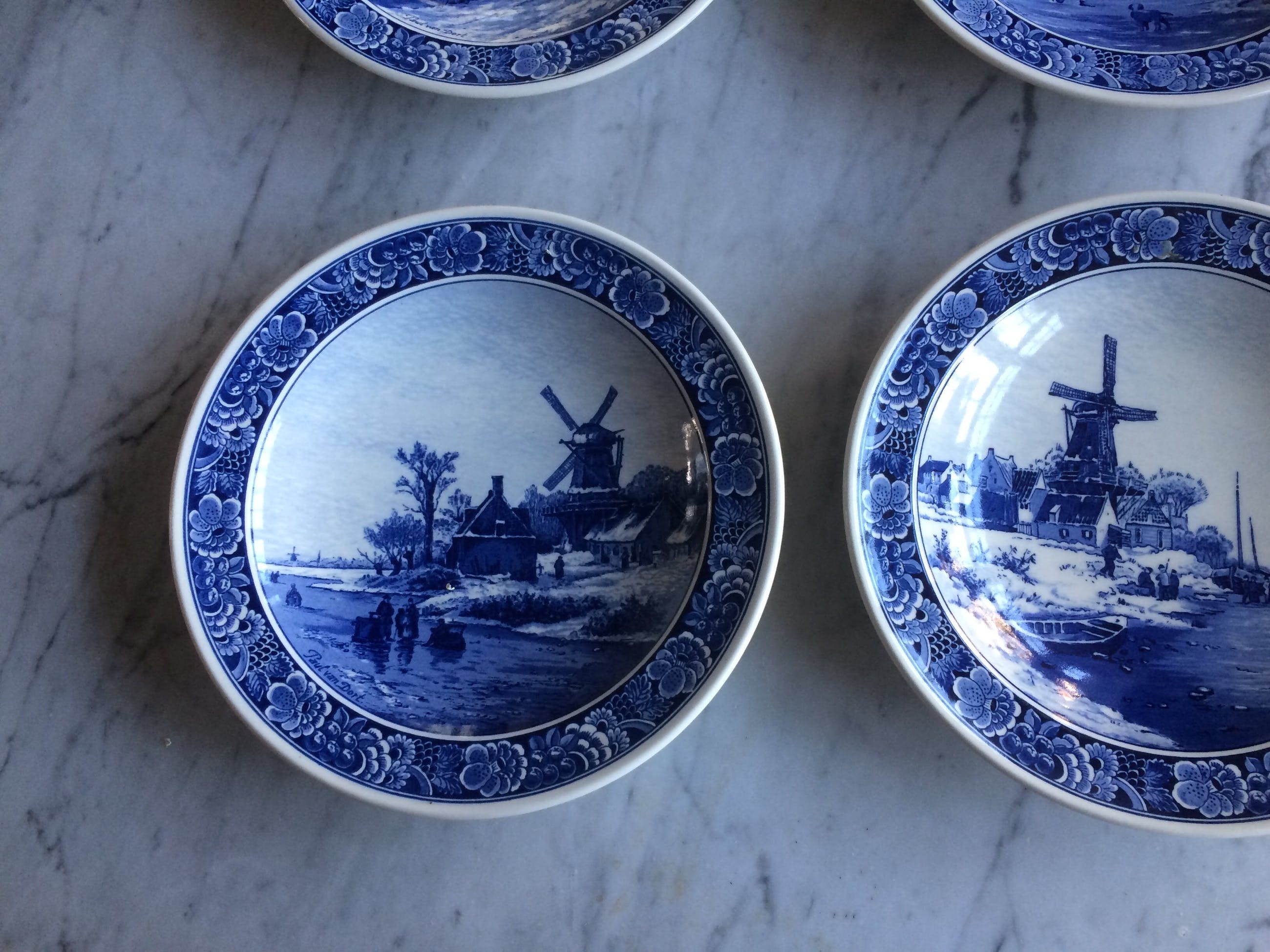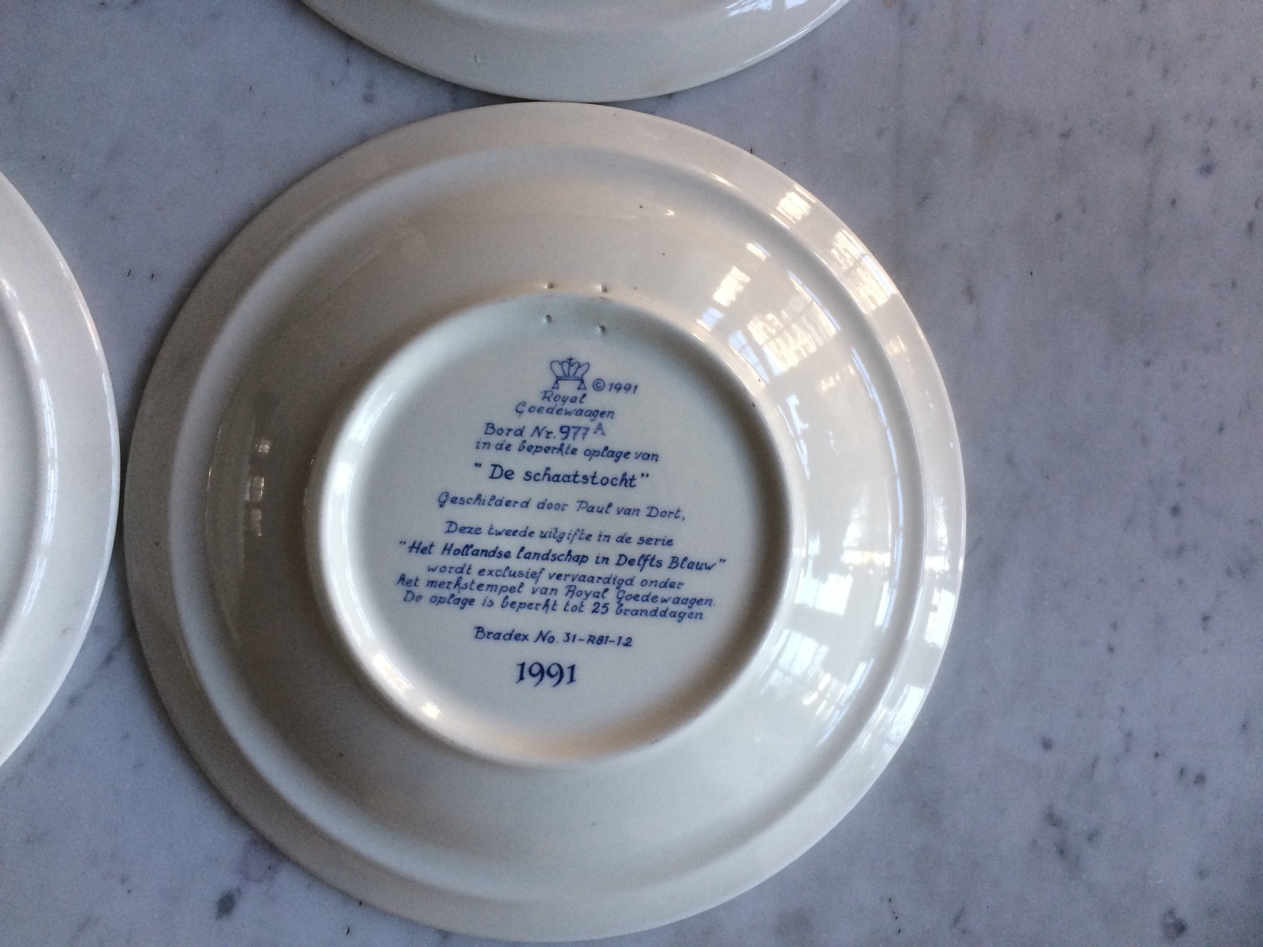 6 ongebruikte delftsblauwe wand-borden uit de serie “ Het Hollandse Landschap in Delfts Blauw.” Het zijn 6 verschillende rustieke plekken in Nederland. Alle voorstellingen geschilderd doorde bekende kunstenaar Paul van Oort. Hij heeft de borden gesigneerd. De borden zijn getiteld, genummerden in beperkte oplage gemaakt. Verzending per PostNL ( k.k. )Ophalen in Rotterdam op afspraak. LAATSTE KANS !!!
