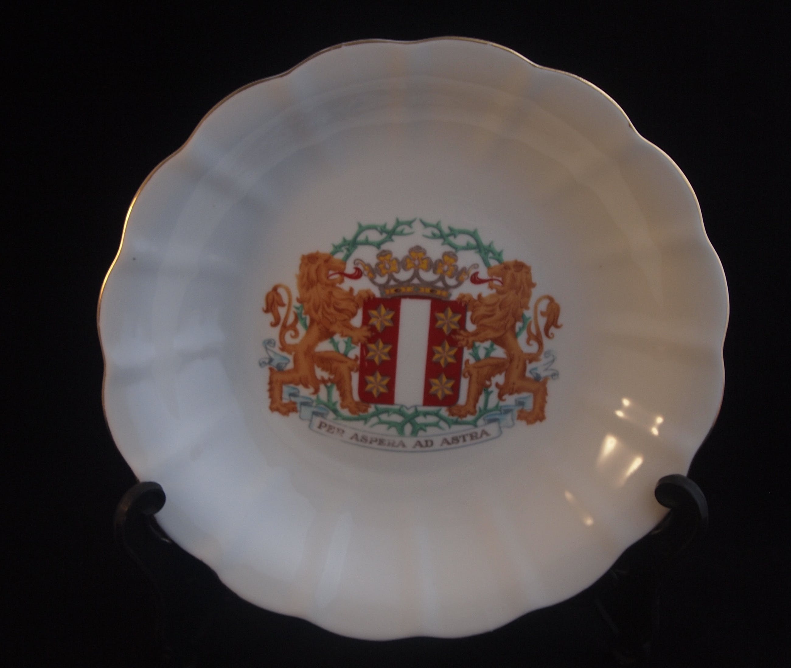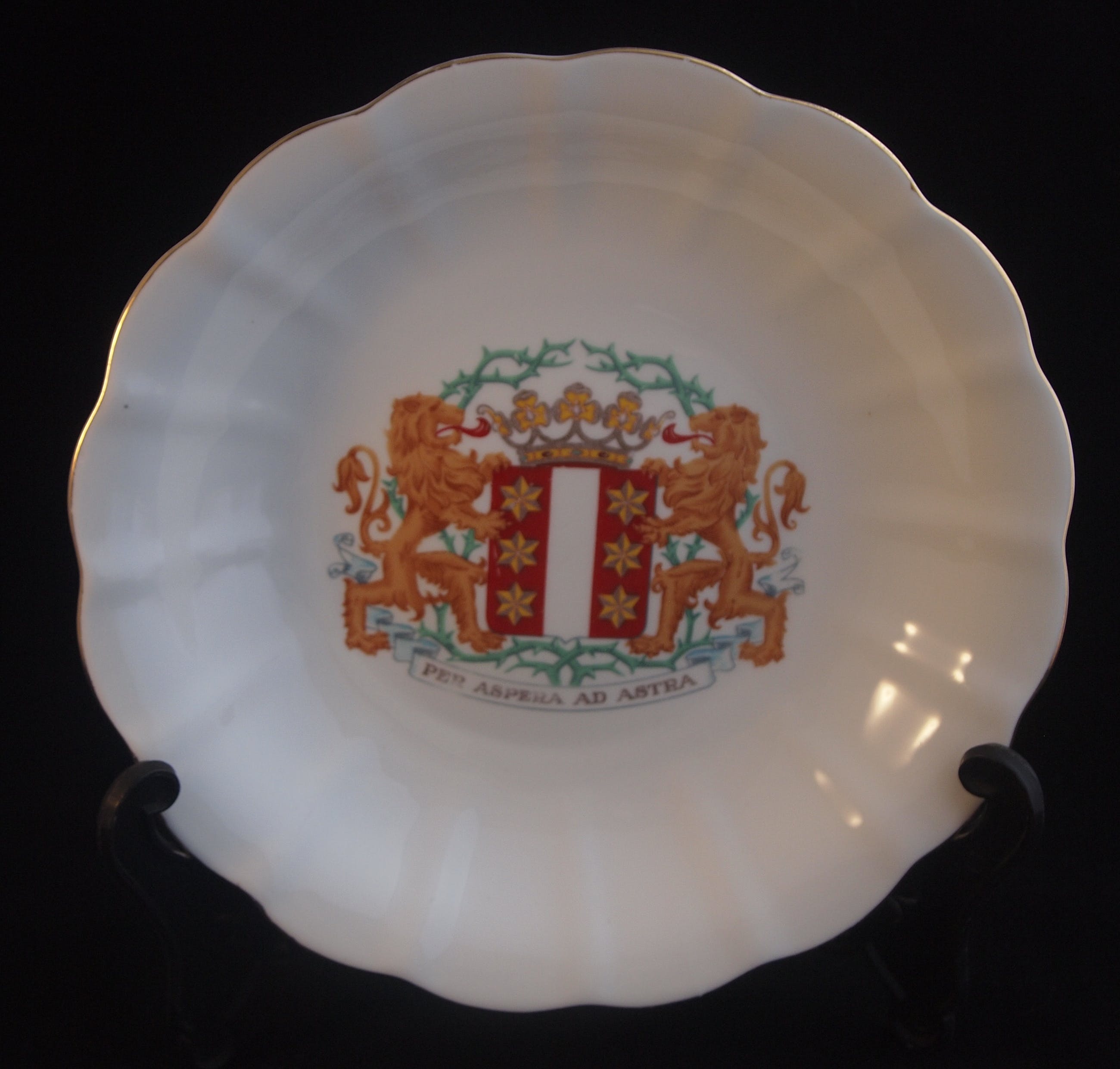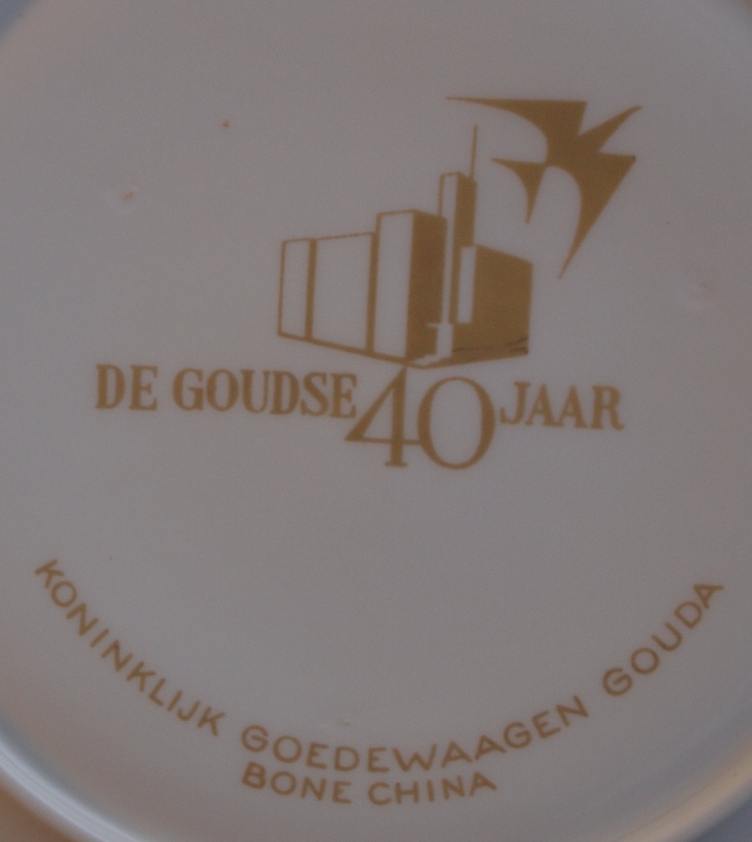 Bone China Sierbord voorzien van Stadswapen van de stad Gouda gemaakt ter ere van 40 jaar Goudse Verzekeringen. In prima onbeschadigde conditie.