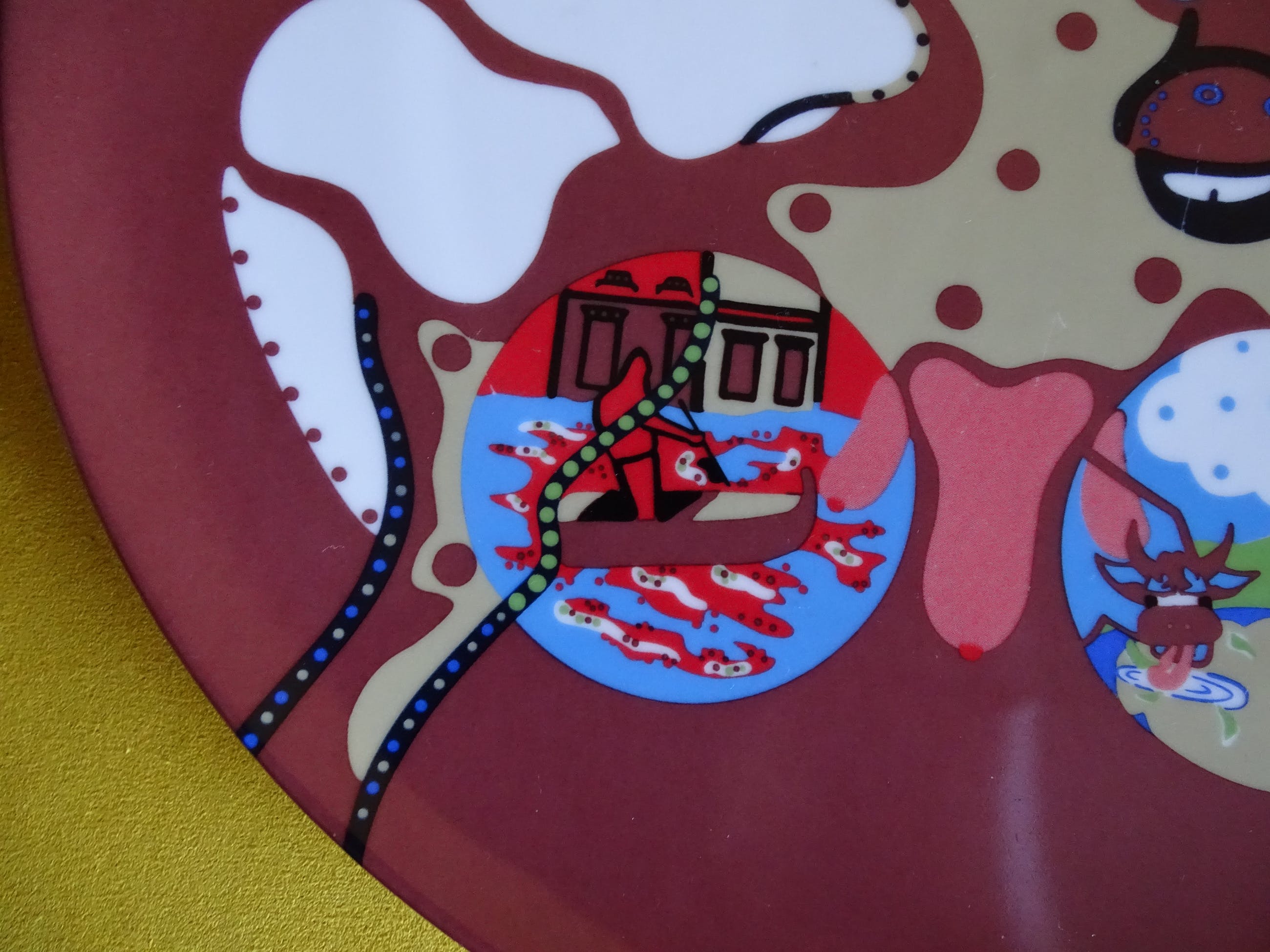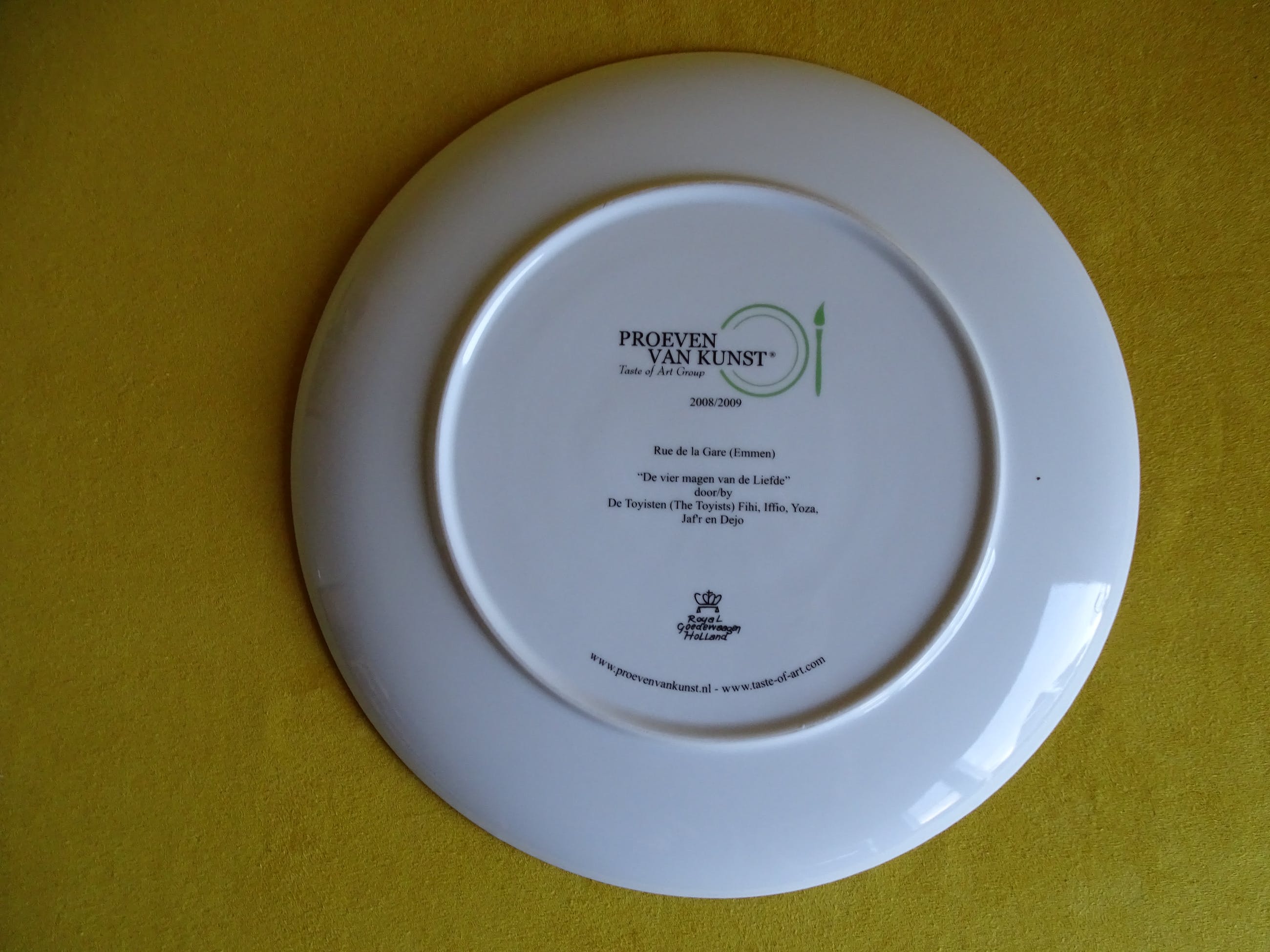 Eigenschap en afmeting:- Kunstenaars: Fihi, Iffio, Yoza, Jaf'r, Dejo- Herkomst: Nederland- Datering: 2008-2009- Materiaal: Porselein- Afmeting: Ø31,5cm en 944 gram- Conditie: Goed