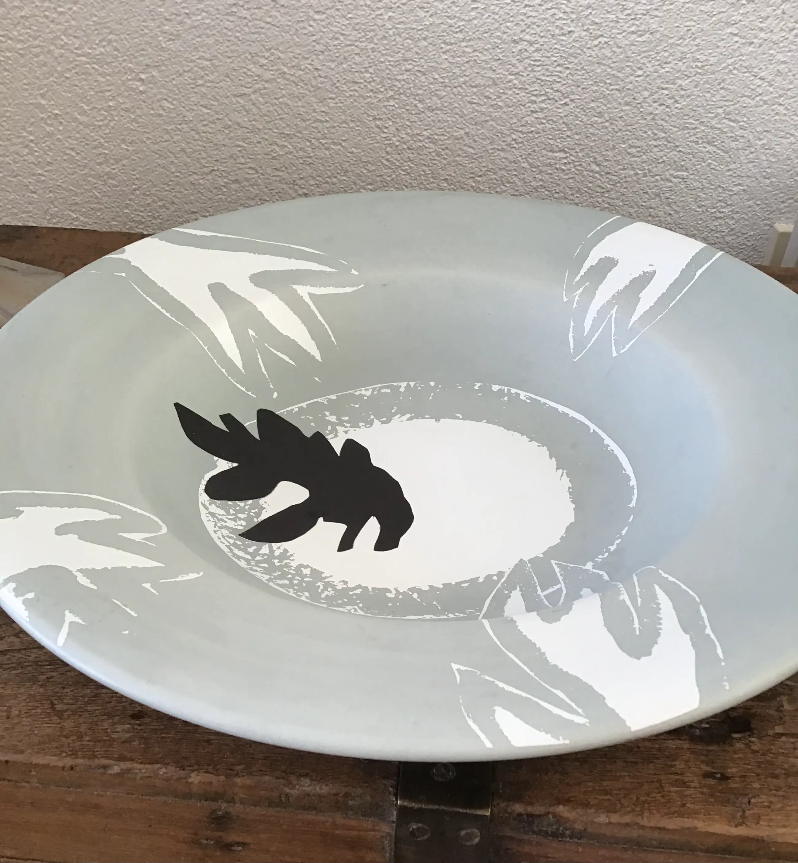 Prachtige keramiek schaal Royal Goedewaagen Design Raphaël Hermans Doorsnee 39,5 cm Hoogte 7 cm Conditie goed Kleur is mooier reseda groen dan de foto Wordt aangetekend verzonden