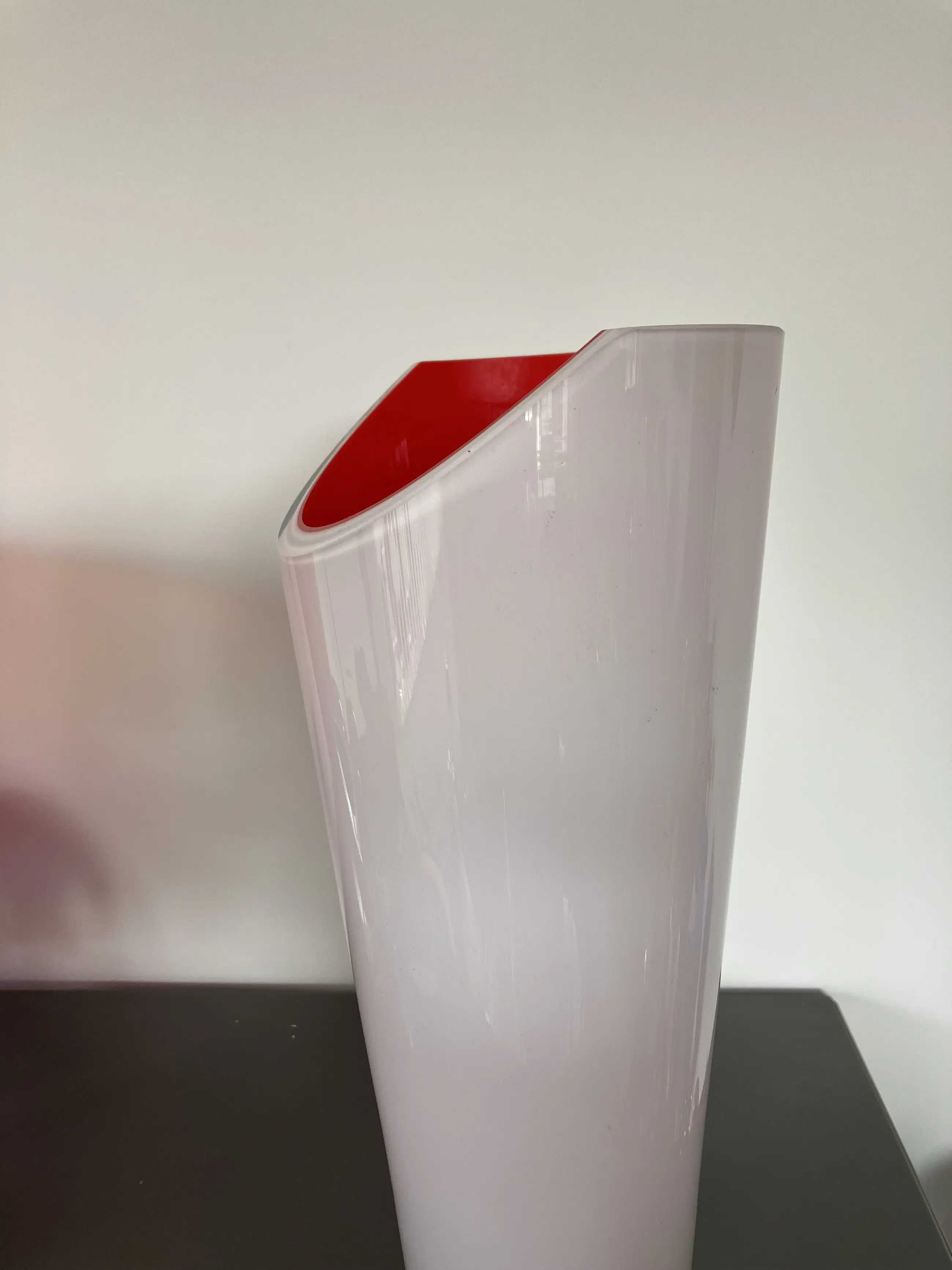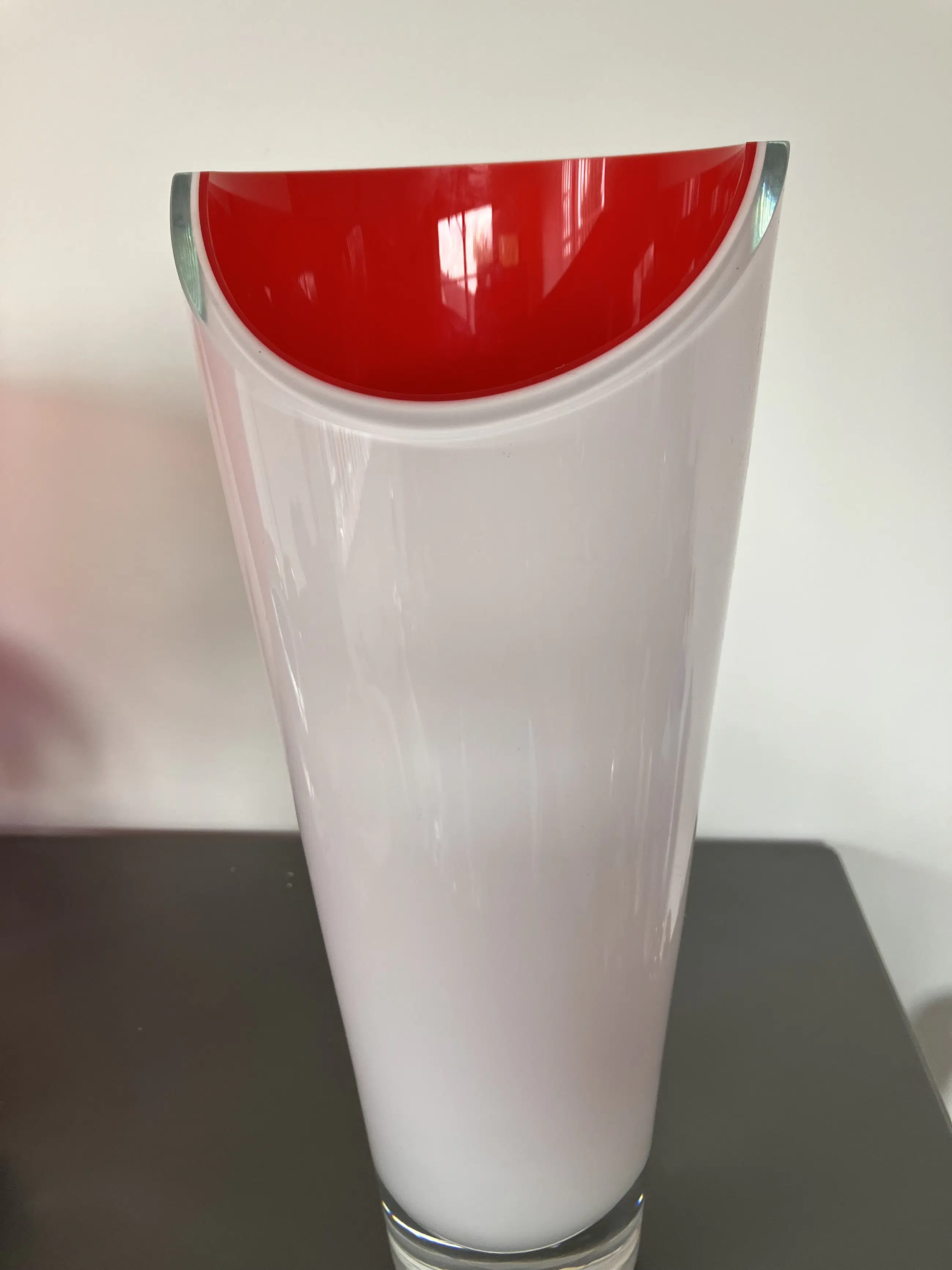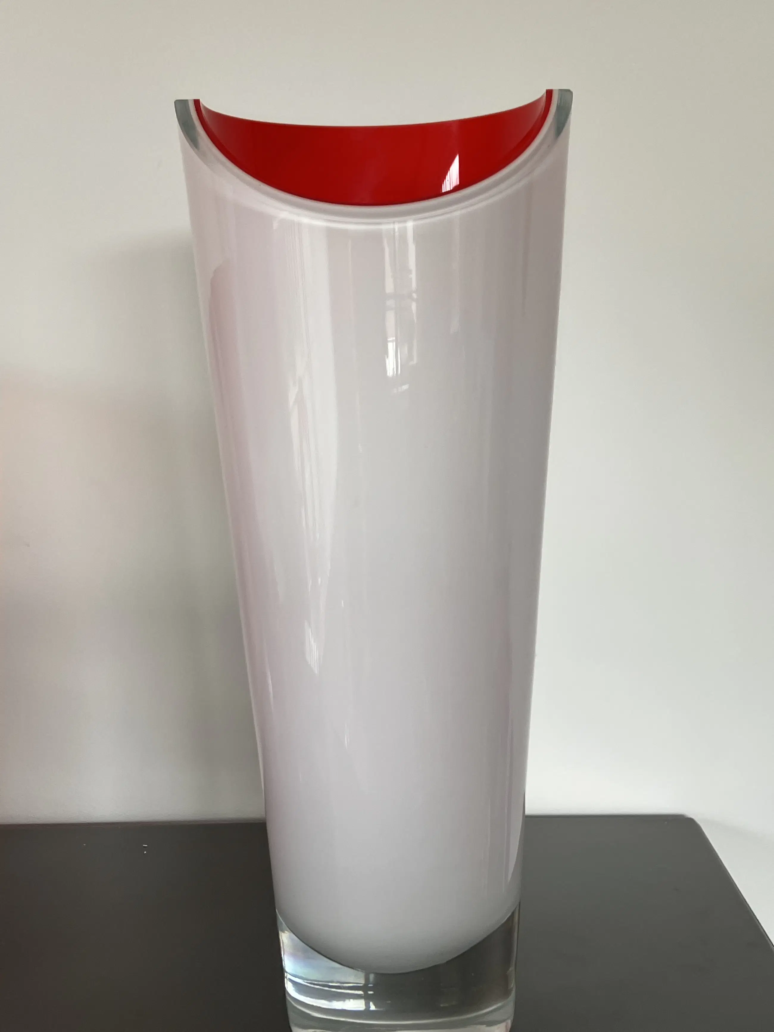 Gelimiteerde oplage gemaakt bij Royal Leerdam Ontwerp Carina Riezebos Afgevlakte bovenkant, wit van de buitenkant en rood aan de binnenkant Gaaf