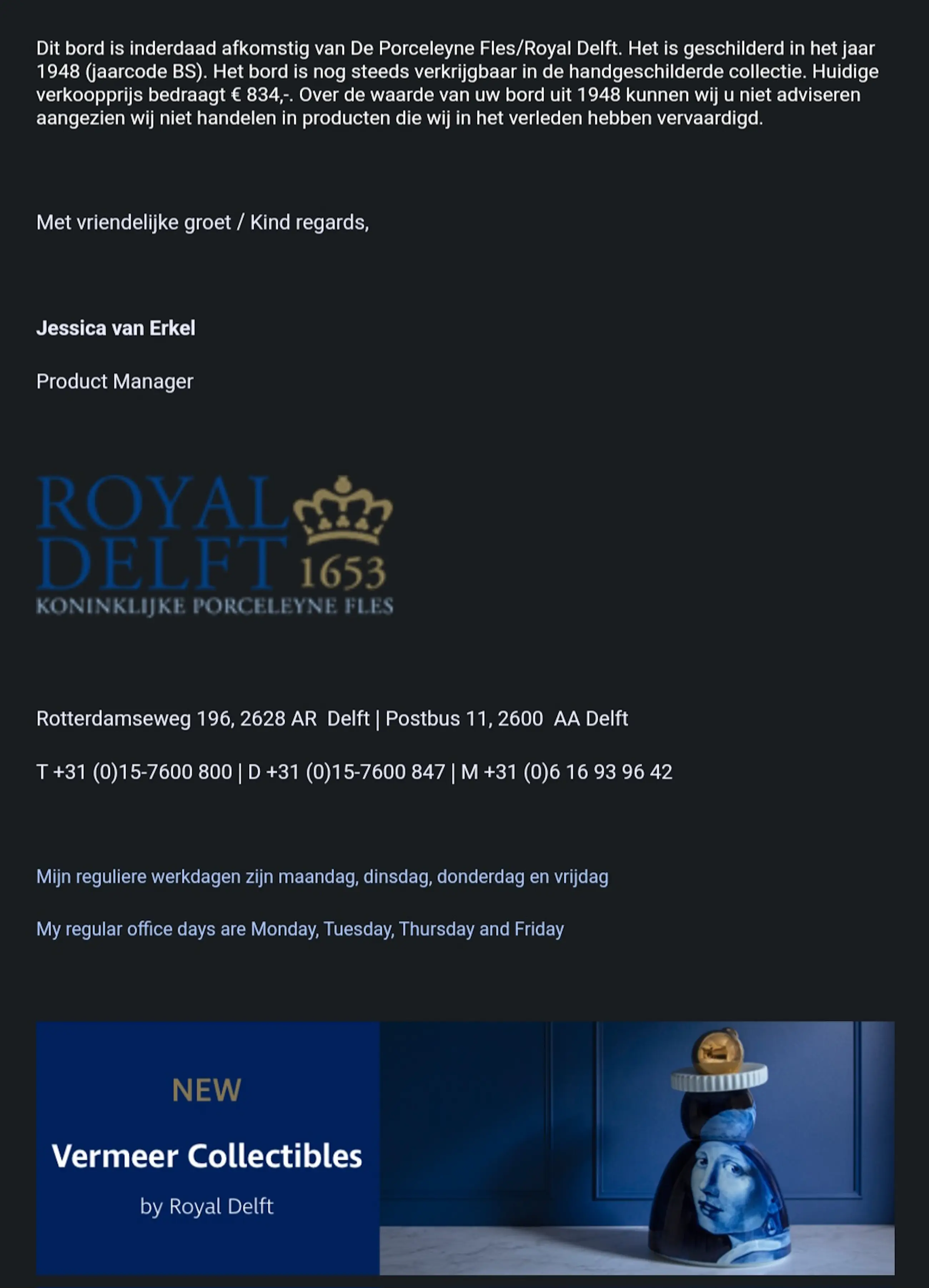 Ik heb het werk geërfd van een kennis vandaar ik weet dat het echt is en heb het laten keuren door royal delft museum