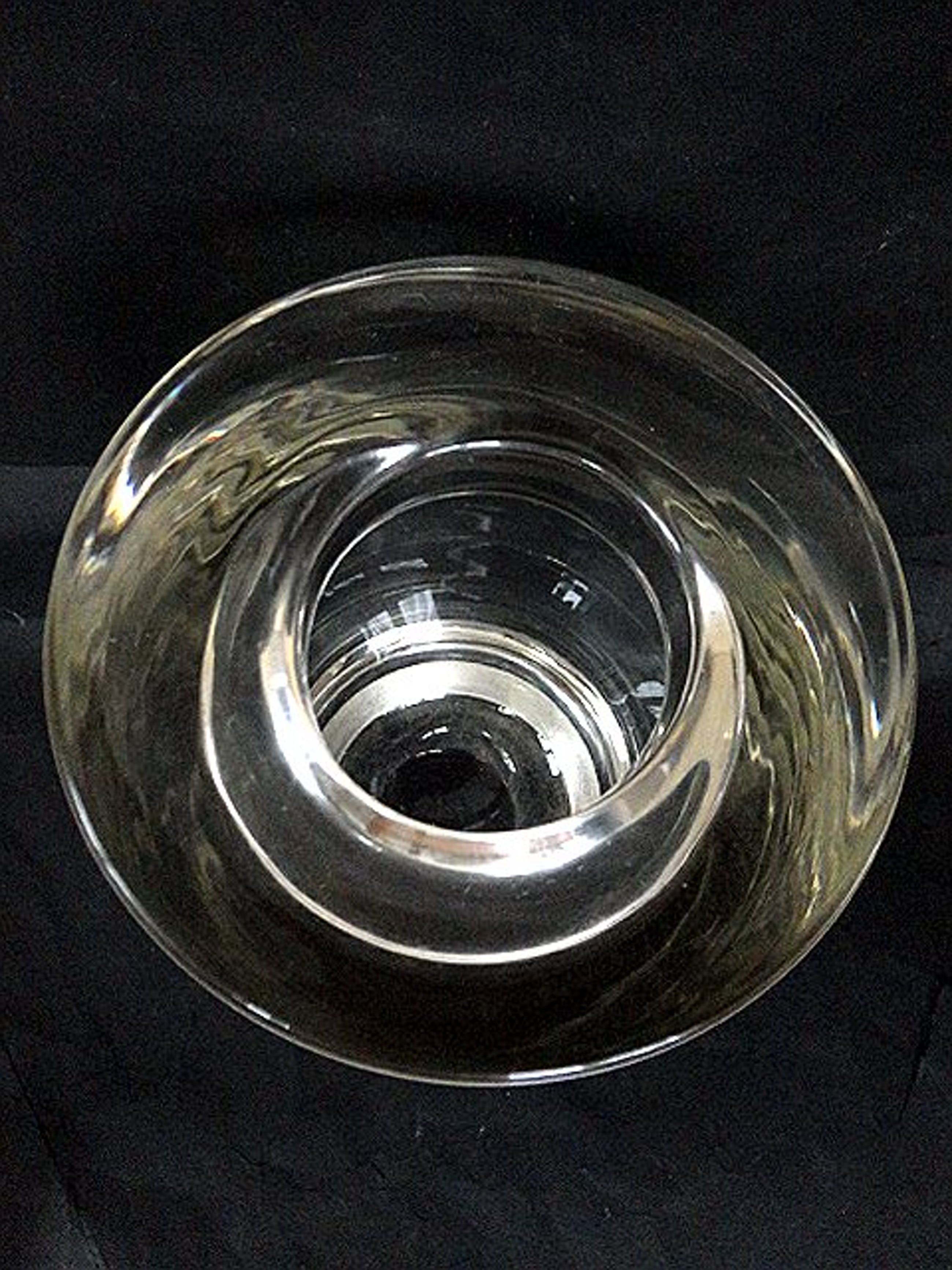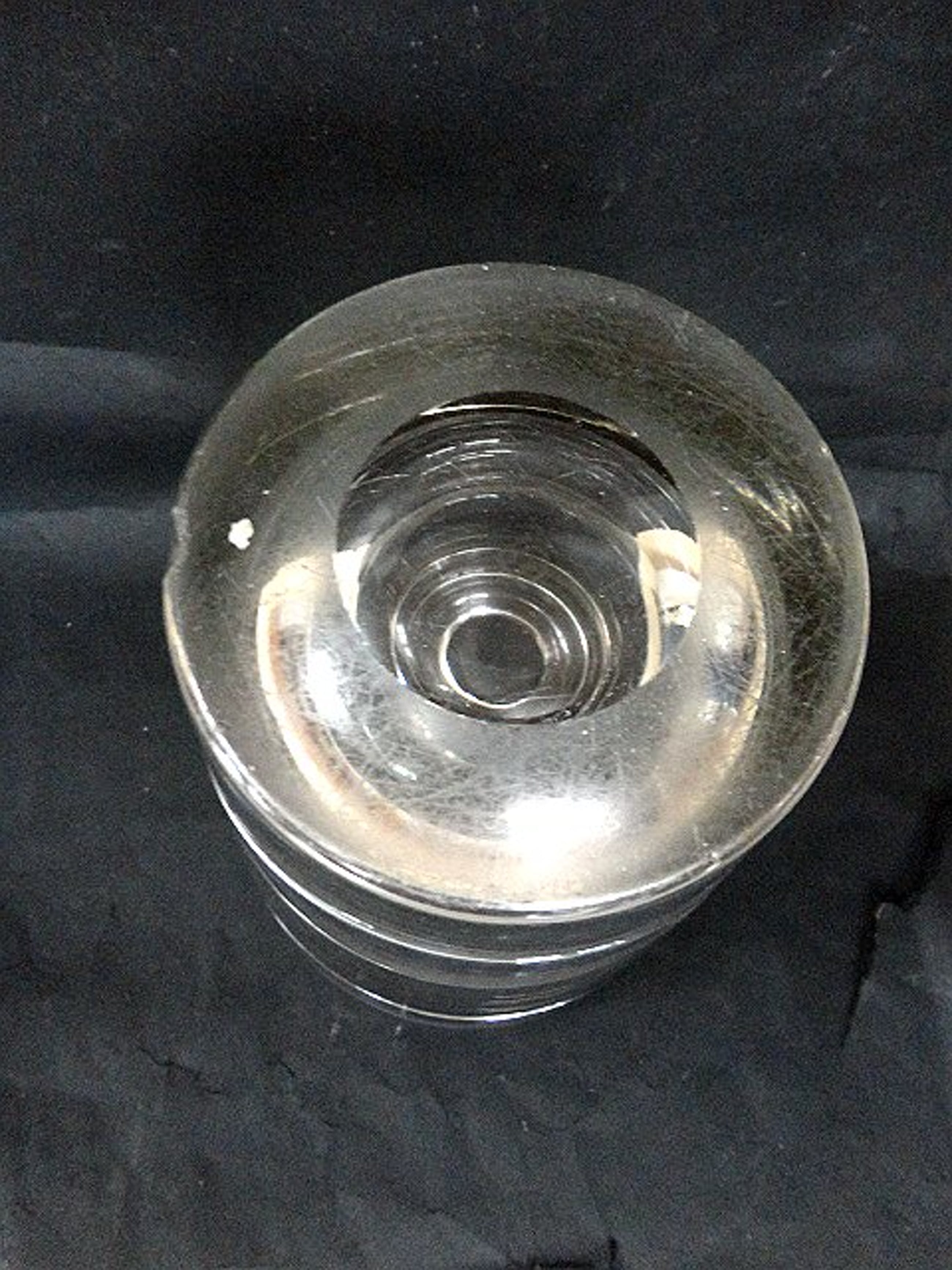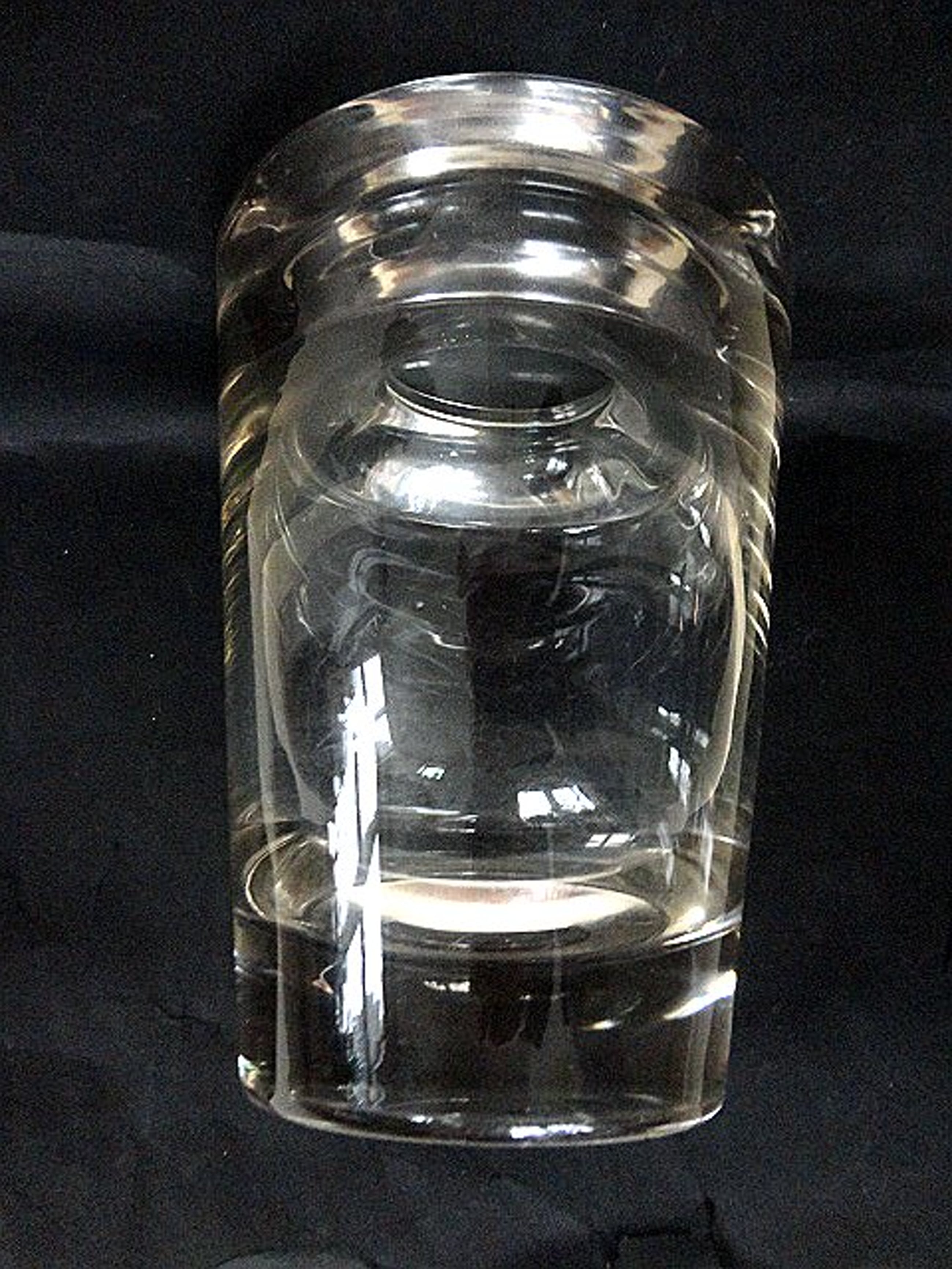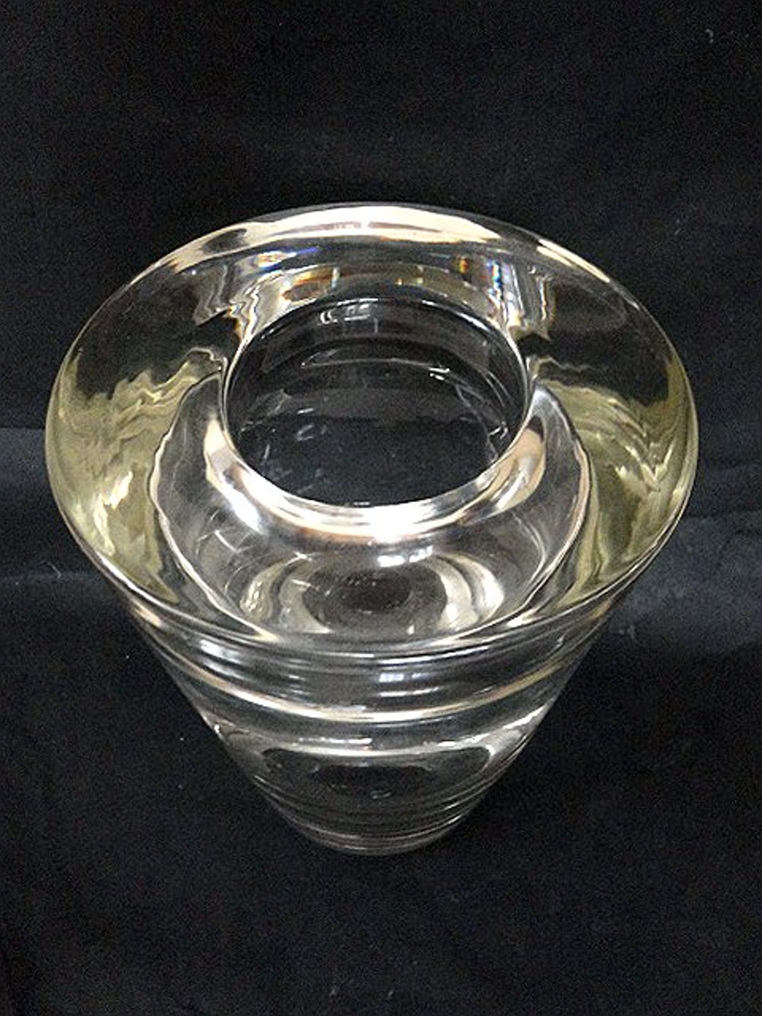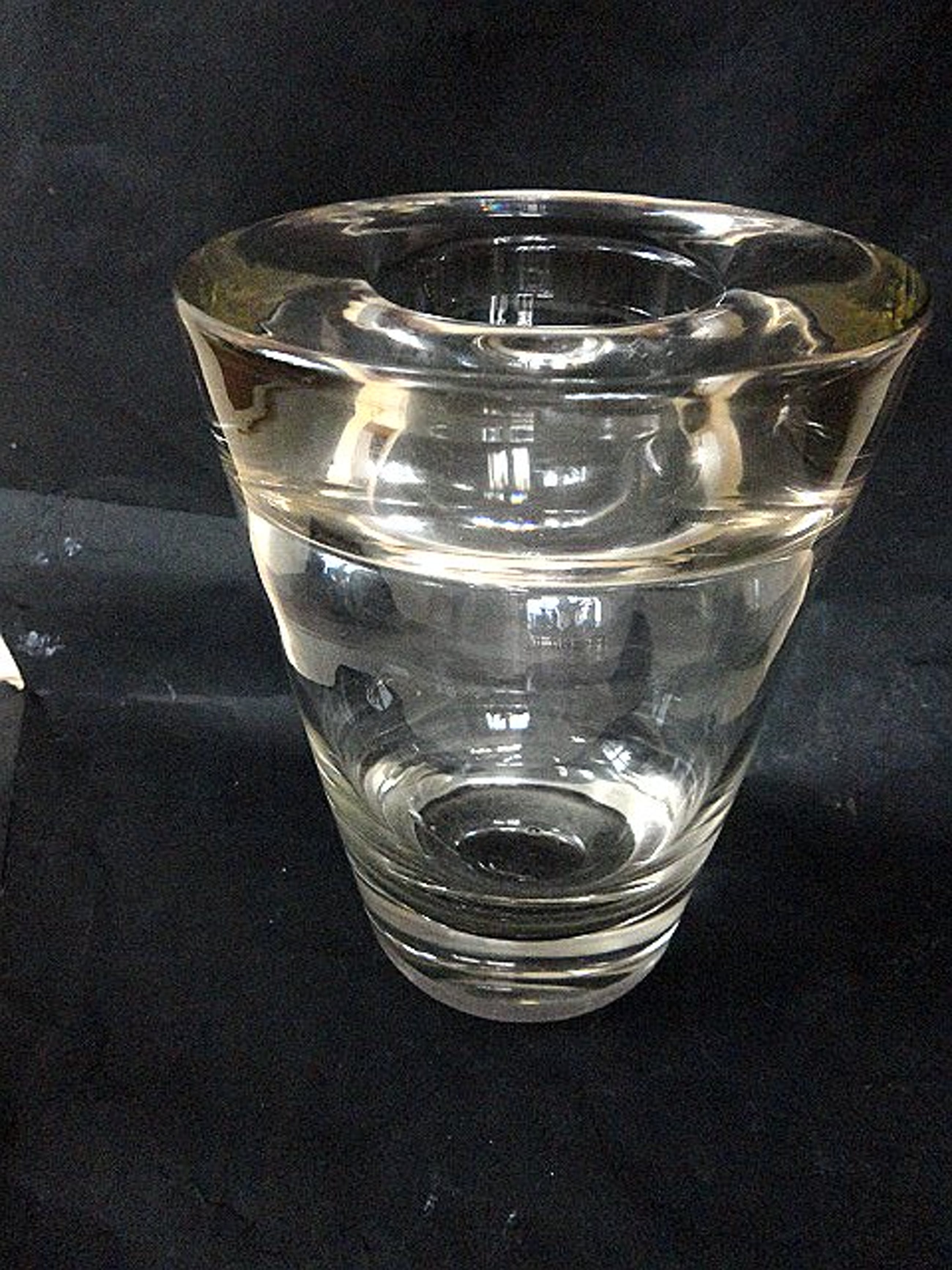 Giga zware kristallen vaas, helder met beschadigingen aan de standring; gebruikskrasjes onderop gemerk CL