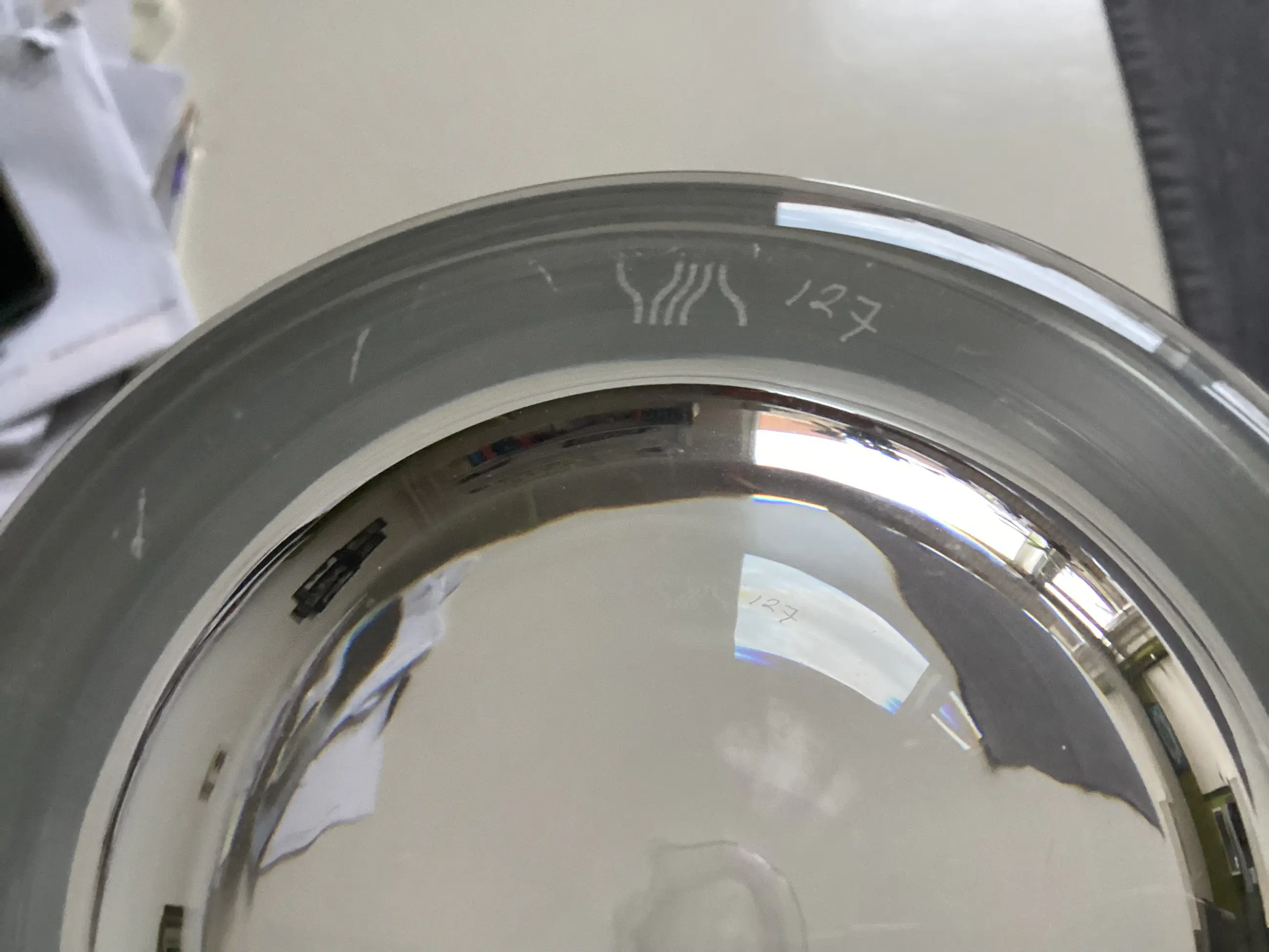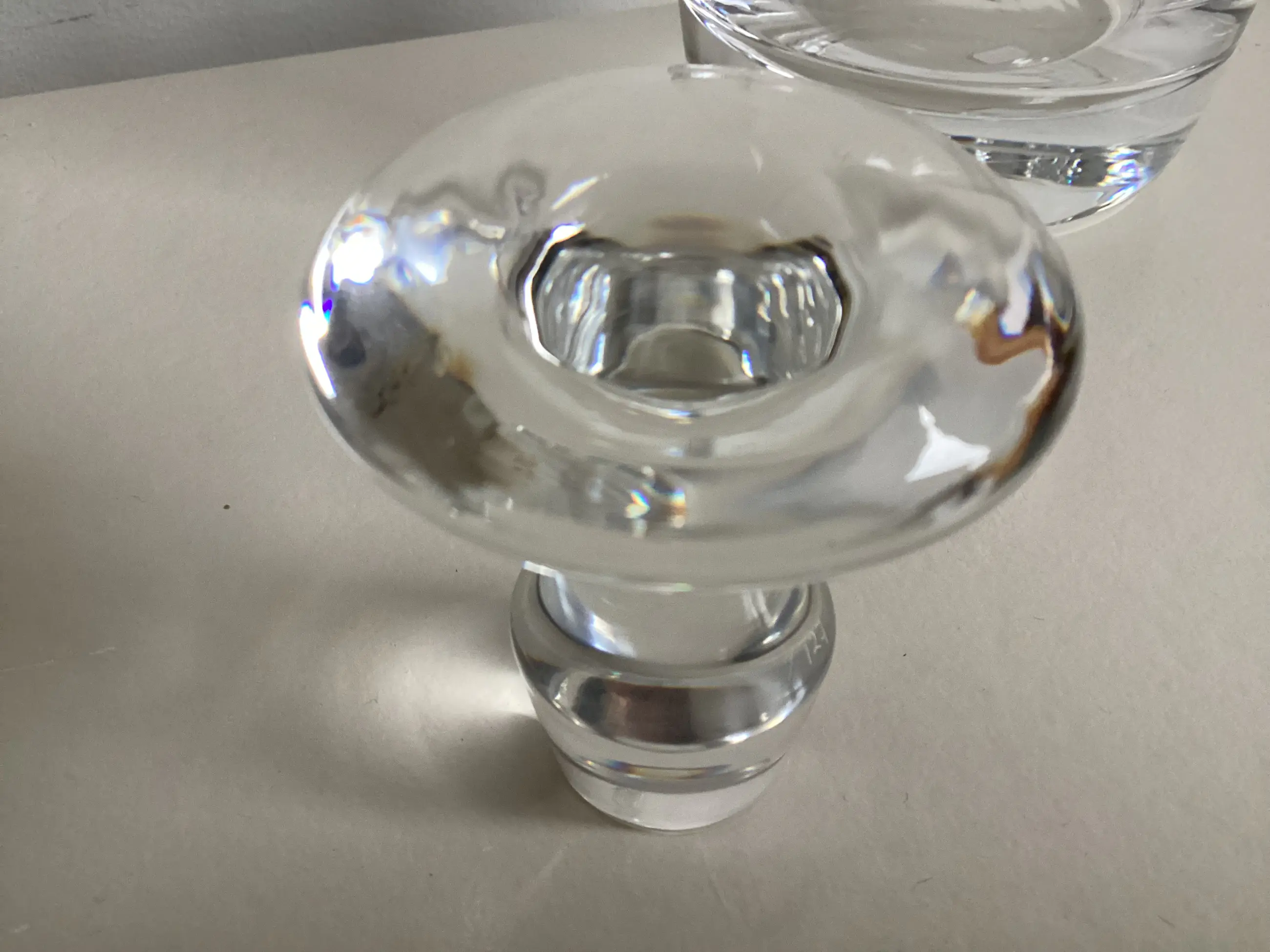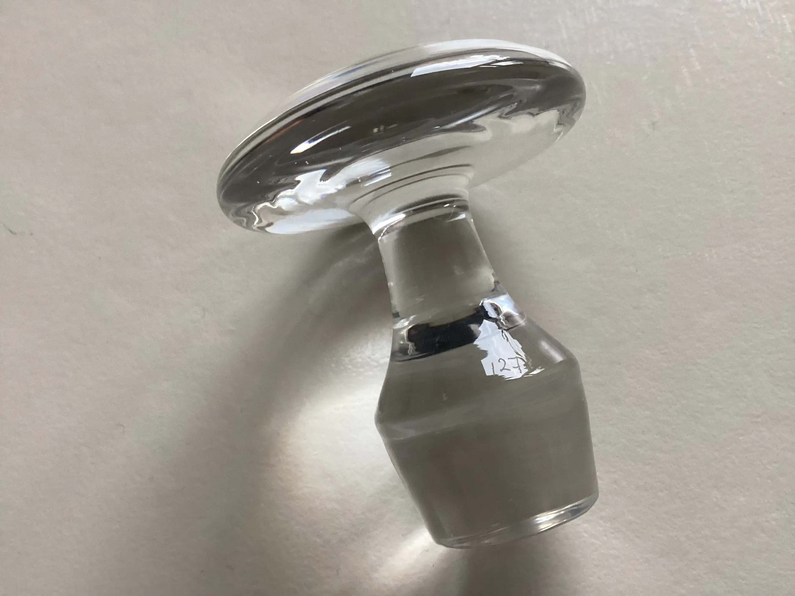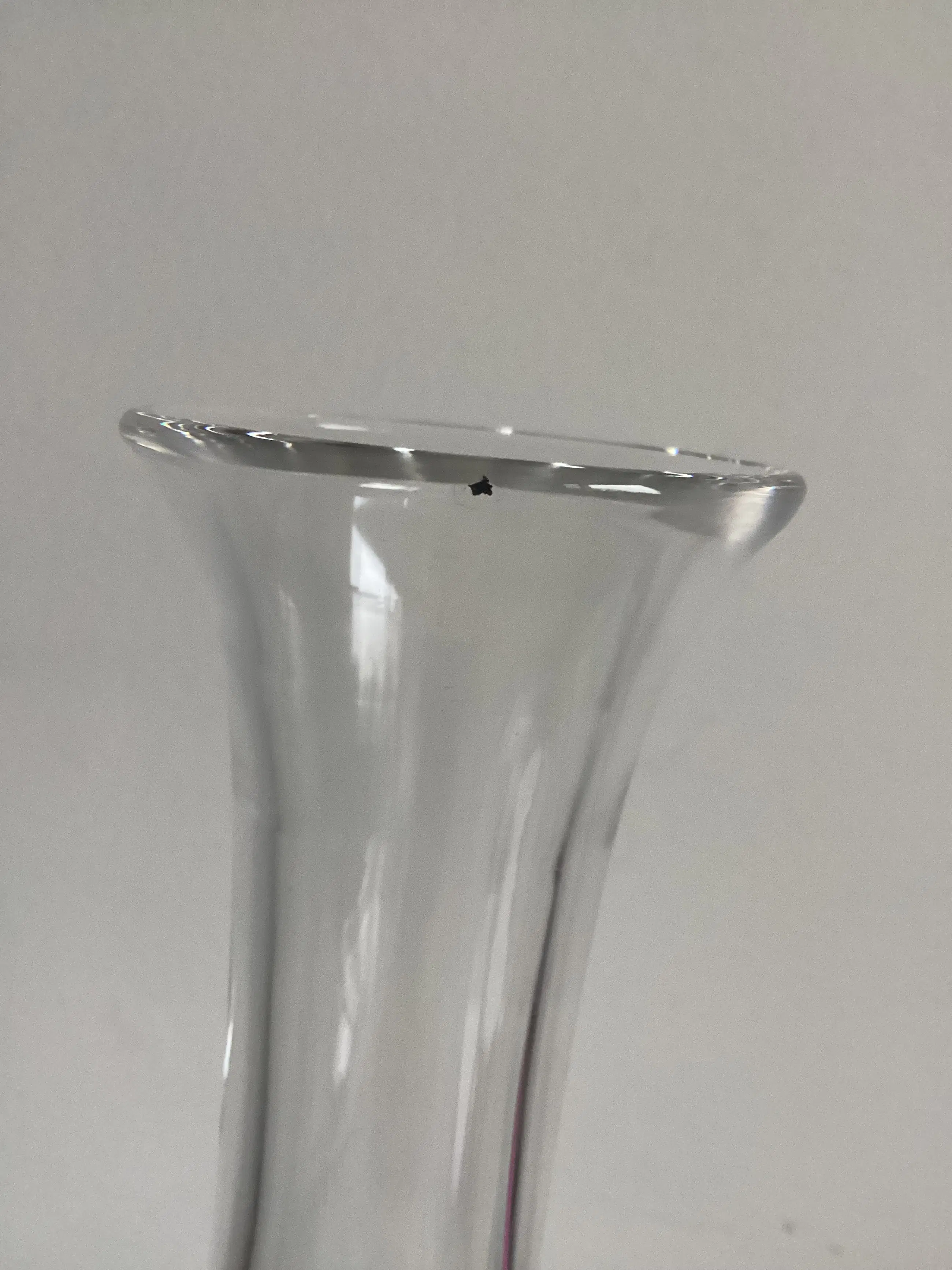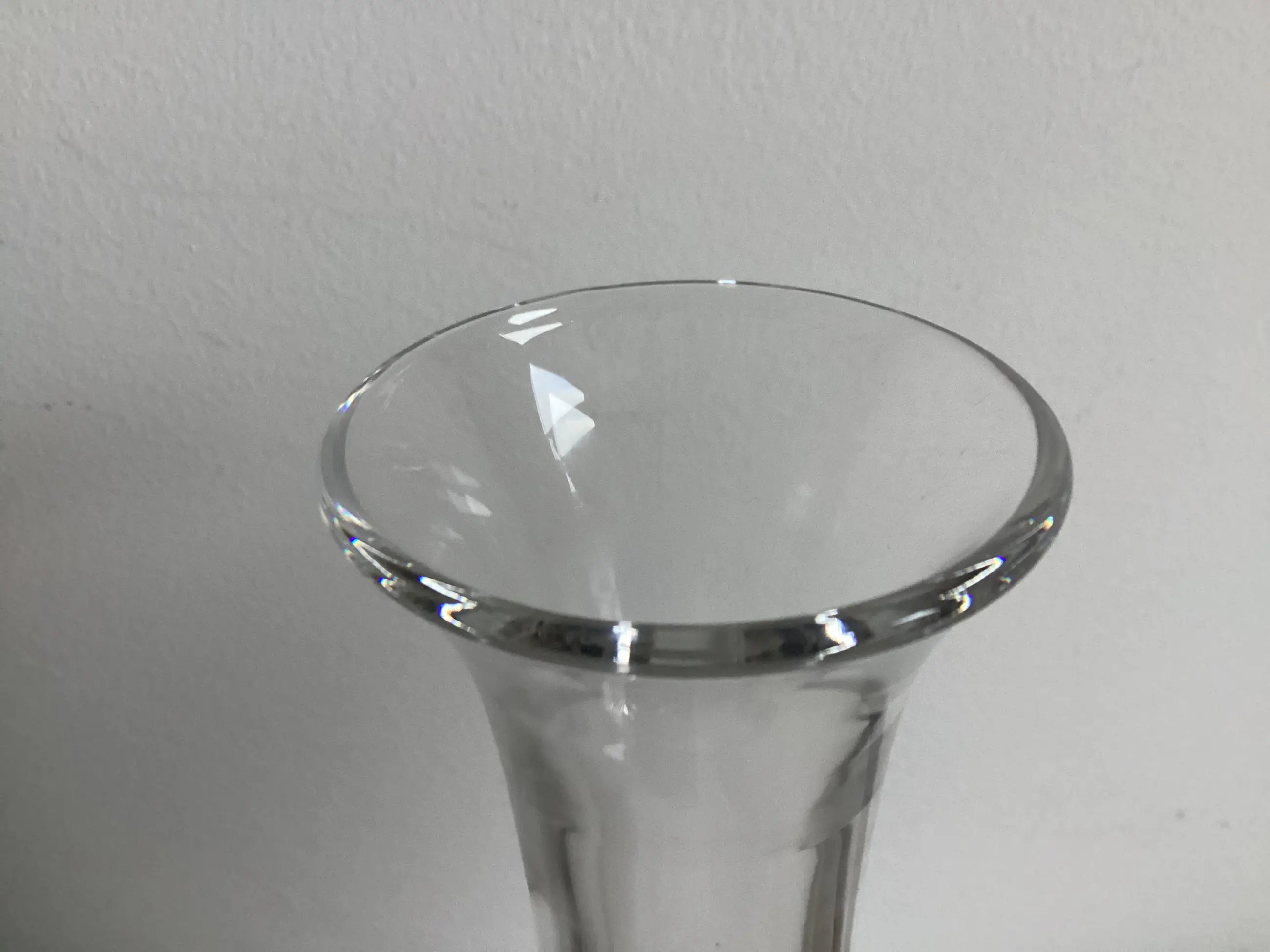 Fraaie karaf van Leerdam: Florence. Compleet met stop. Van merkteken voorzien onderop, tevens genummerd 127 onderop plus op stop. Hoogte 35,5 cm. Afgezien van minuscuul stipje aan de bovenrand (productiefoutje of stootplekje) in onberispelijke staat ( zie voorlaatste detail foto).