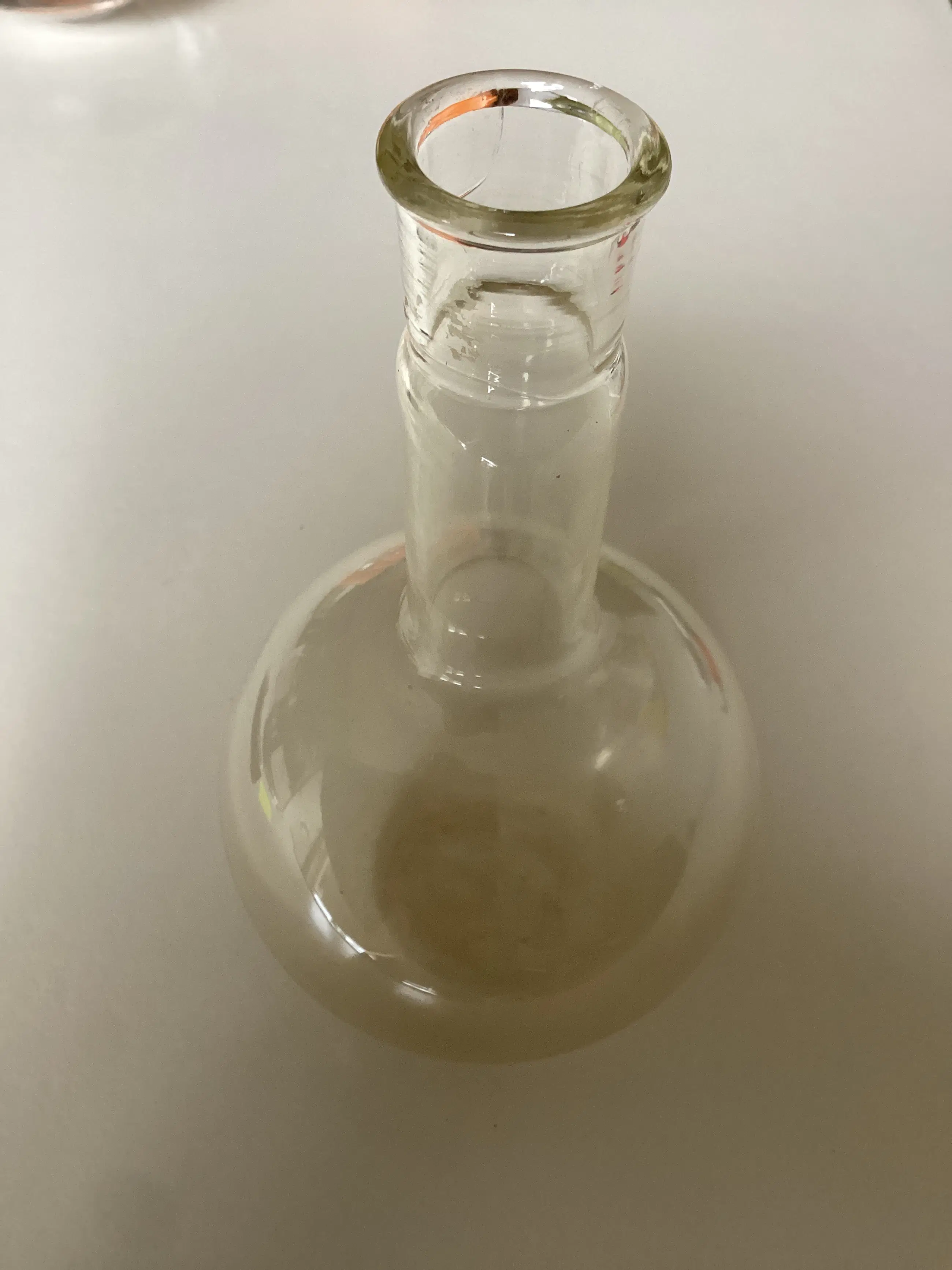 Rondbodemkolf glaswerk van Thermax Leerdam, rond 1940. Speciaal licht glassoort. Hoogte 23 cm. Voorzien van merkteken. Onbeschadigd maar verkleurd glas.