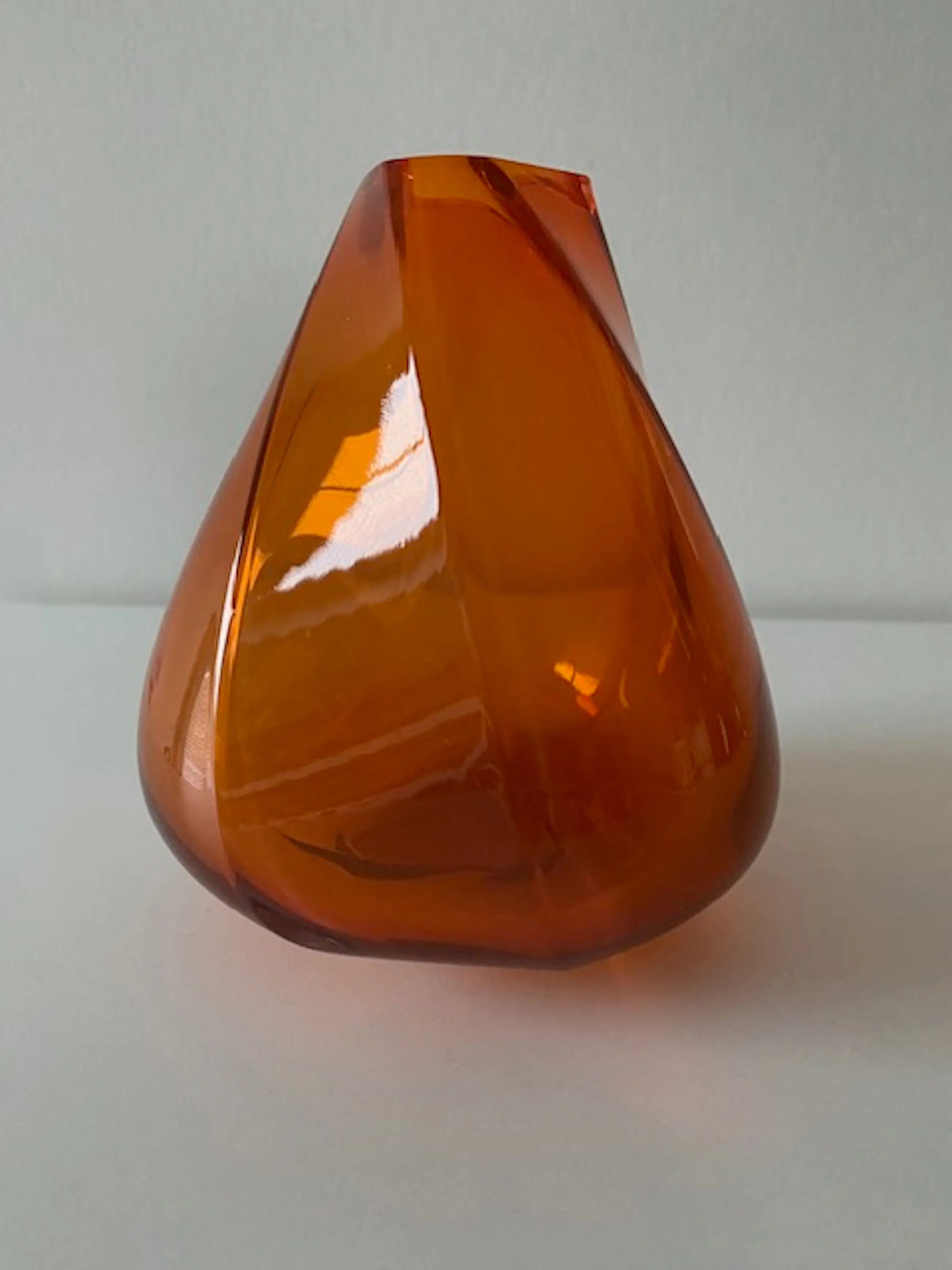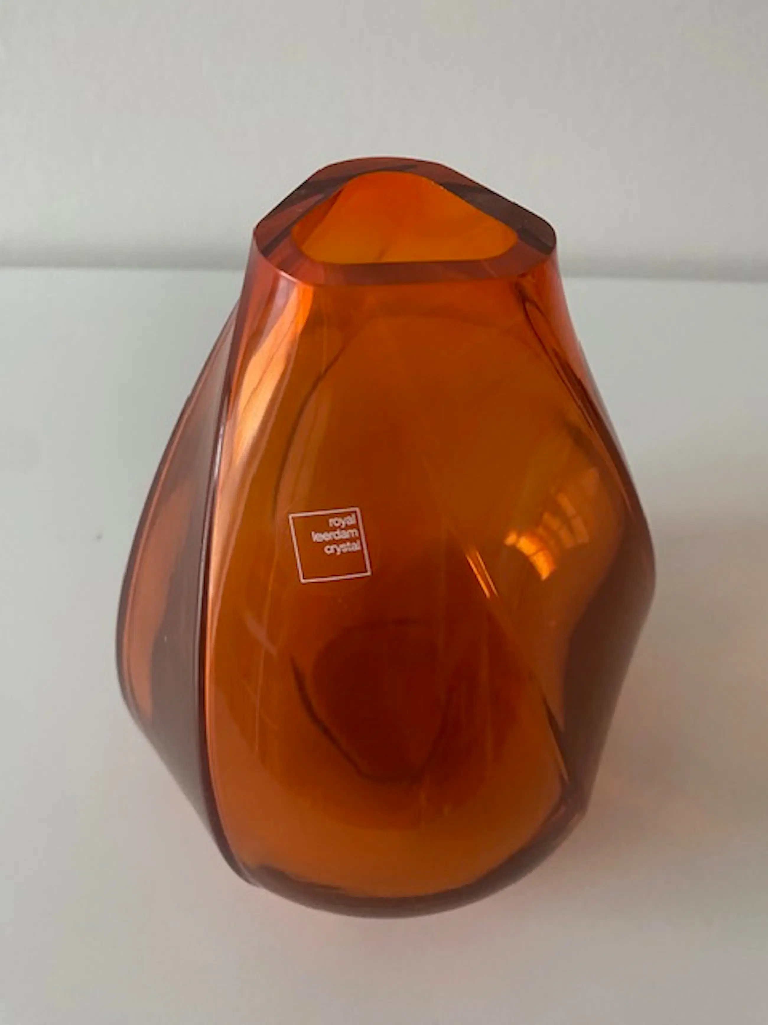 Prachtig vormgegeven dikwandige oranjevaas 2020 Uitgave ter gelegenheid van 75 jaar Vrijheid Ontwerp De Parme Design / Z.K.H. Prinses Margarita De Bourbon De Parme De vorm van de vaas is zeer stijlvol en elegant, geïnspireerd door een vogelvlucht die van het wateroppervlak de lucht in komt. Gewicht ruim 0,8 kg! Limited edition: nummer 321 van 500. Gesigneerd De Parme Design 2020; Royal Crystal Leerdam; 321/500 (zie foto) Sticker Royal Leerdam (zijkant).