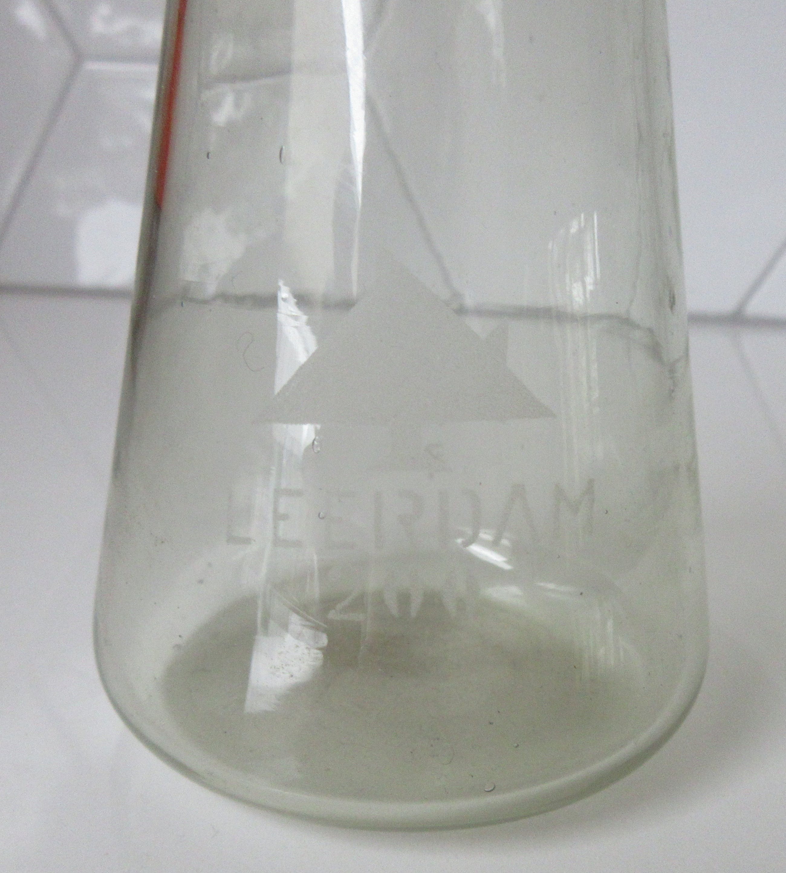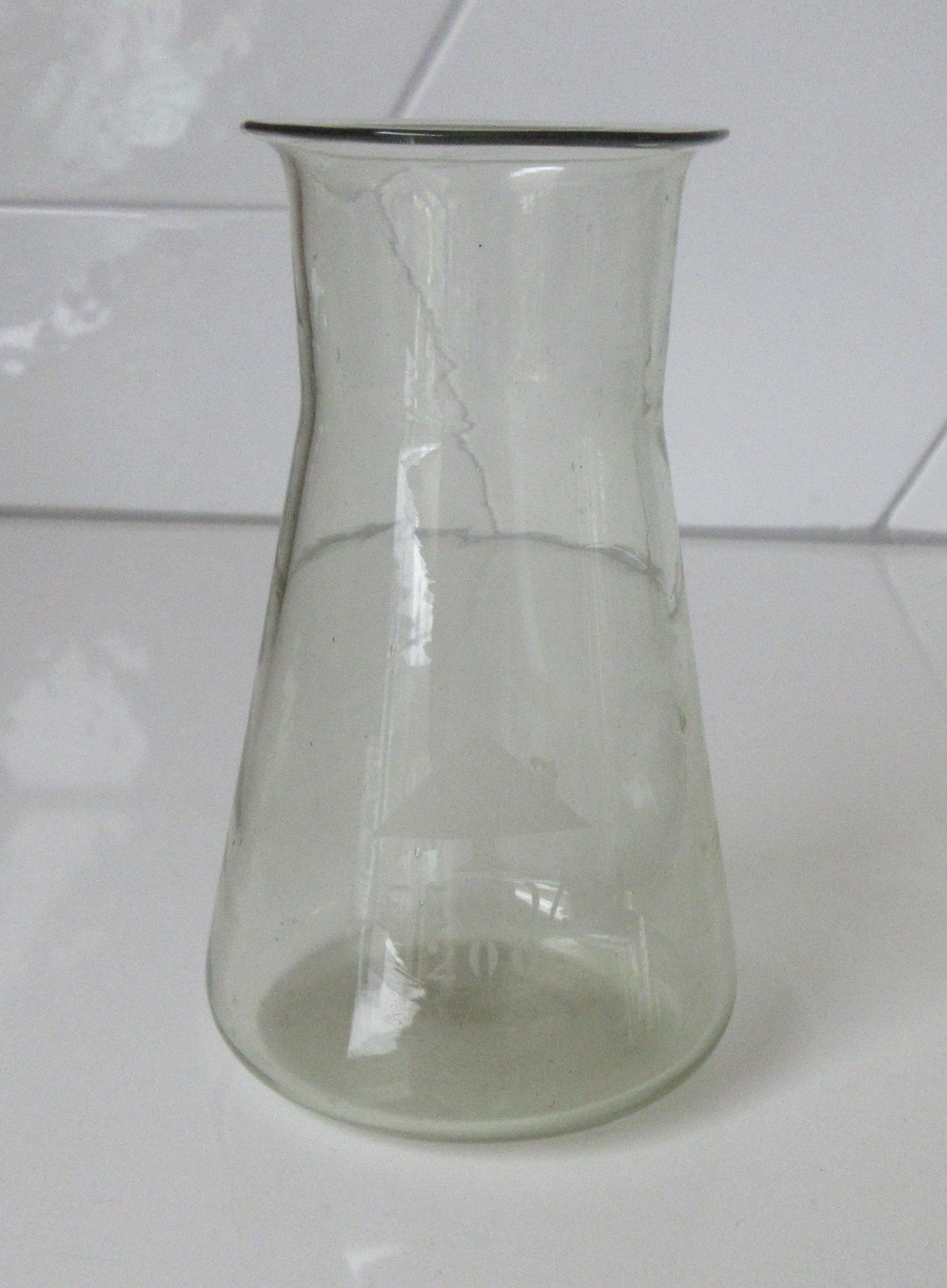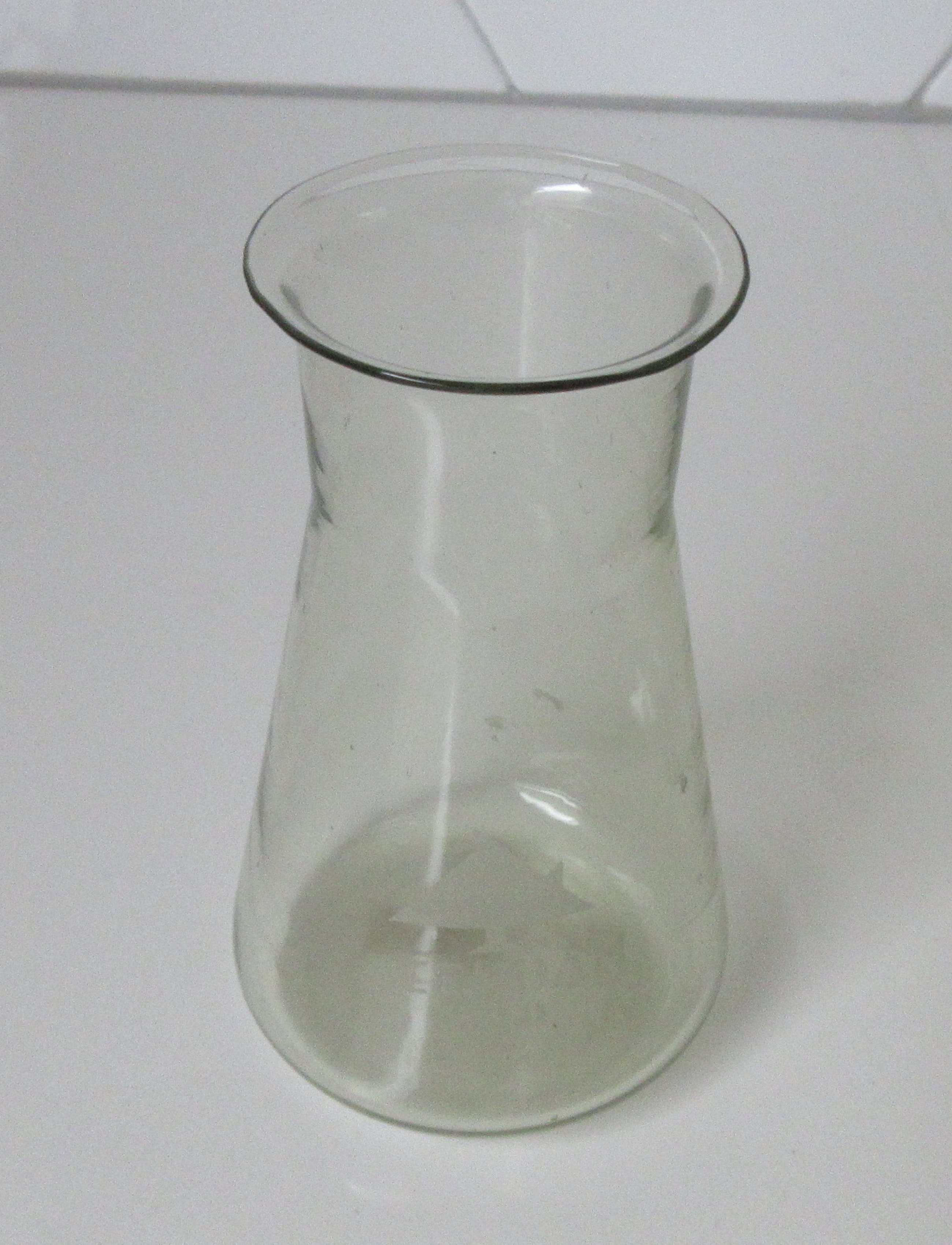Rookglazen Erlenmeyer 200 ML van Royal Leerdam. Voorzien van etsmerk op de voorzijde. Gemaakt in de jaren''20-'30. In prima conditie.