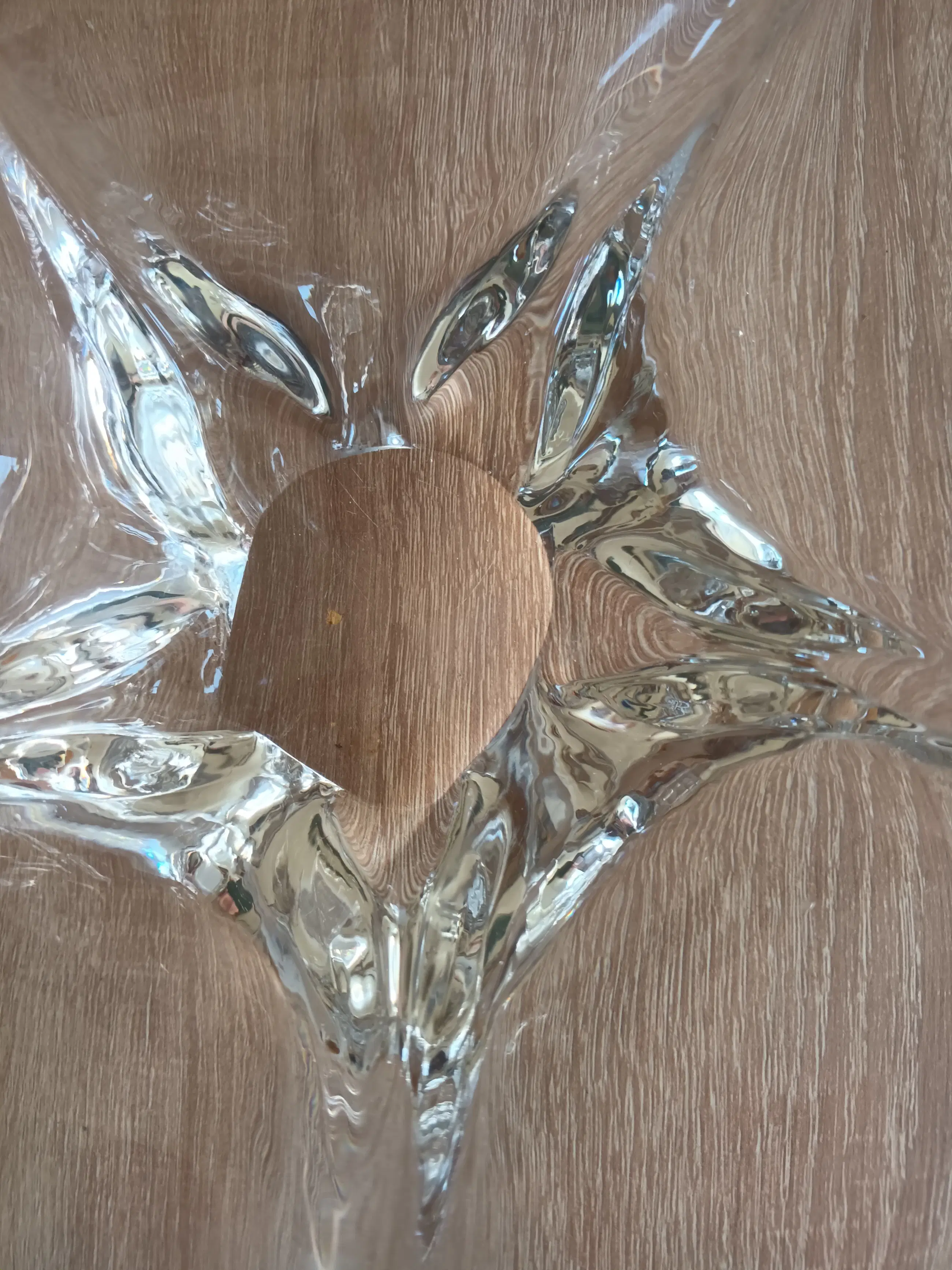 Een grote, mooie kristallen vijfhoekige schaal van Siem van der Marel voor Royal Leerdam. De ontwerpen van Siem van der Marel blinken uit door kwaliteit, eenvoud en helderheid.