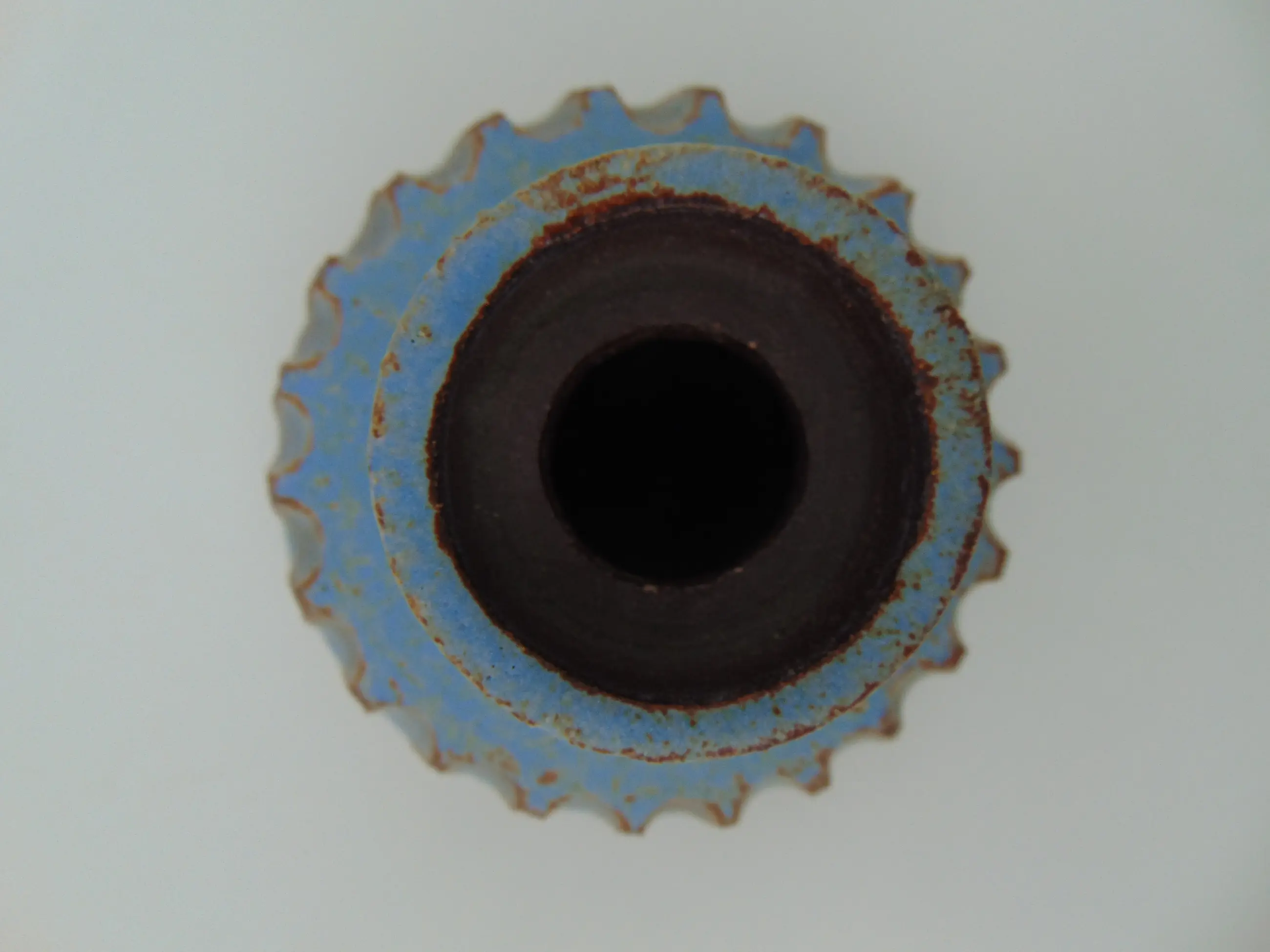 Mooi handwerk vaasje gemaakt door R de Boer voor RAM. Het vaasje is gemerkt aan de onderzijde: RAM 453.