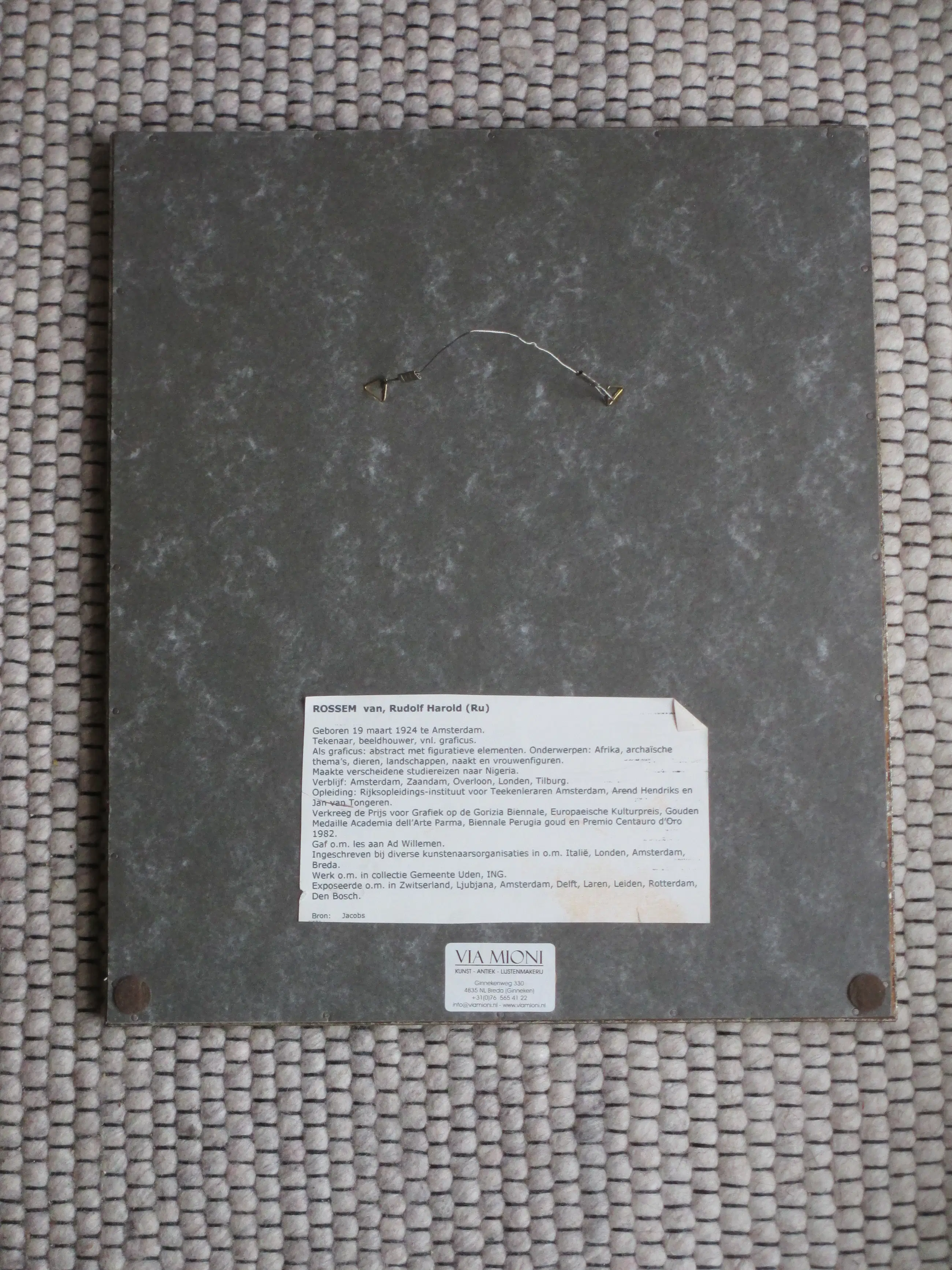 Het werk is af te halen op locatie. Als koper dient u zelf verpakkingsmateriaal mee te nemen. De locatie is: Oegstgeest, Nederland