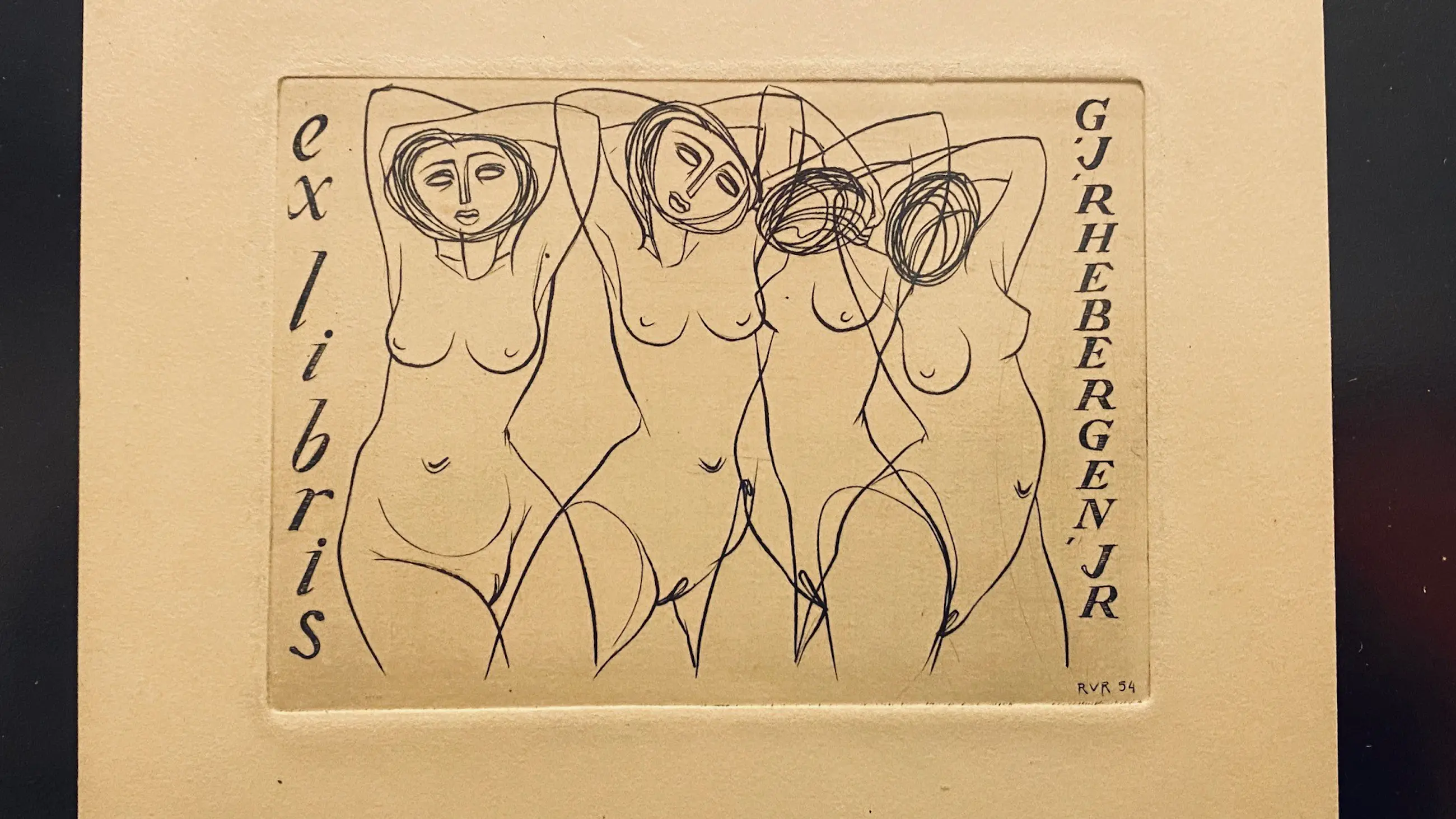 Ru van Rossem – Ex libris‑gravure (gesigneerd RvR 54)