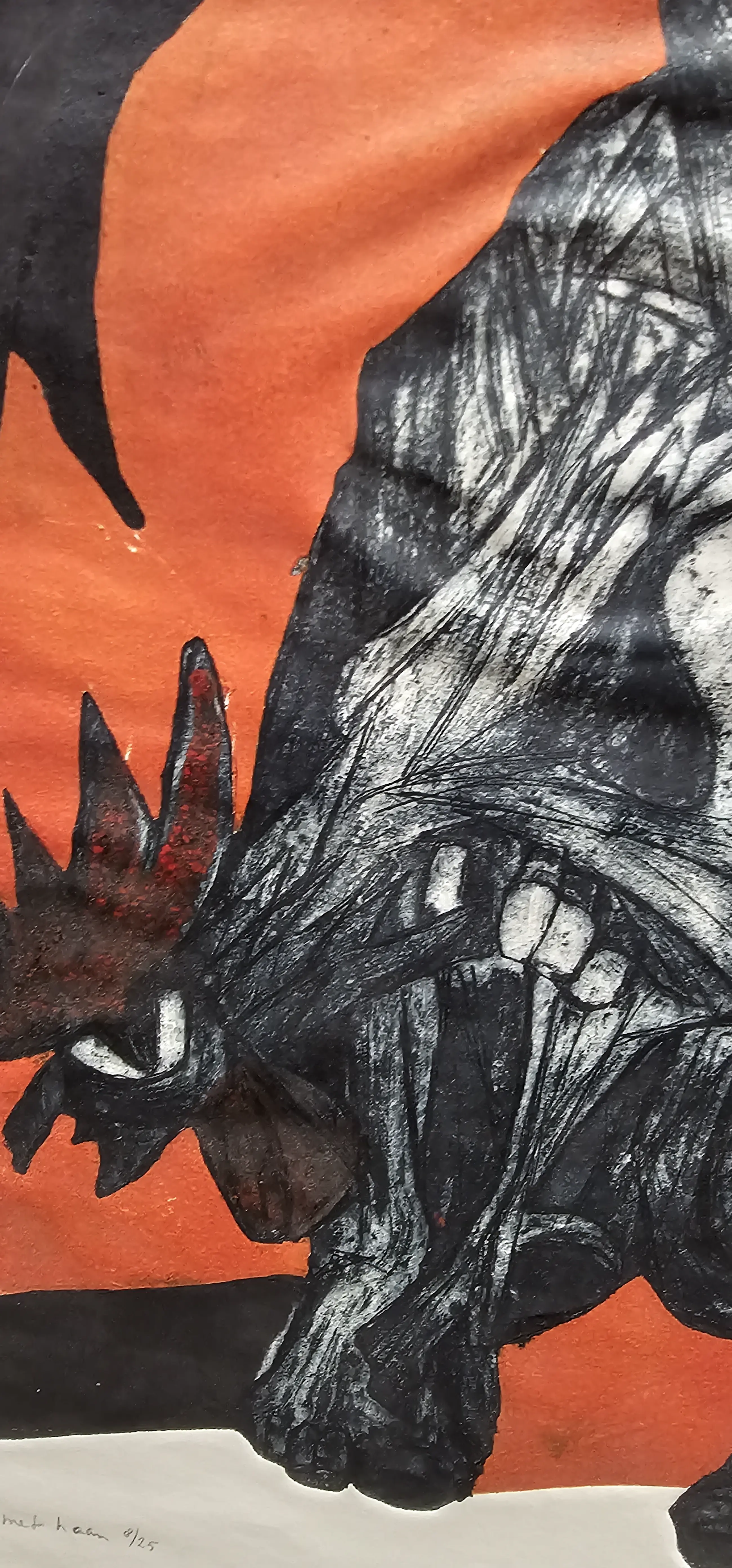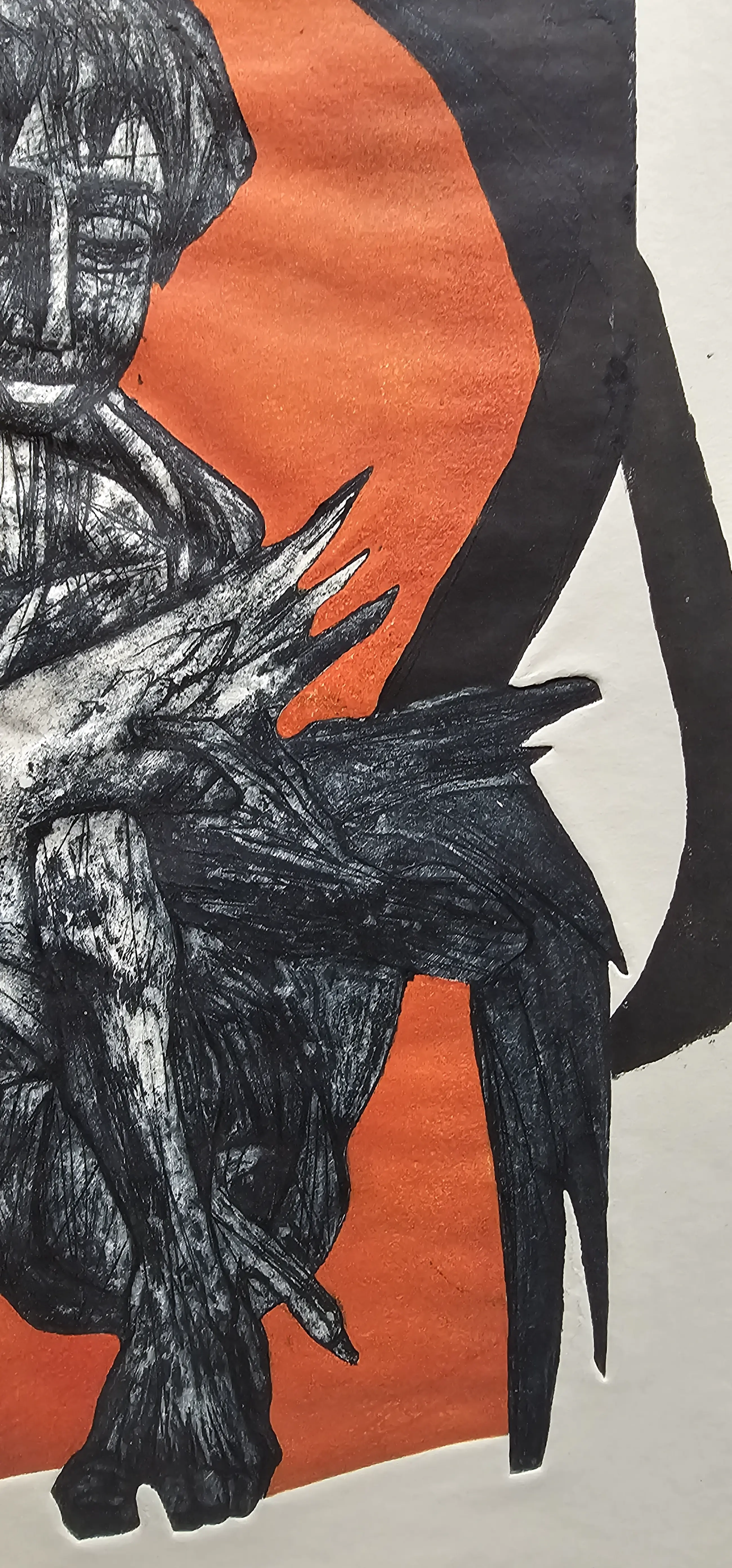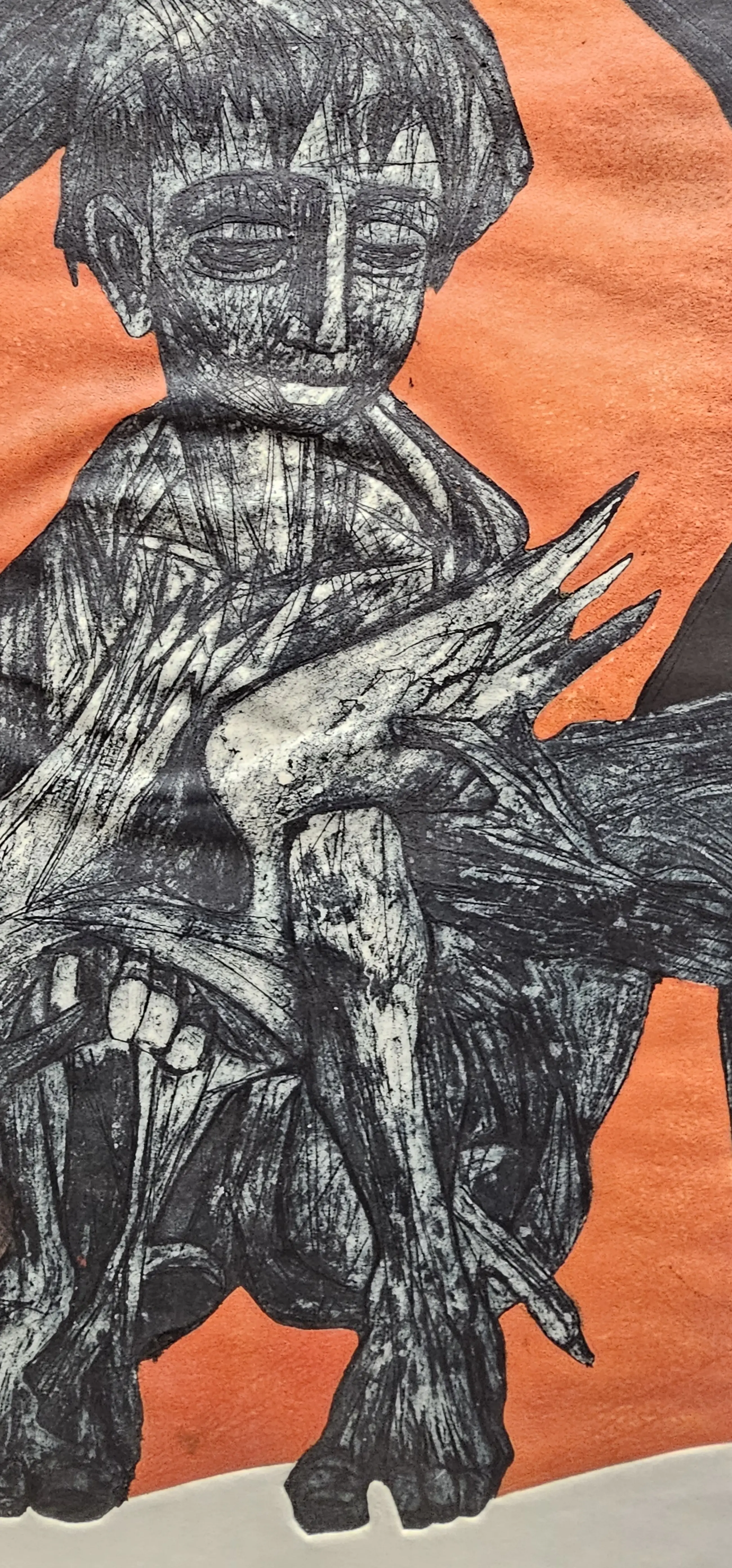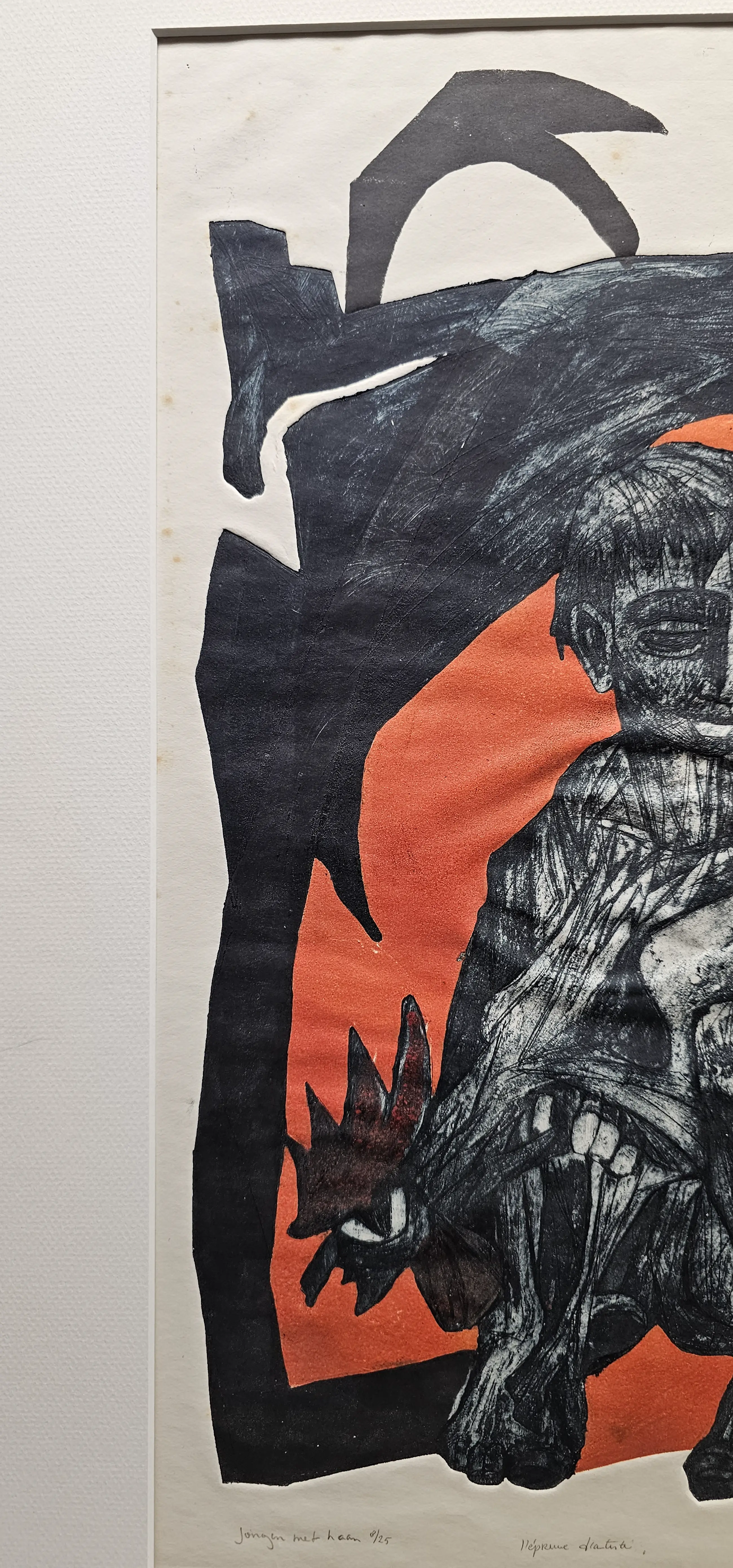 Ru van Rossum Jongen met haan Enpruve de artiste reliefdruk.