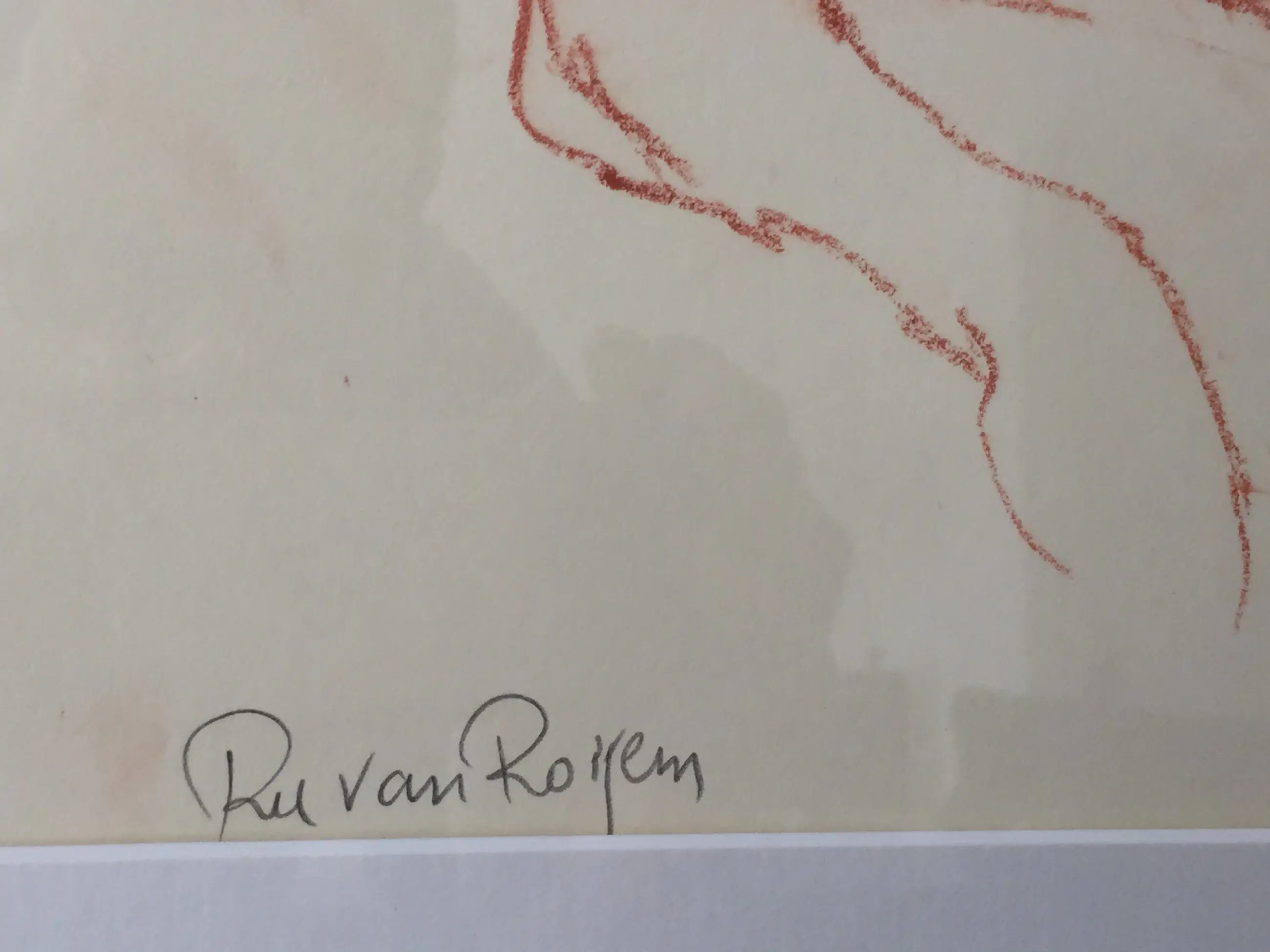 Let op: de tekening is in de lijst licht verzakt en deels losgekomen van het passe-partout. Dit is zichtbaar, maar kan desgewenst relatief eenvoudig hersteld worden door opnieuw te monteren.