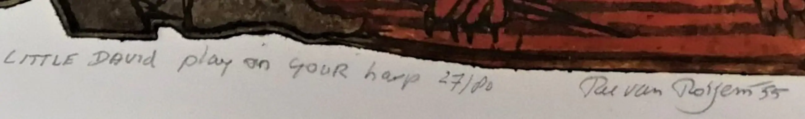 Little David play on your harp is een prachtige en favoriet werk Ru van Rossem Het werk wordt daarom getoond op de cover van het boek "the Early Works". Dit boek werd uitgegeven ter ere van de 80ste verjaardag van de kunstenaar.