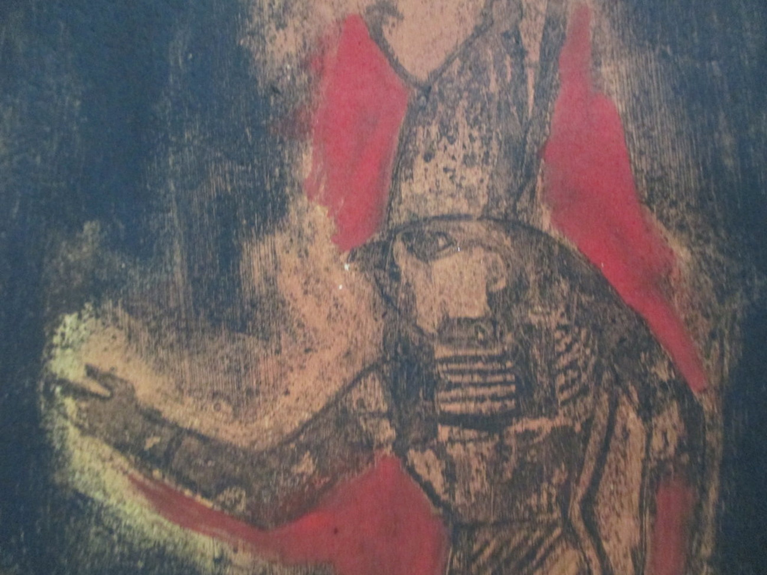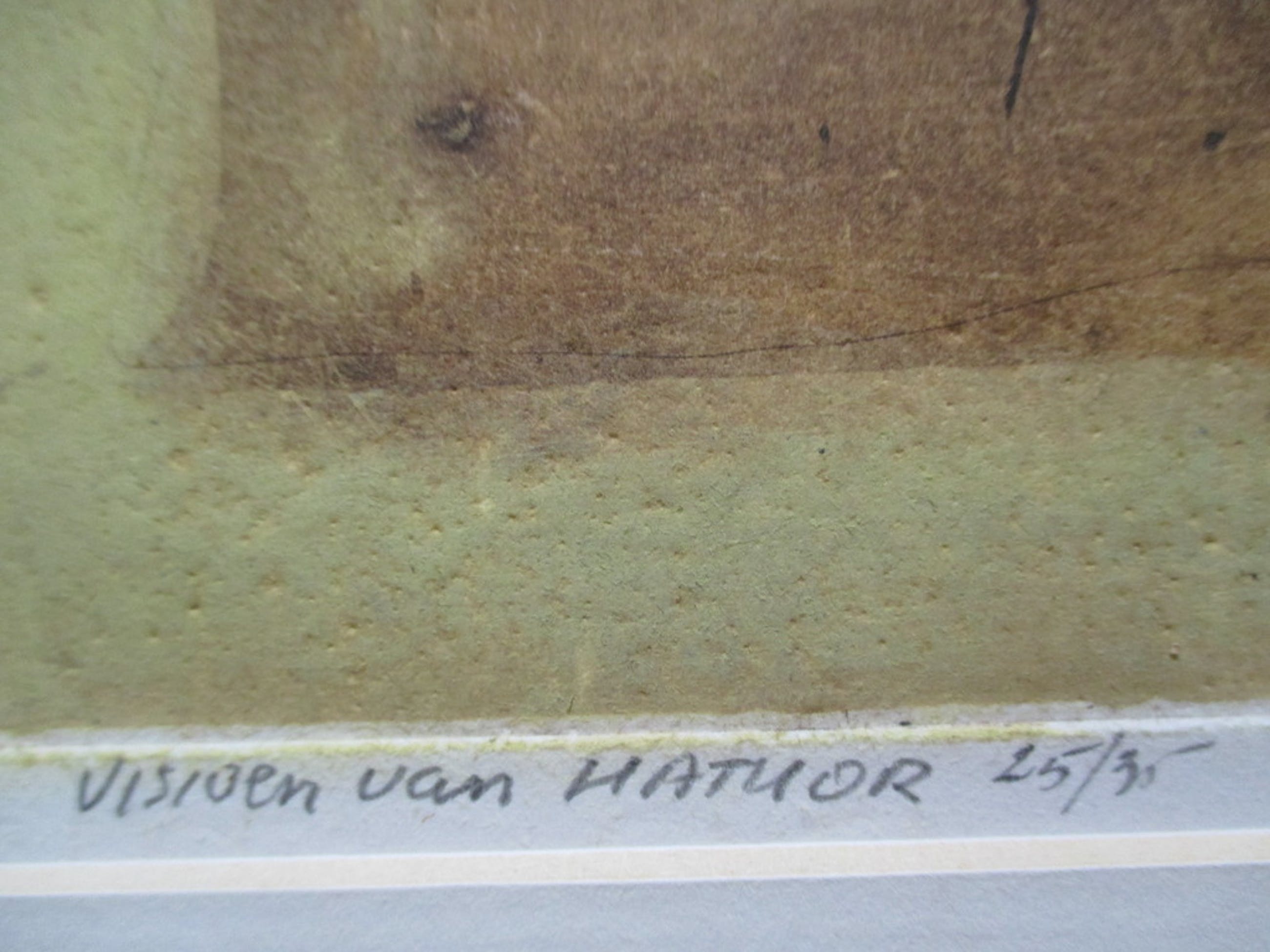 Grote ets van Ru van Rossem getiteld "Visioen van Hatuor", gedateerd 1986, genummerd 25/35, 1e epr. d'artiste en gesigneerd in potlood.