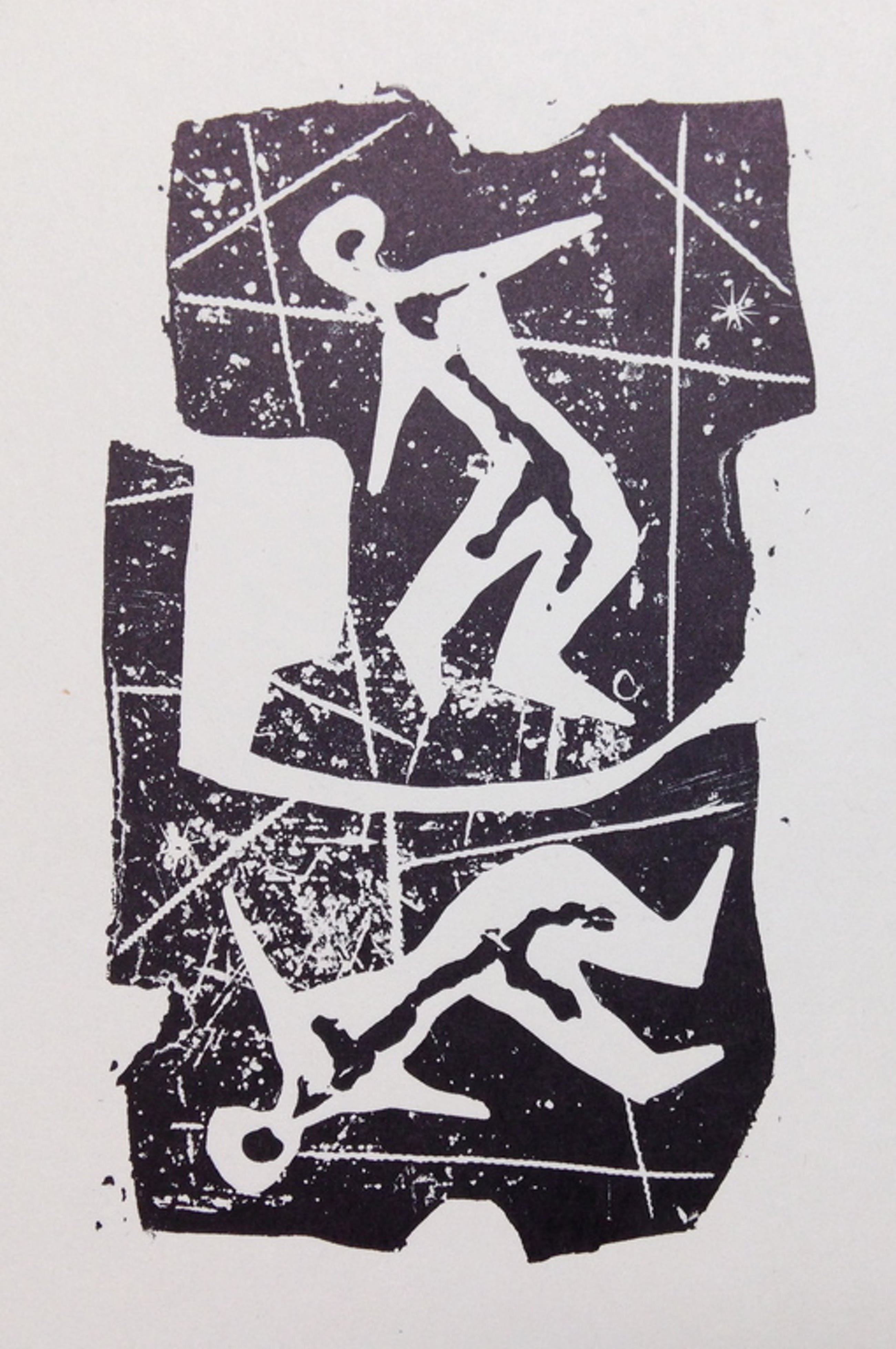 Fraaie kleine hoogdruk ets van Ru van Rossem.