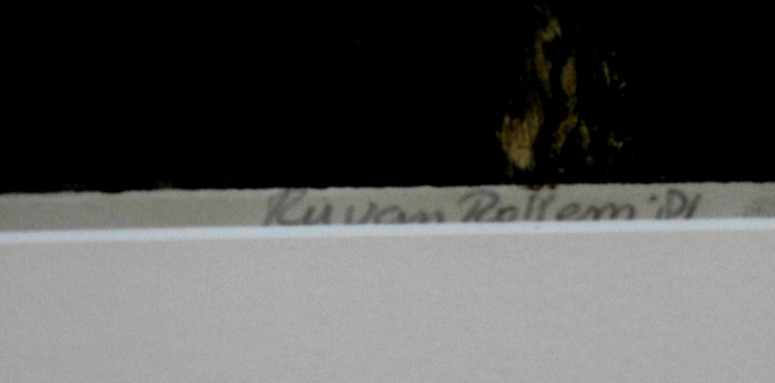 Mooie ingelijste ets van Ru van Rossem uit 1981. Titel: Versteend leven. Nummer: 22/35 Afmetingen incl lijst: 91 x 71 cm. Afmetingen voorstelling: H69,5 x b49 cm.Het werk is rechtsonder gesigneerd door de kunstenaar. De authenciteit van het, aangeboden, werk wordt voor 100% gegarandeerd.Een certificaat van echtheid kan, op aanvraag, worden meegeleverd.