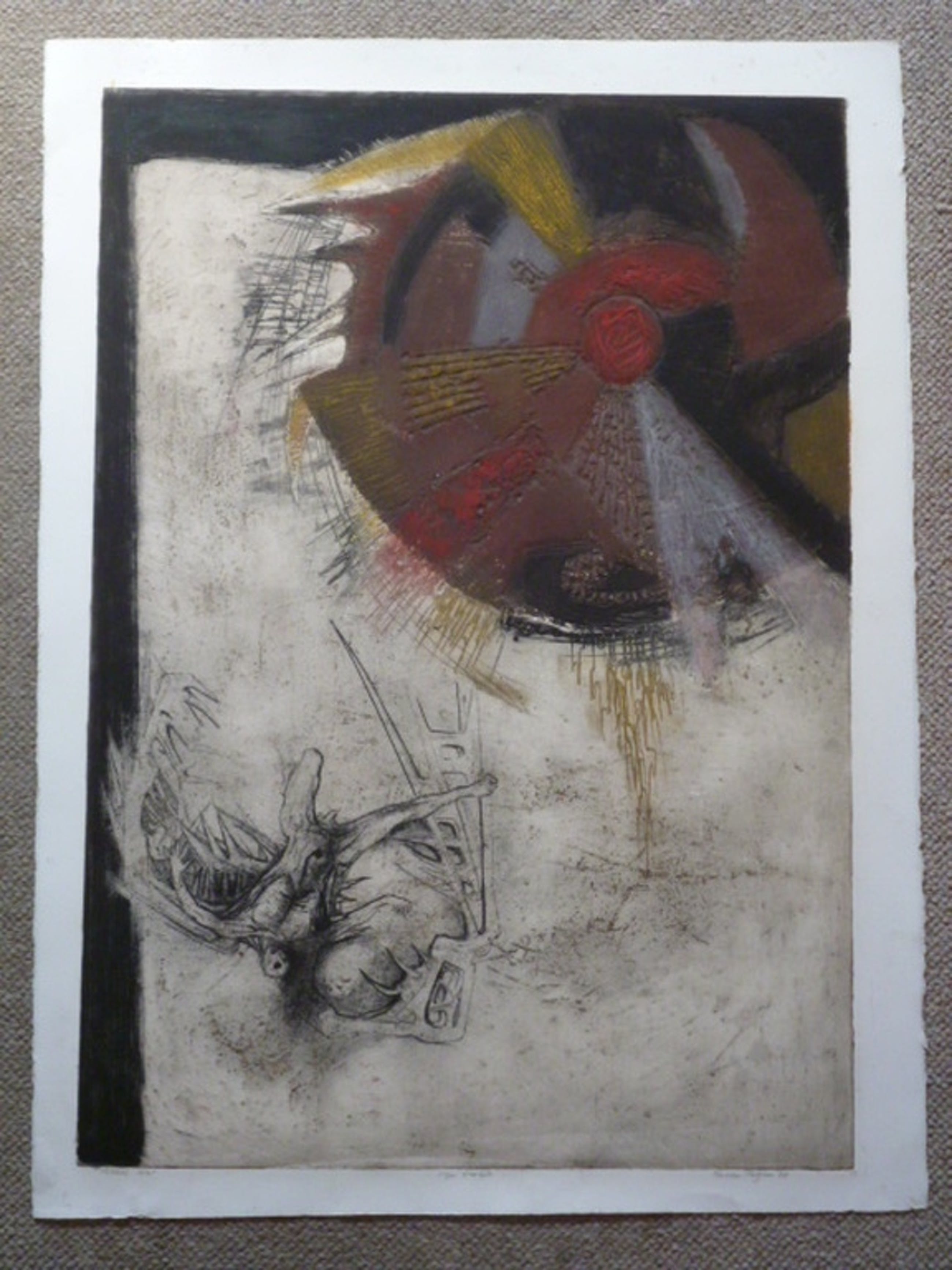 Kleurenets met reliëfdruk uit 1977. Potlood gesigneerd en gedateerd rechtsonder. 1e epr. d'artiste middenonder. Getiteld en genummerd 11/35 linksonder.