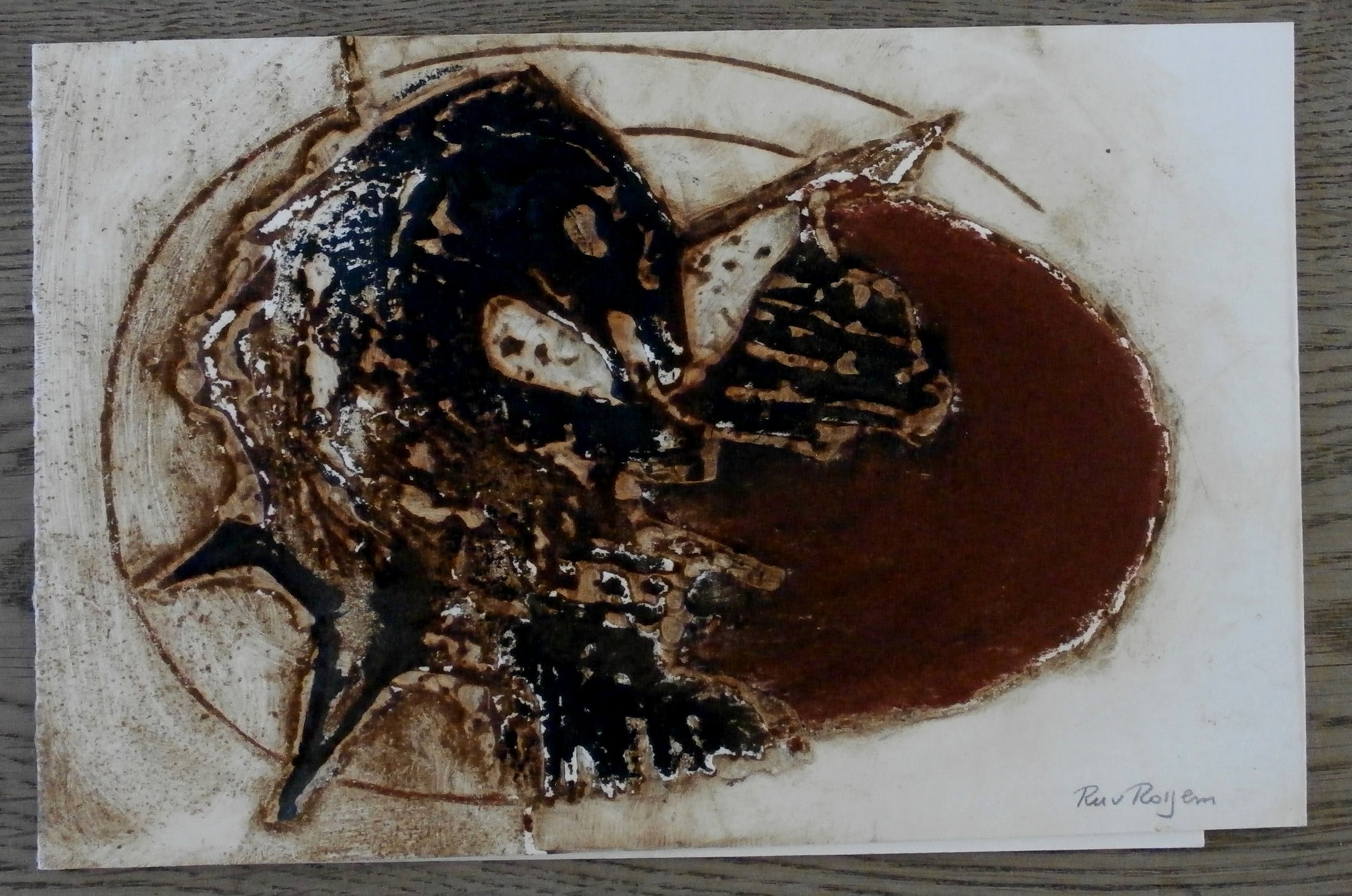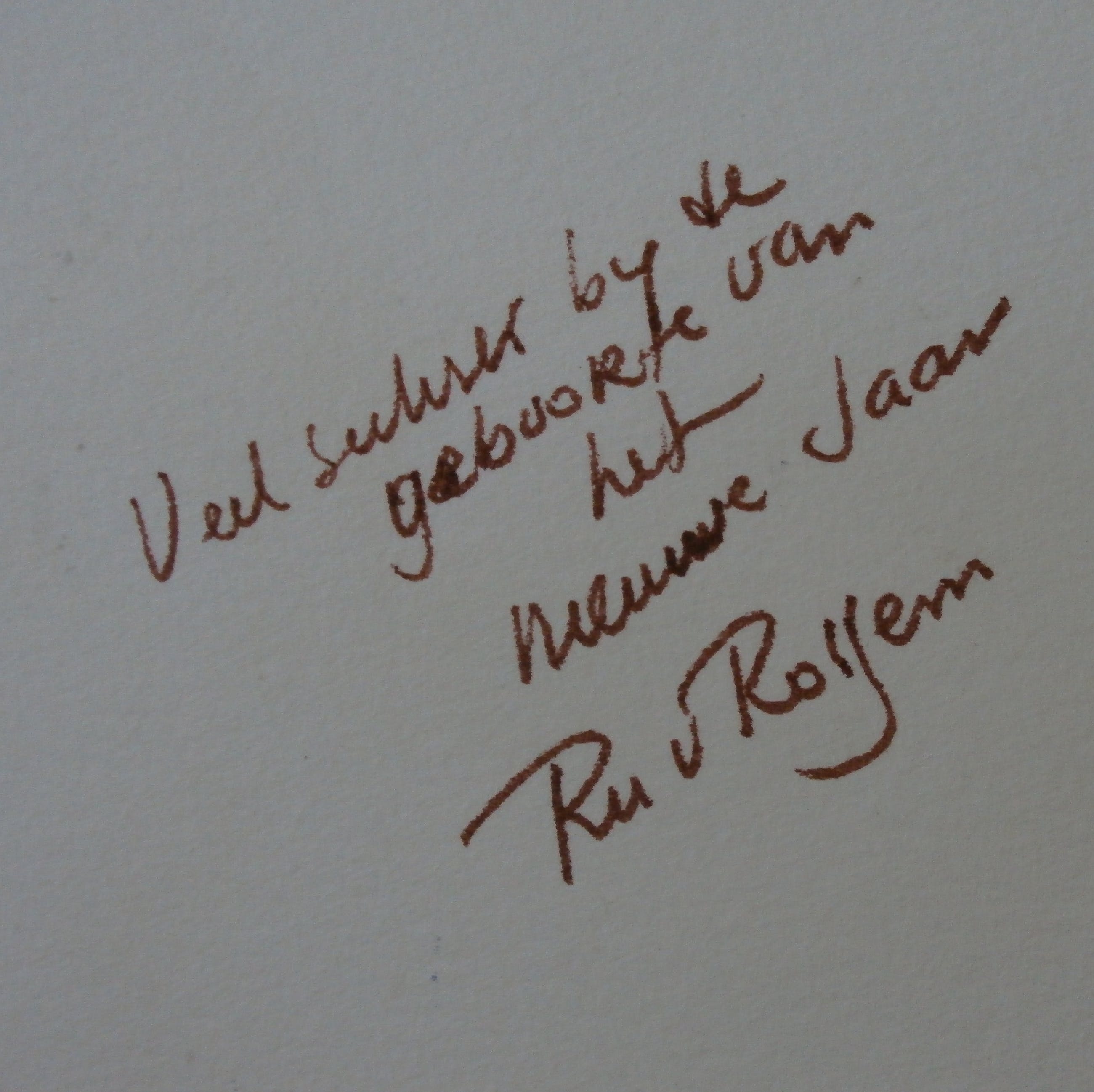 Reliefdruk van Ru van Rossem. Tekst: Veel sukses bij de geboorte van het nieuwe jaar. Afmetingen blad: H12,5 x b19,5 cm. Het werk is in de kaart gesigneerd. De authenticiteit van het aangeboden werk wordt volledig gegarandeerd. Een certificaat van echtheid kan, op aanvraag, worden gemaild.