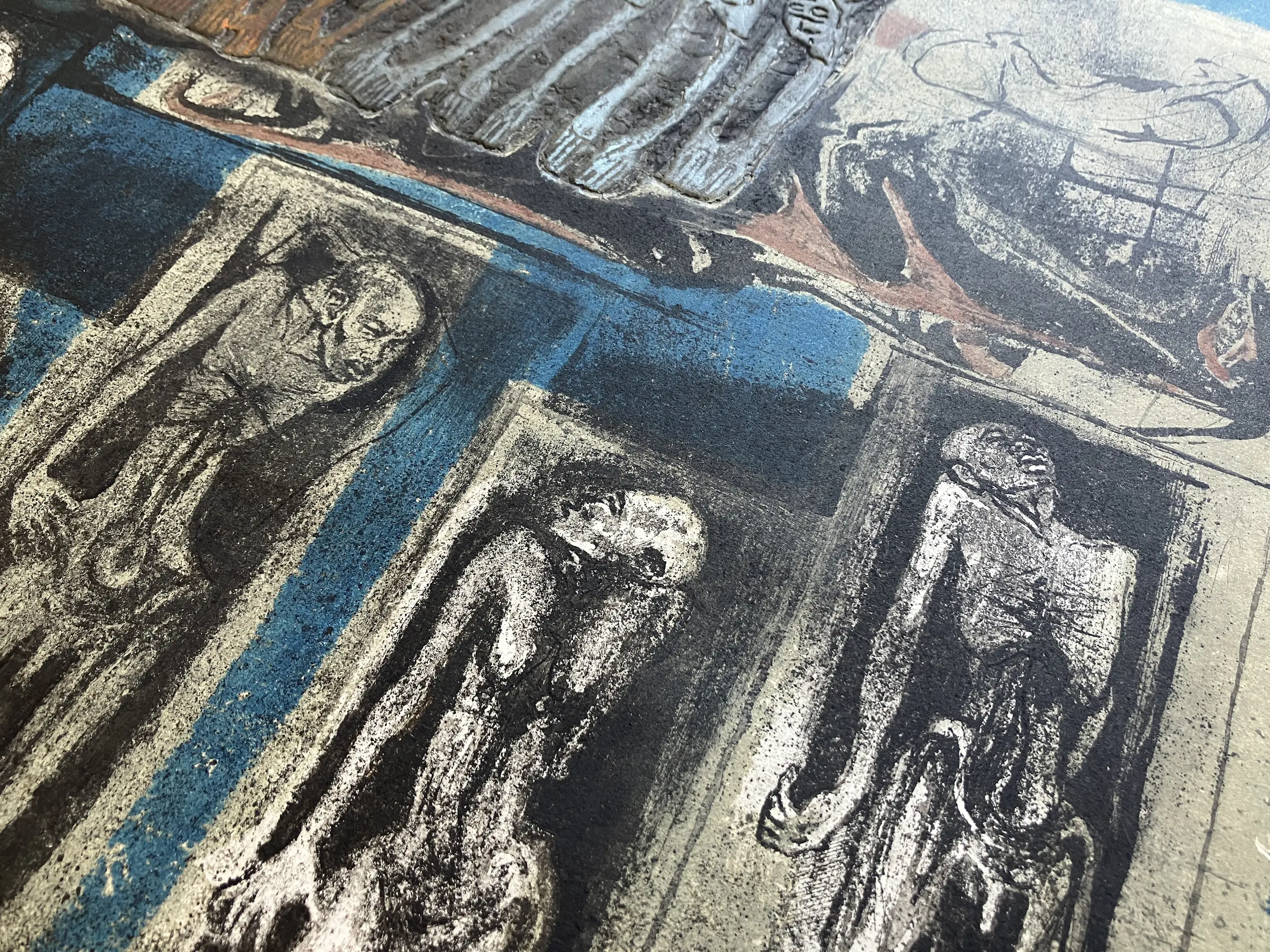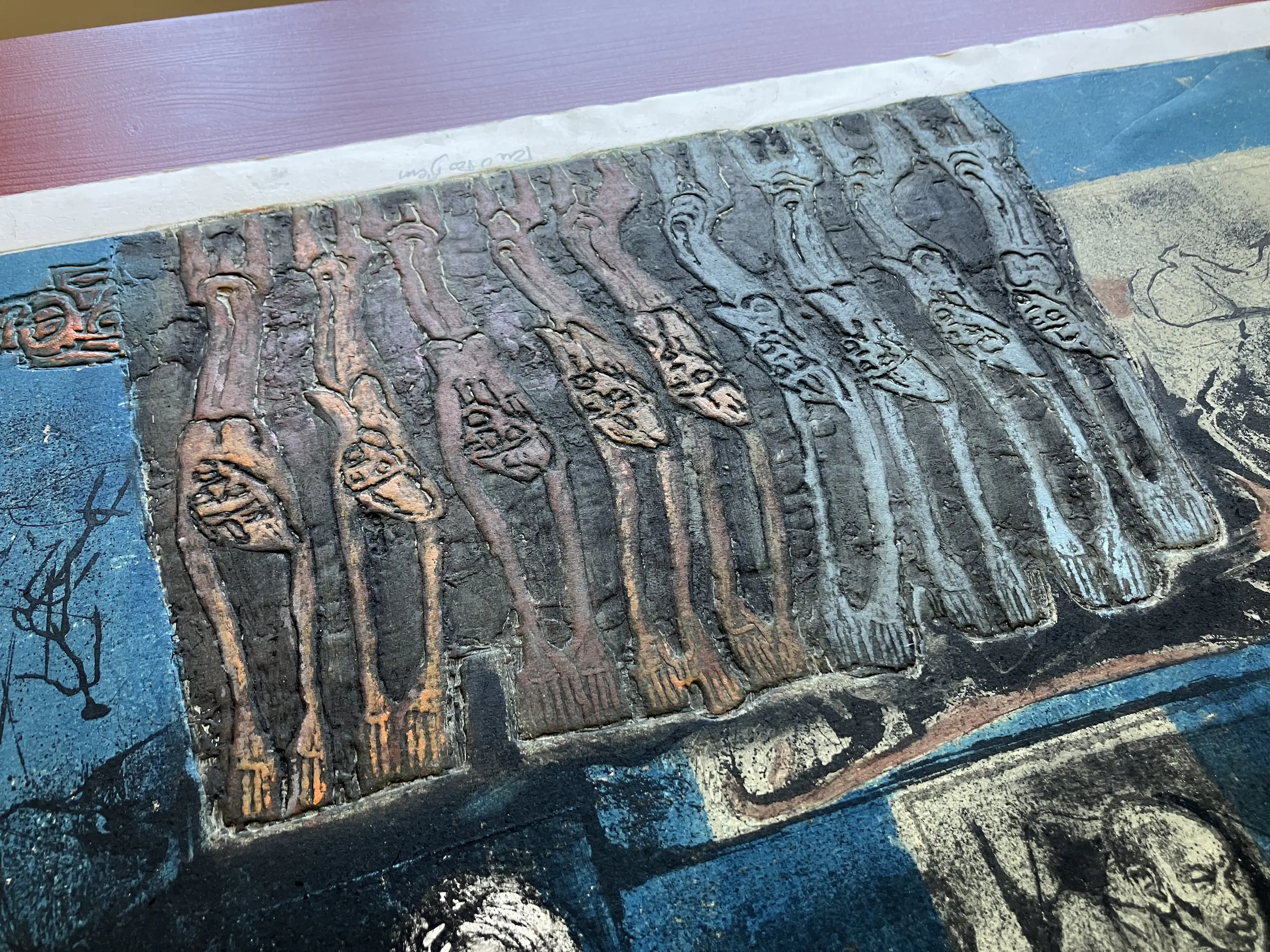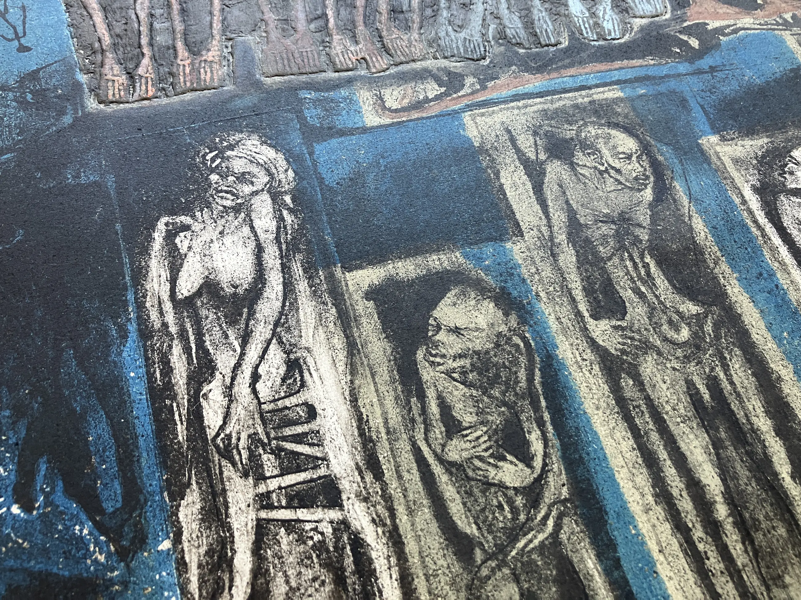 Prachtige originele ets met reliëfdruk van Ru van Rossem, titel: Sahet, gesigneerd in potlood. Linksonder de titel. Rechtsonder de signatuur en het jaartal: +/- '70.