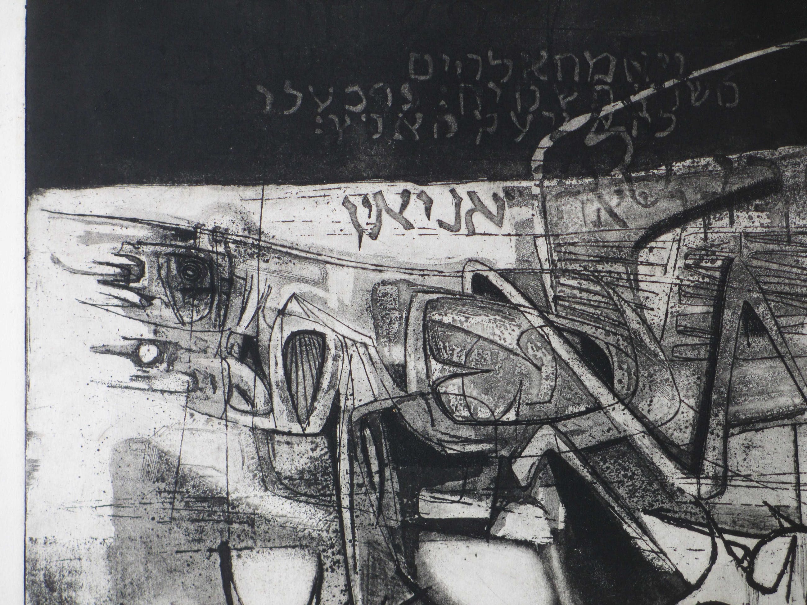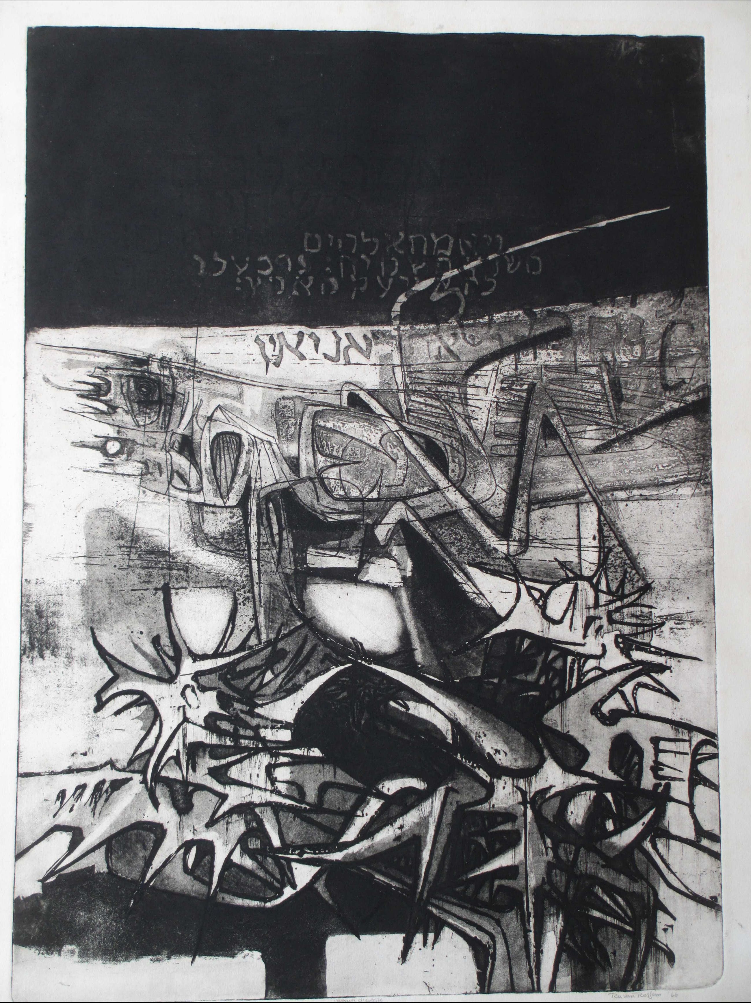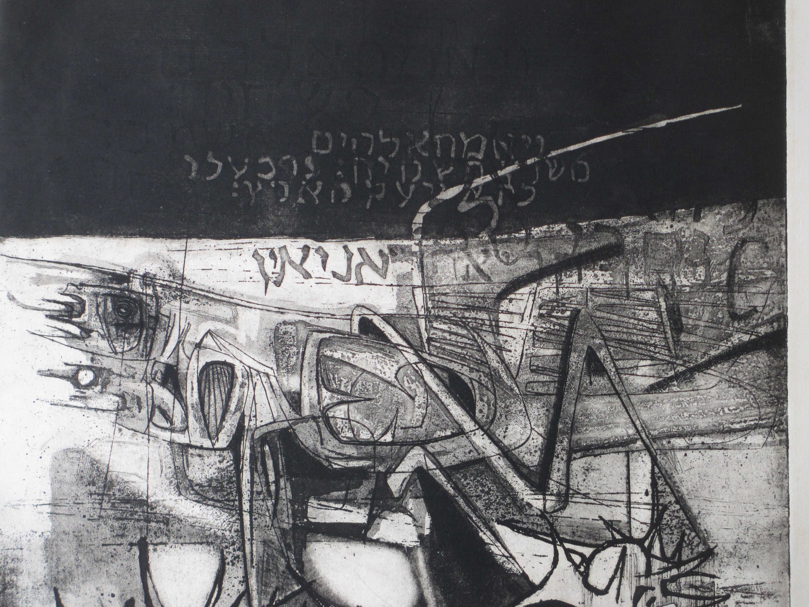 Ets door Ru van Rossem. Losbladig, beeldmaat 69x50, bladmaat 75x55 Gesigneerd en gedateerd rechtsonder in potlood: 'Ru van Rossem '66' Annotatie middenonder: 'l'epreuve d'artiste' Getiteld en genummerd linksonder: 'Tekens v. weerstand I' en '4/30'