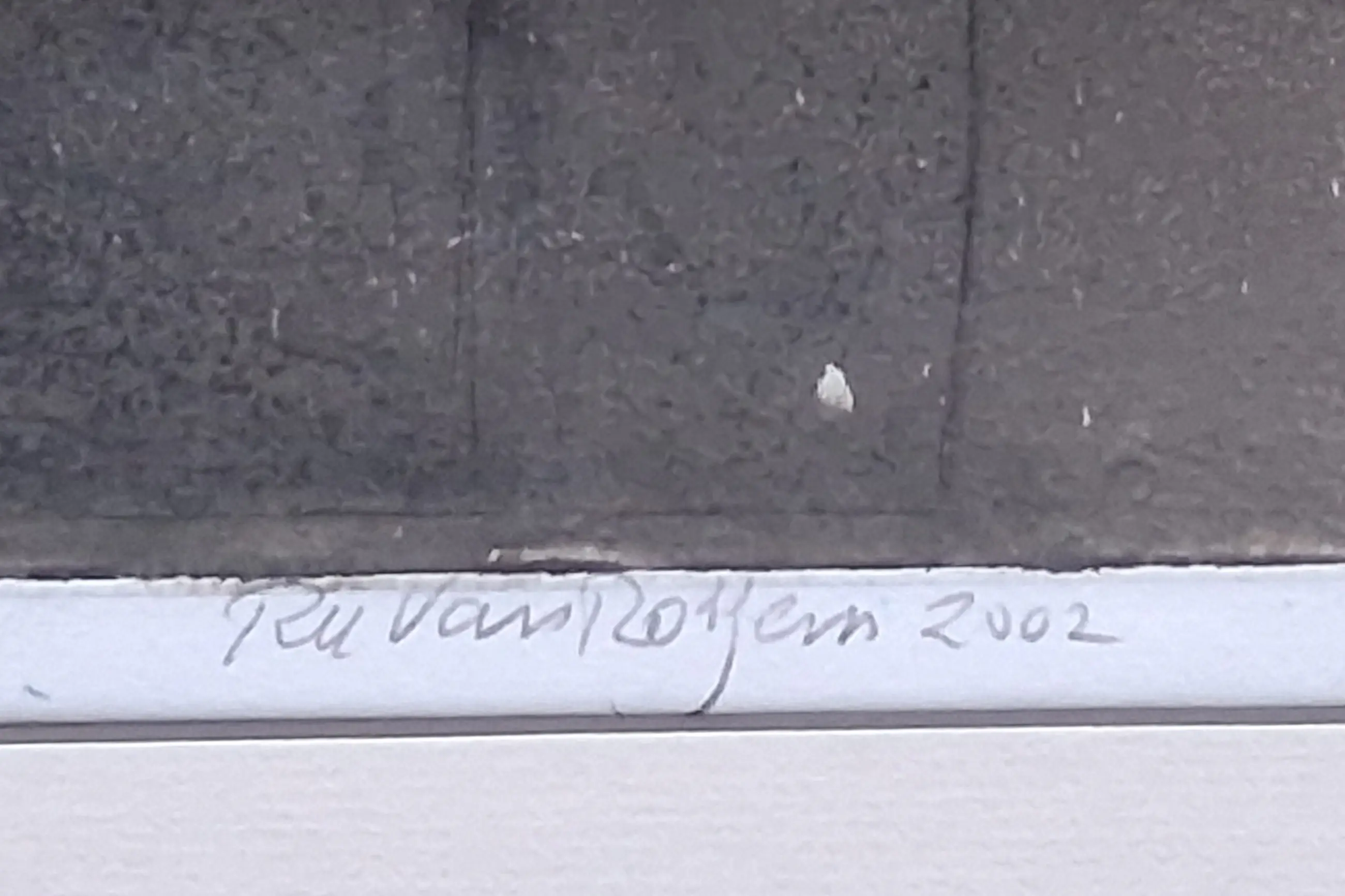 Grote ets van Ru van Rossem, met potlood door de maker gesigneerd, genummerd, gedateerd en van titel voorzien. Ingelijst in goudkleurige houten lijst. Het geheel verkeert in nieuwstaat.
