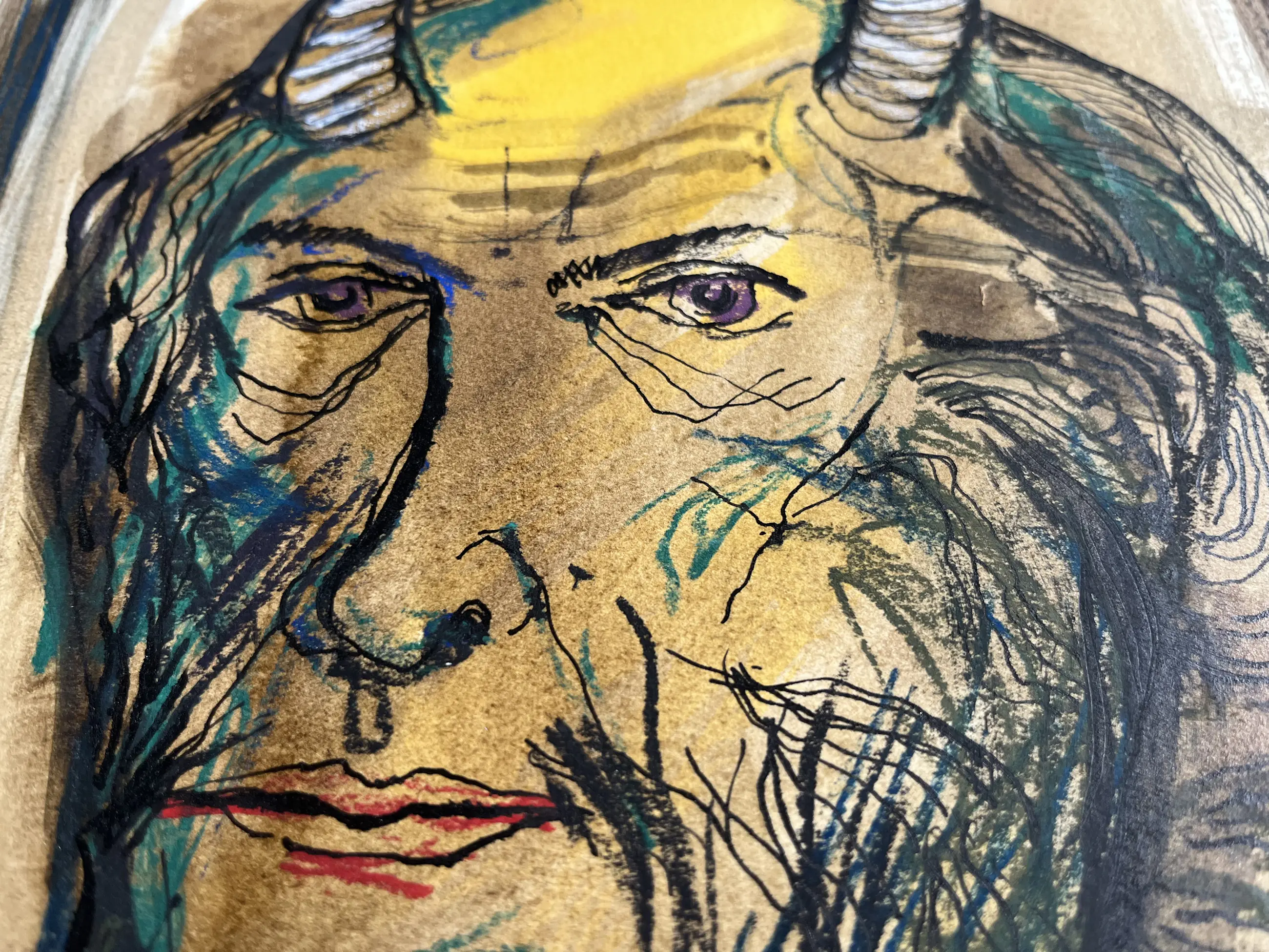Waar aquarel en inkt in het papier trekken, blijft pastelkrijt er bovenop liggen.