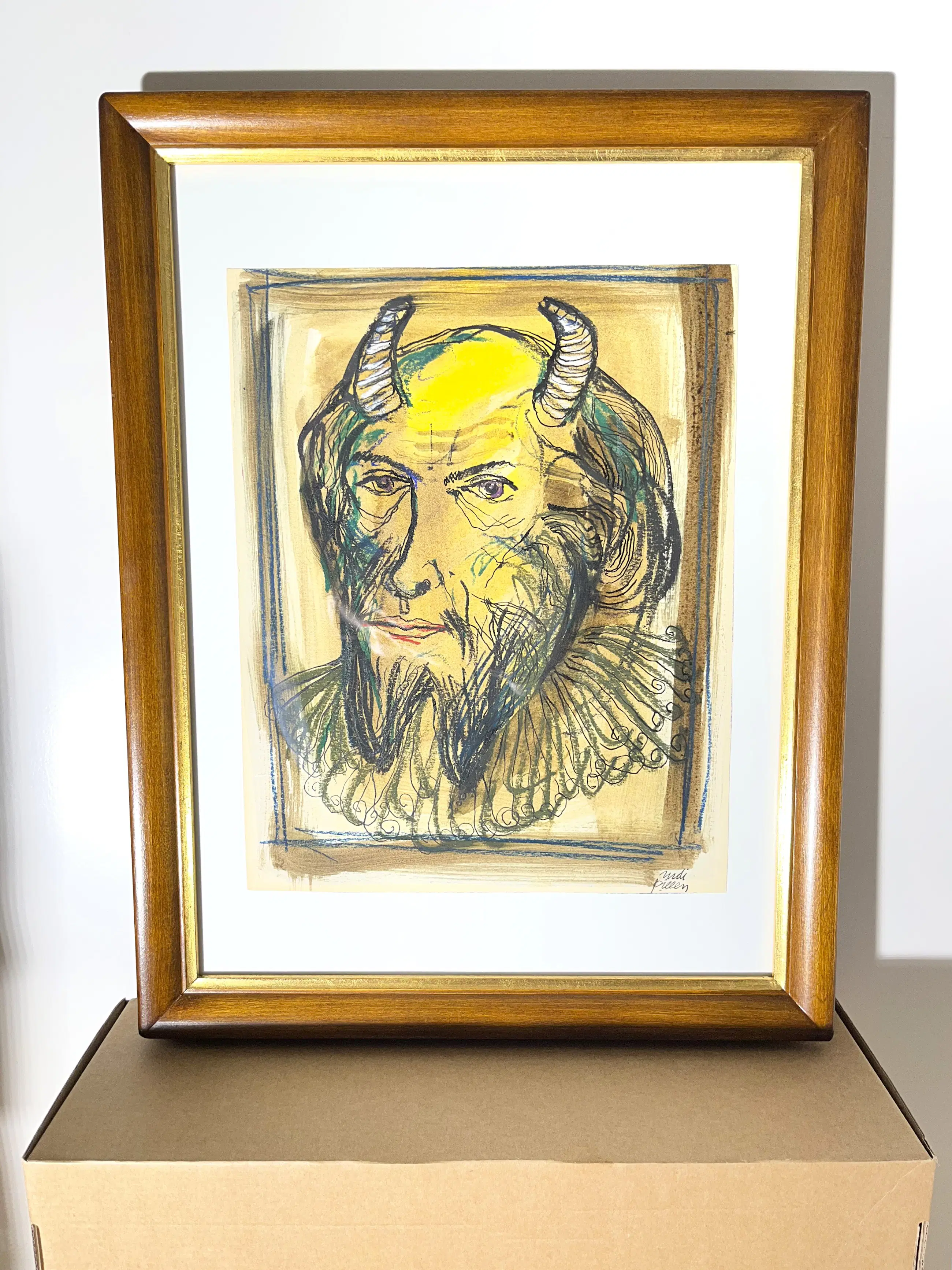 Gelaagd werk uitgevoerd in aquarel met details in inkt en pastelkrijt.