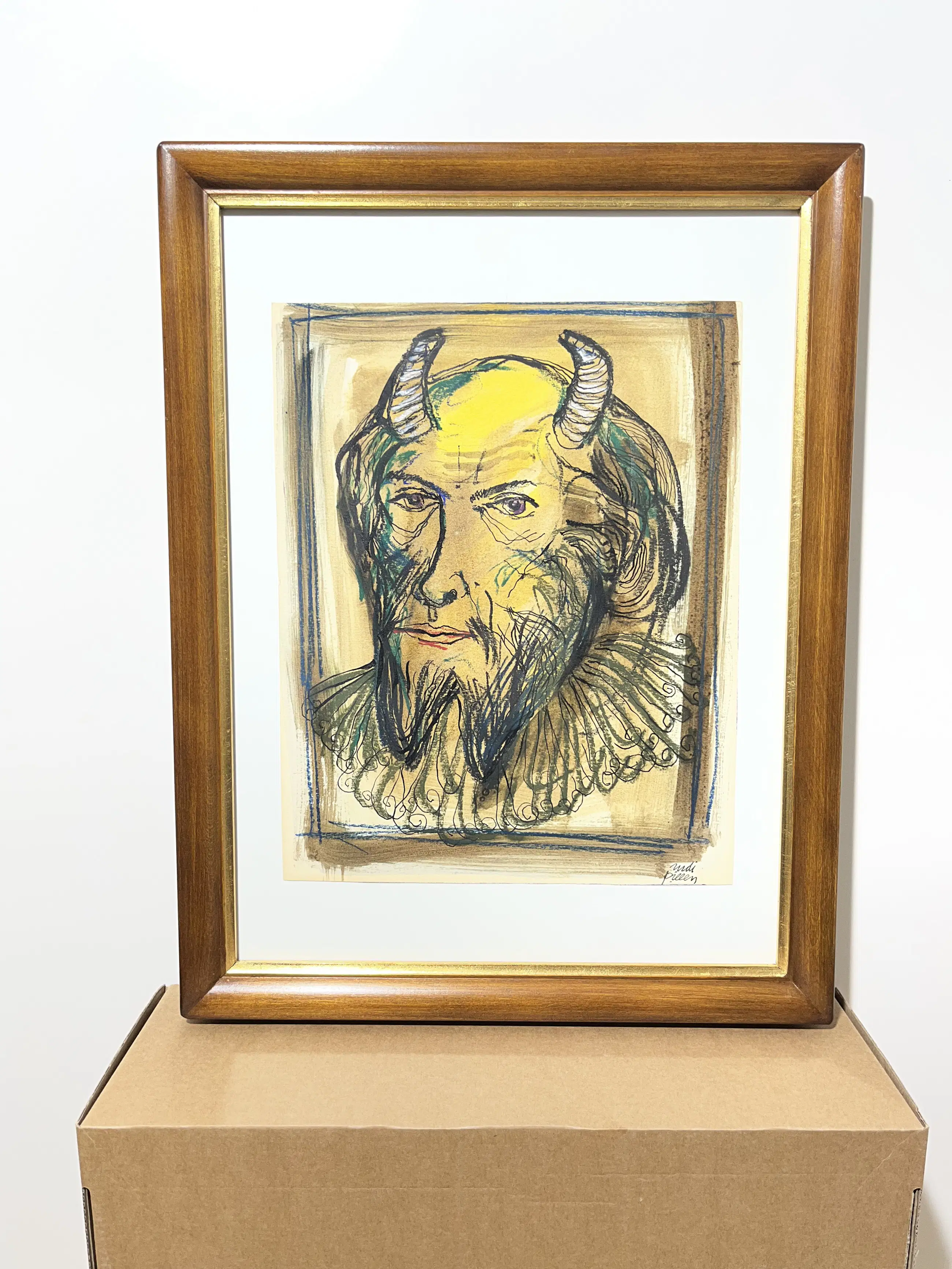 Ingelijst met houten kader, werk zit achter glas. Dit werk wordt uiterst zorgvuldig verpakt en verzonden met track and trace.