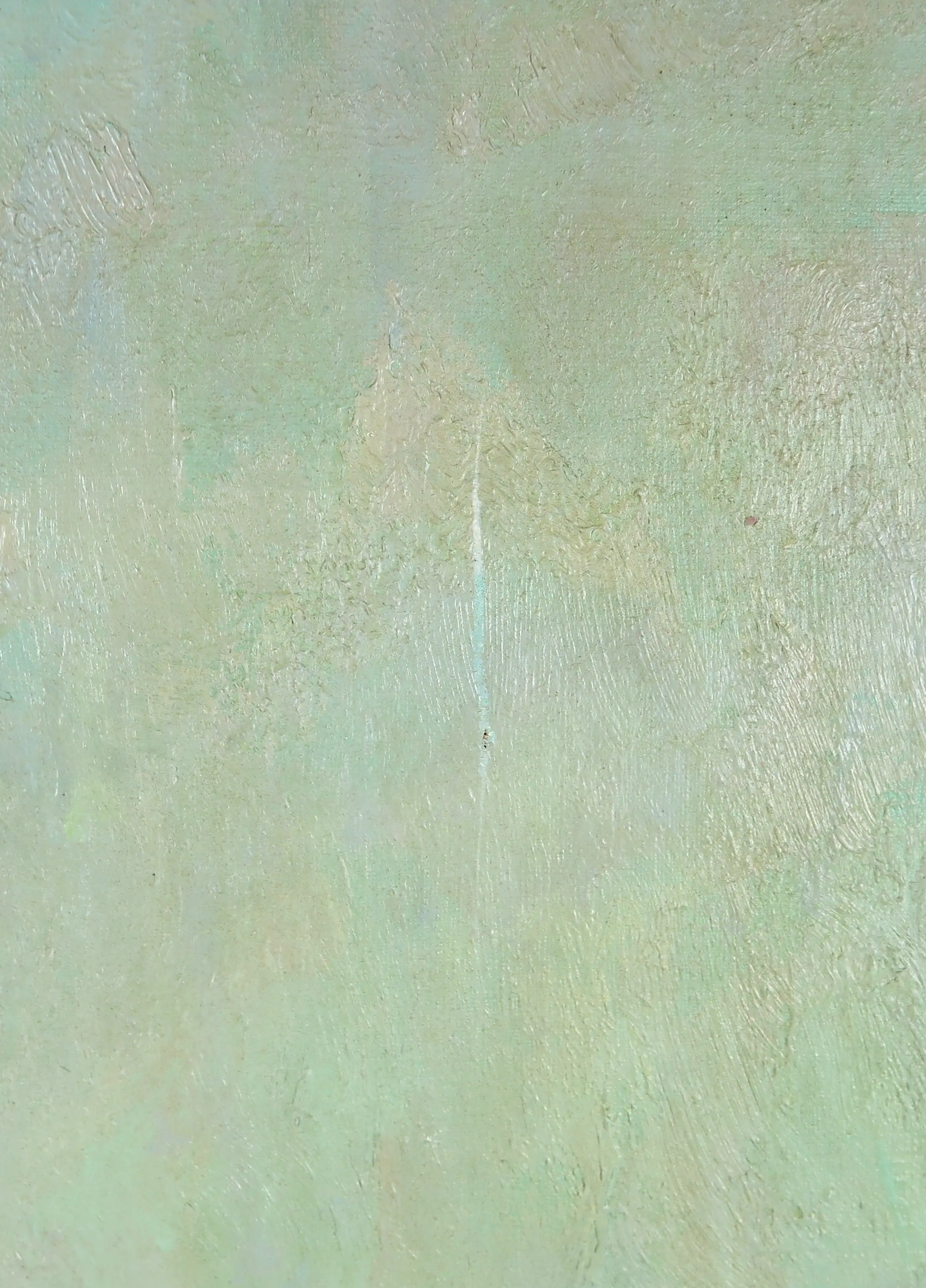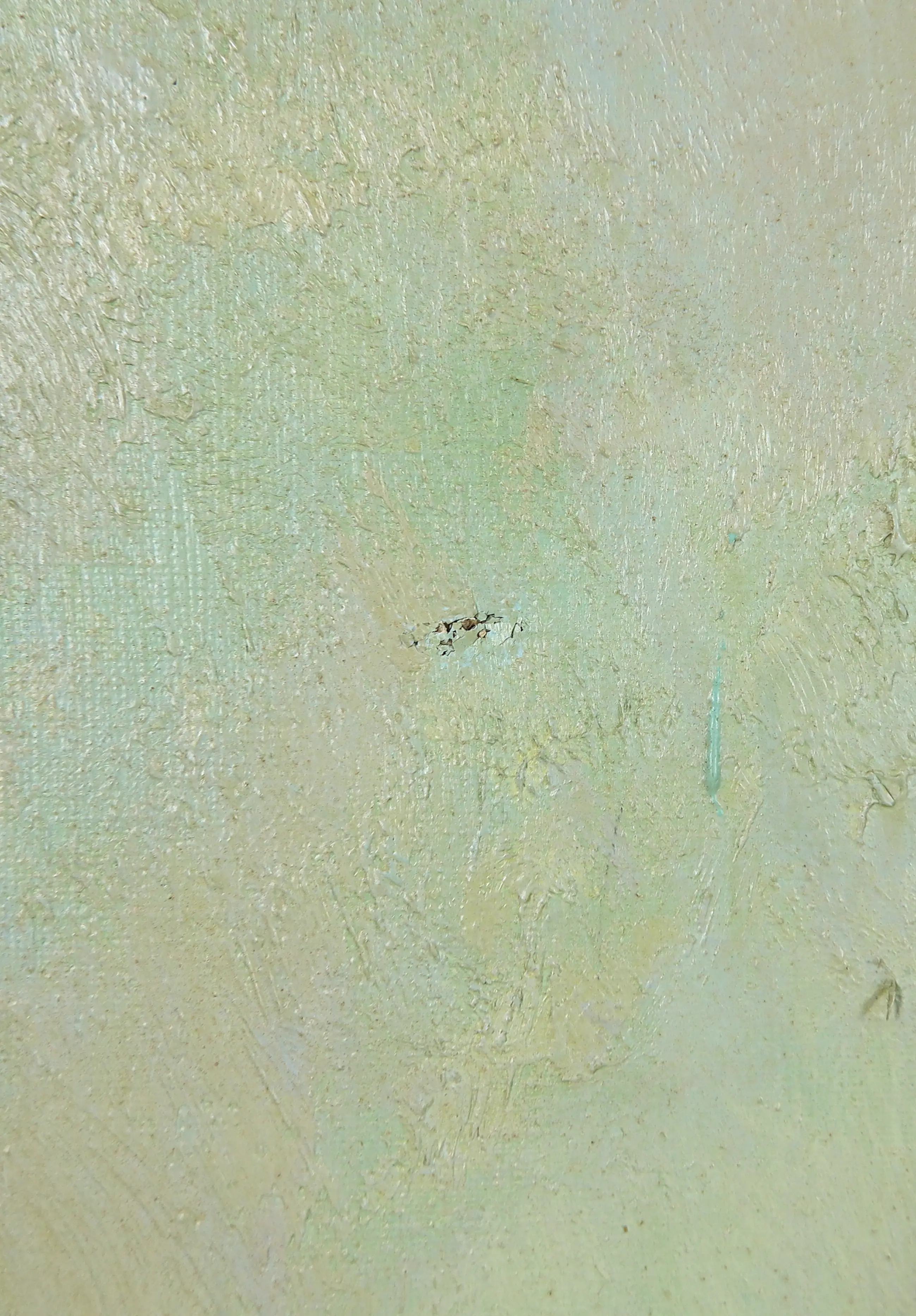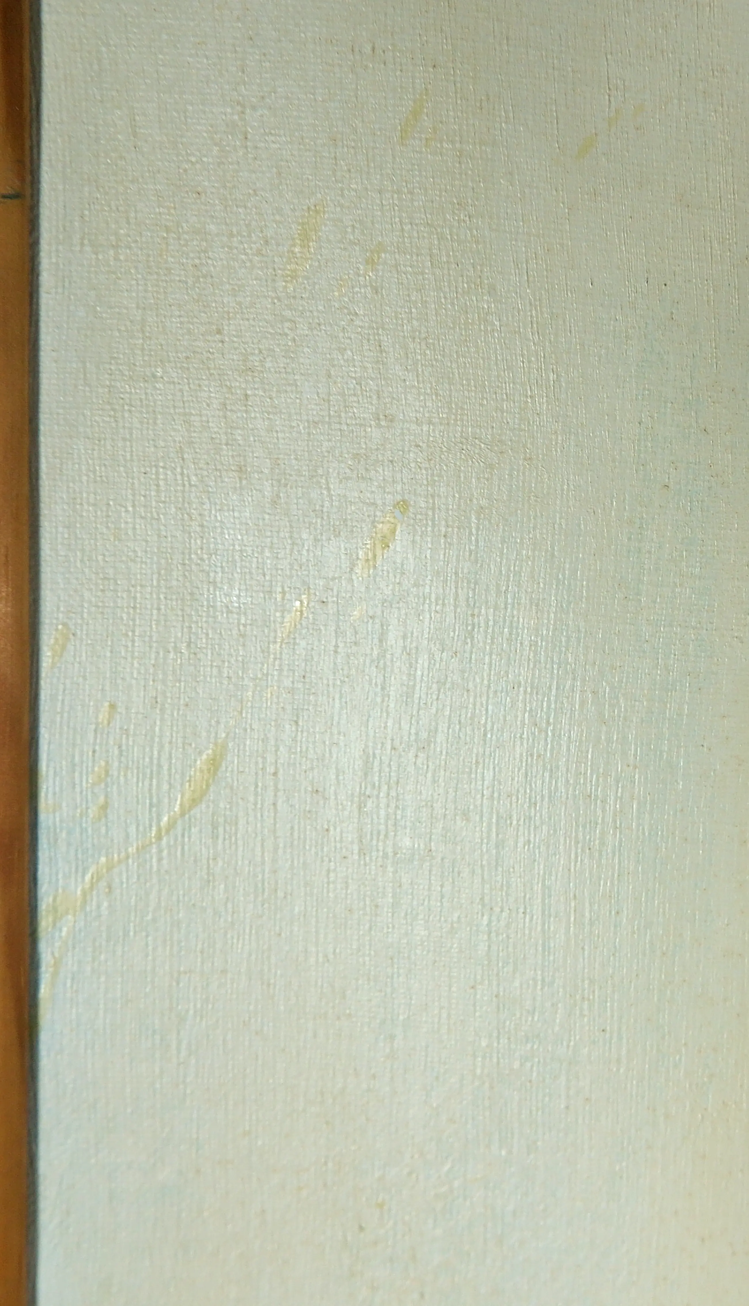 | Het werk heeft krassen, vlekken en twee gaatjes in het doek. Het doek golft ook een beetje. | |