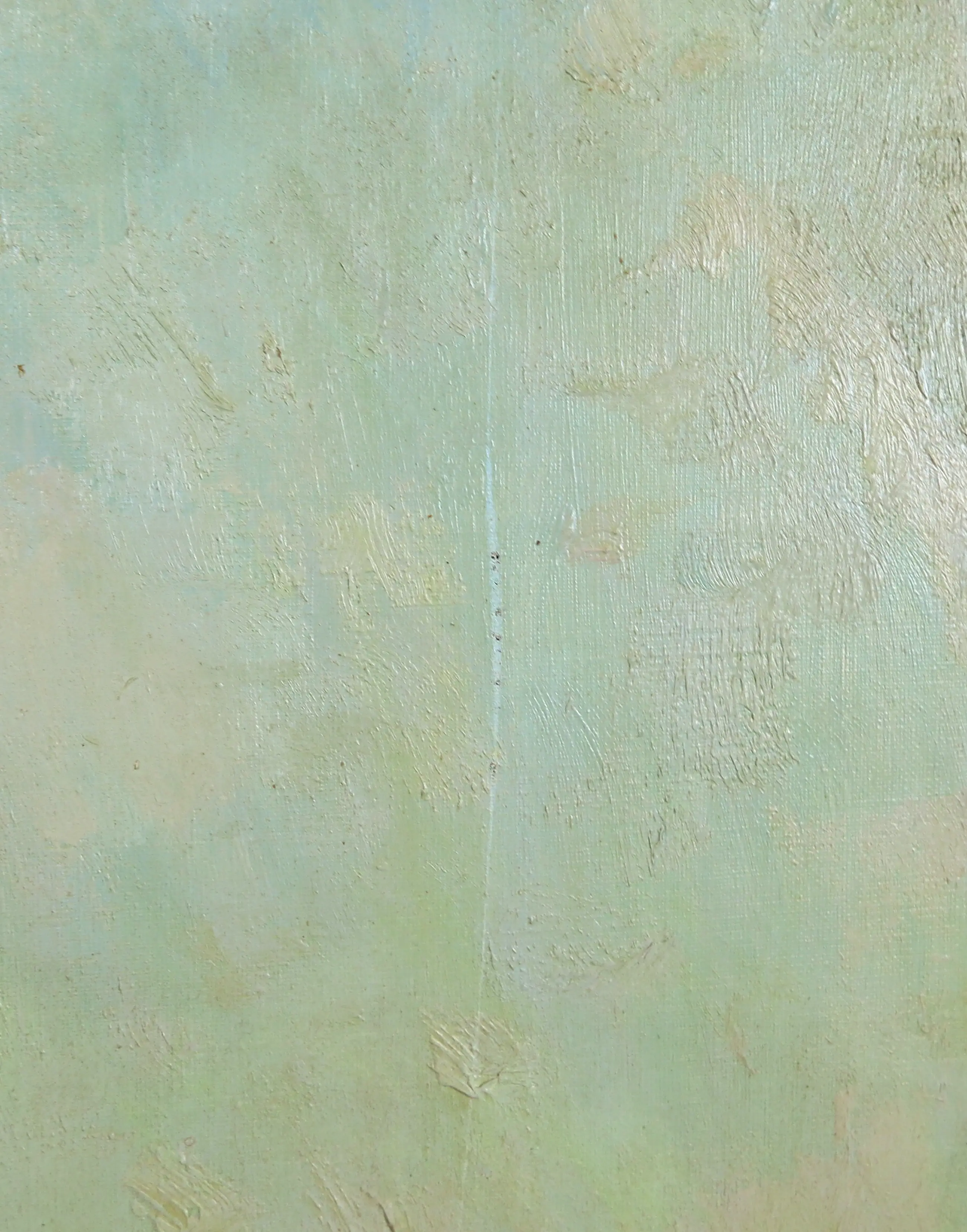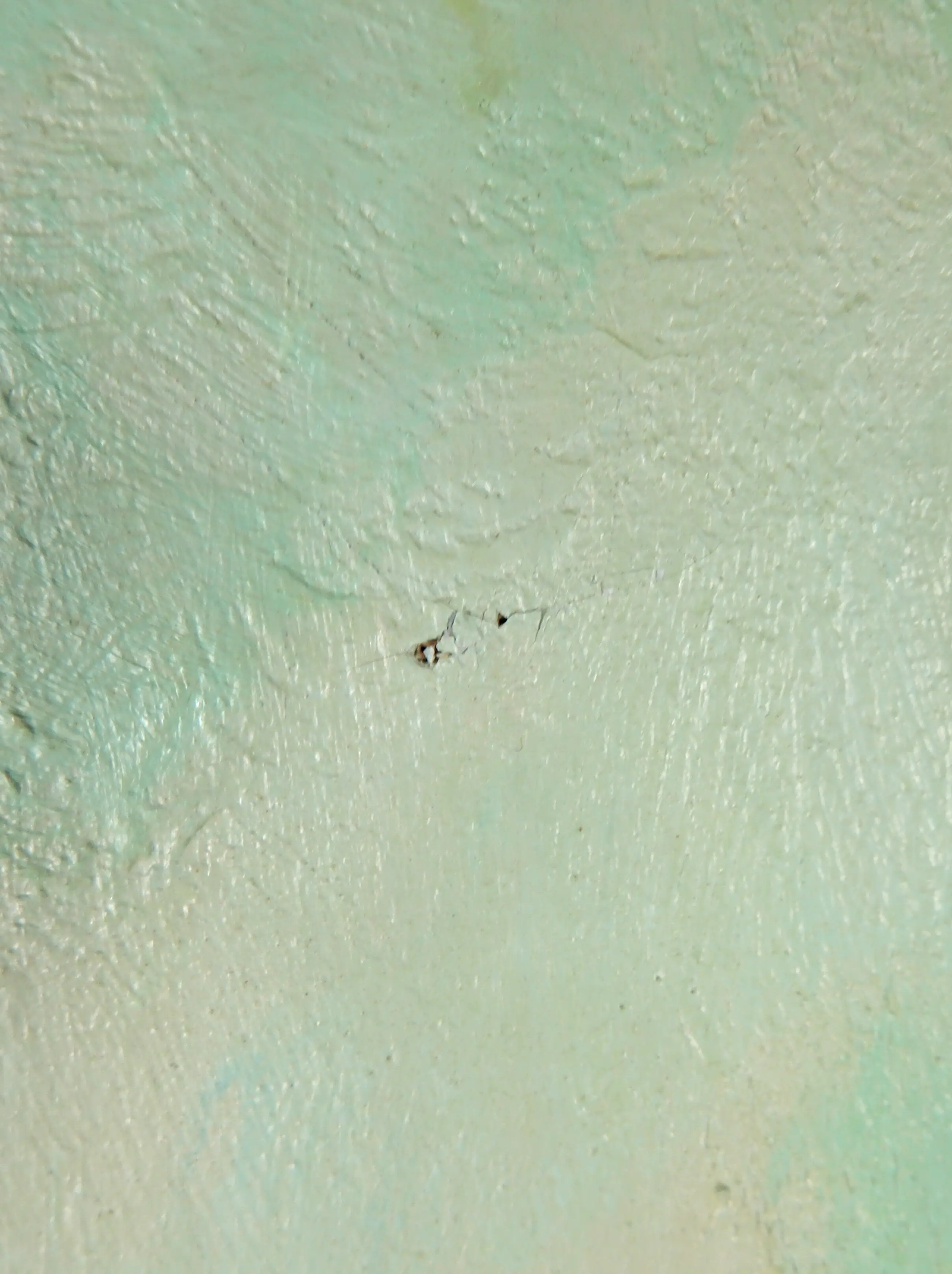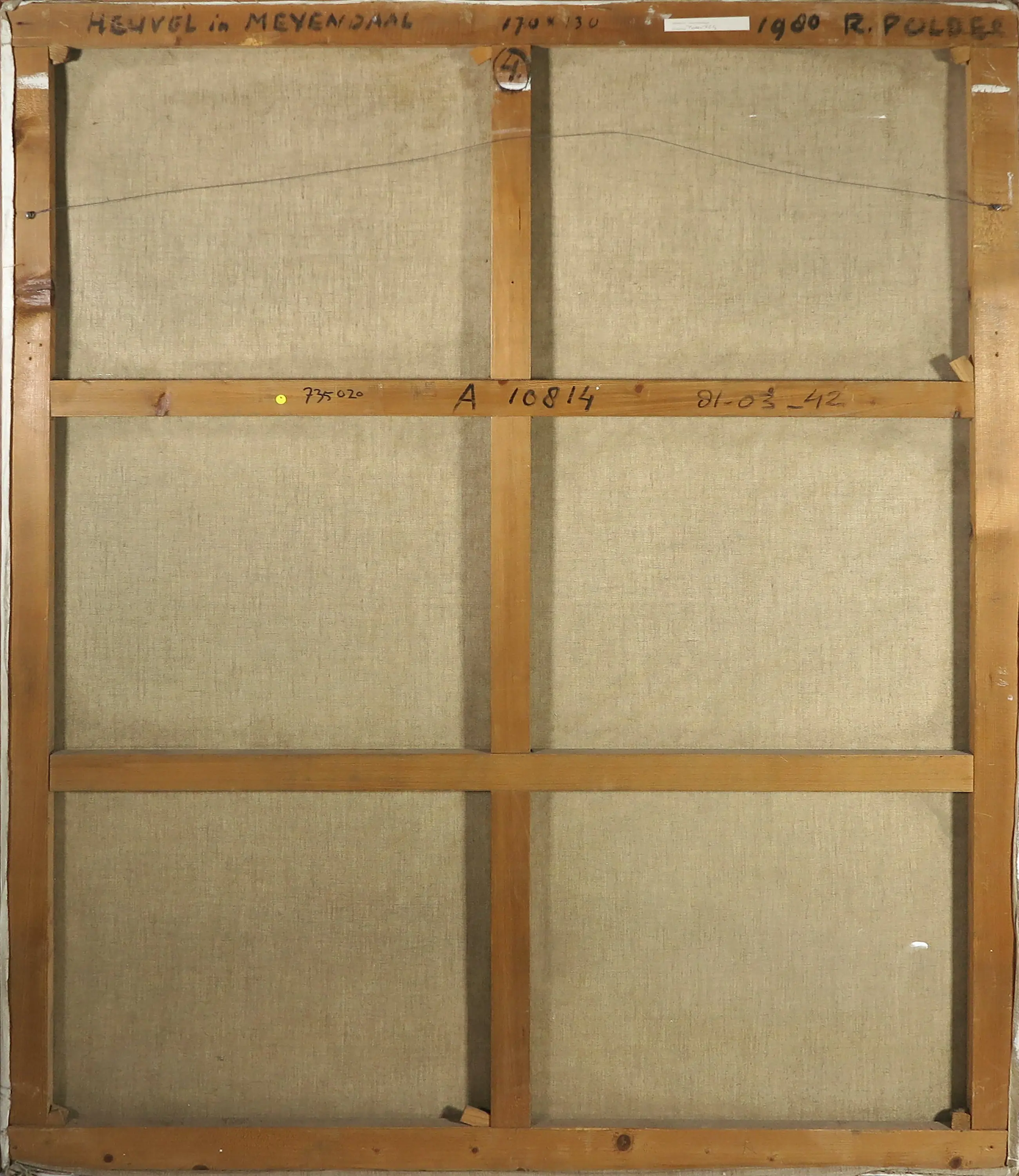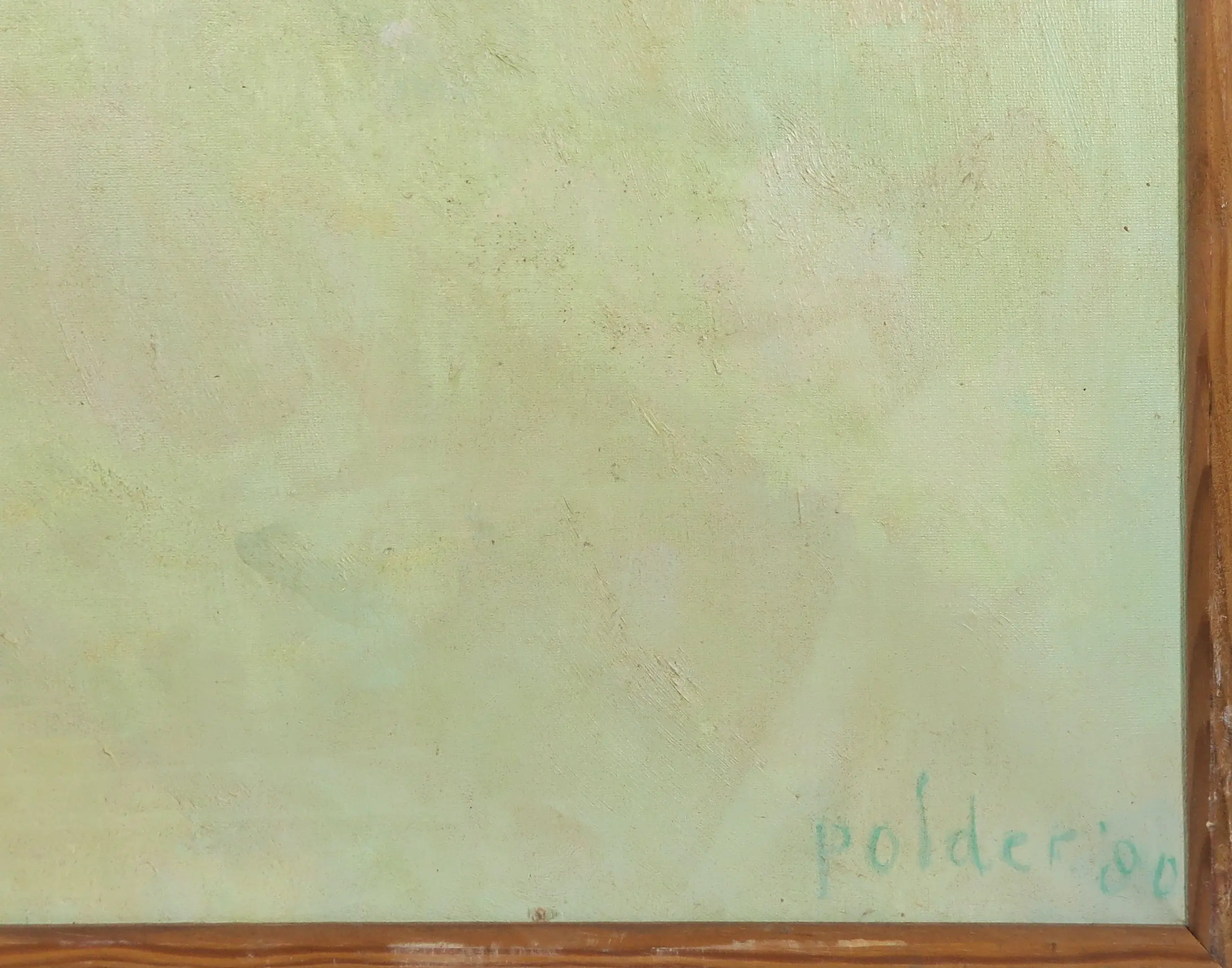 | Het werk heeft krassen, vlekken en twee gaatjes in het doek. Het doek golft ook een beetje. | |