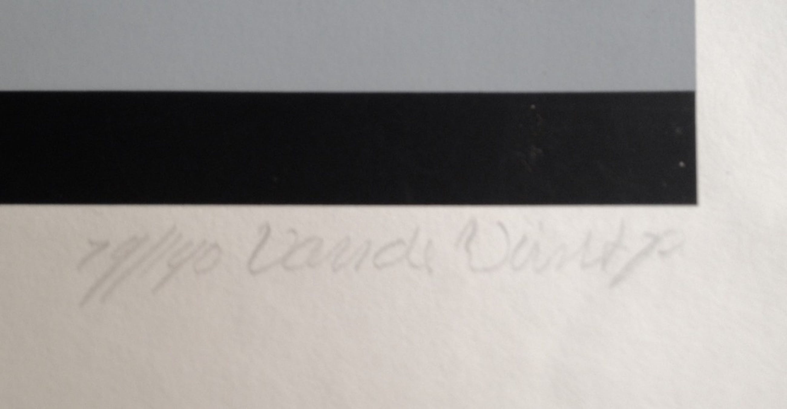 Zeefdruk van Rudi van de Wint, gemaakt voor de Prent 190 serie, afmetingen: 58,5x76 (cm)2. Gesigneerd, gedateerd en genummerd 79/190 met potlood in het werk.