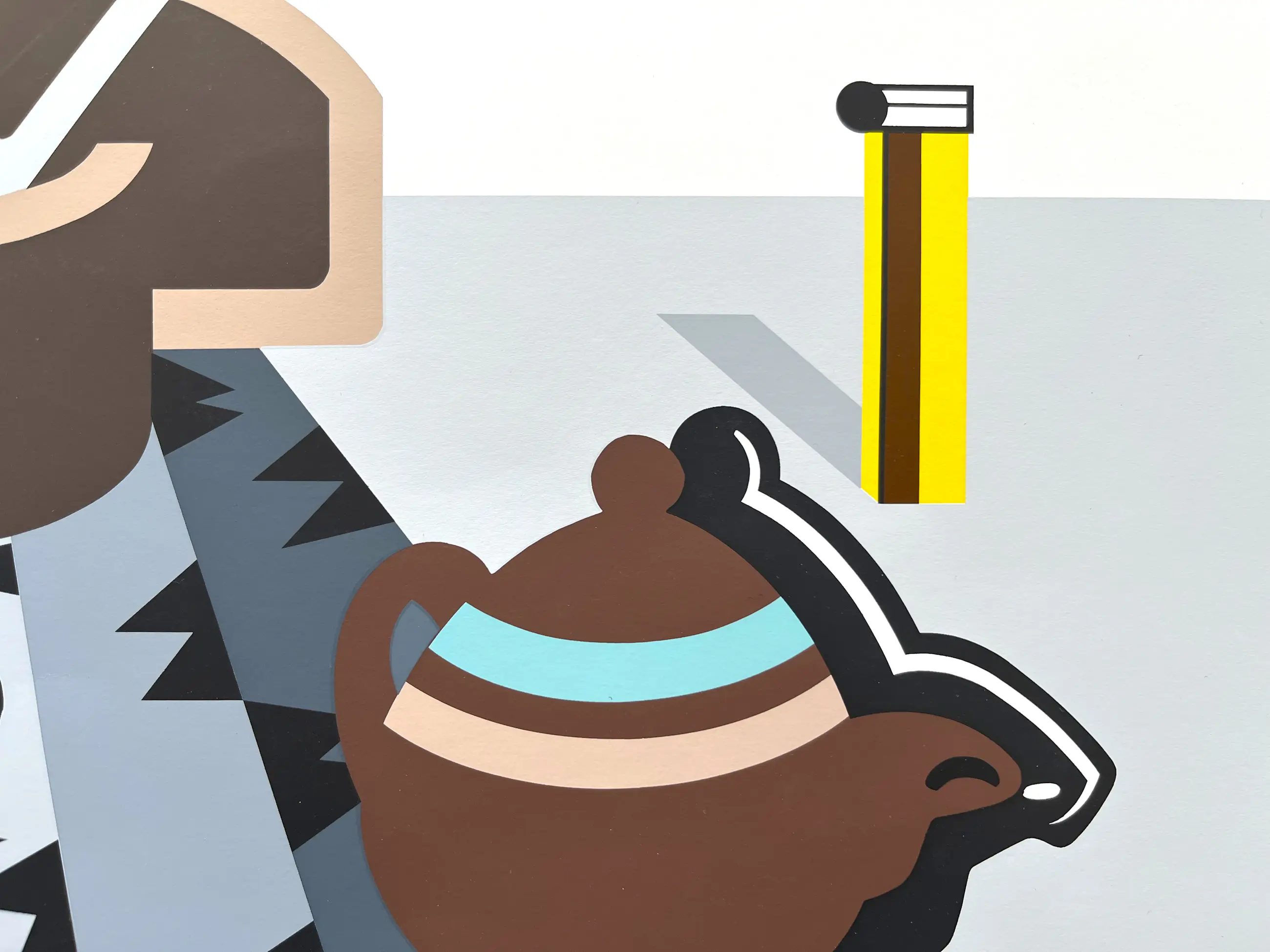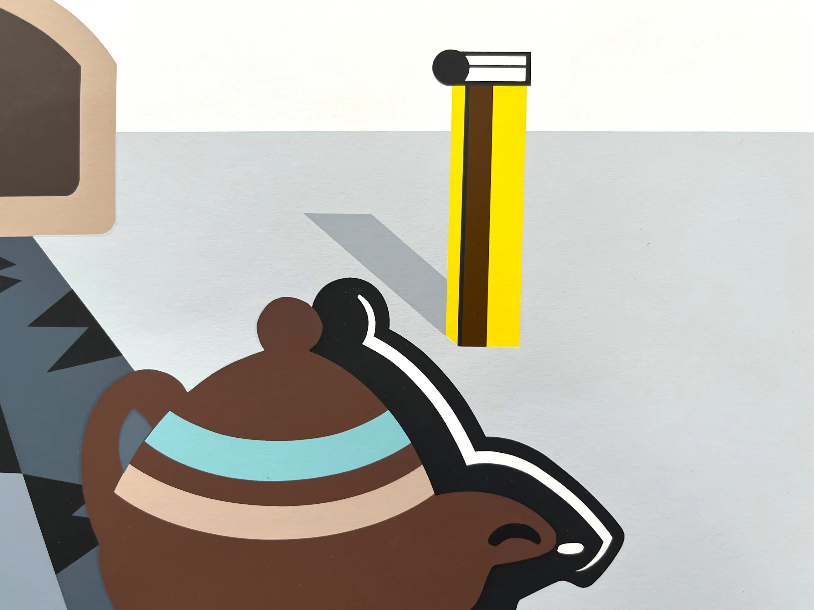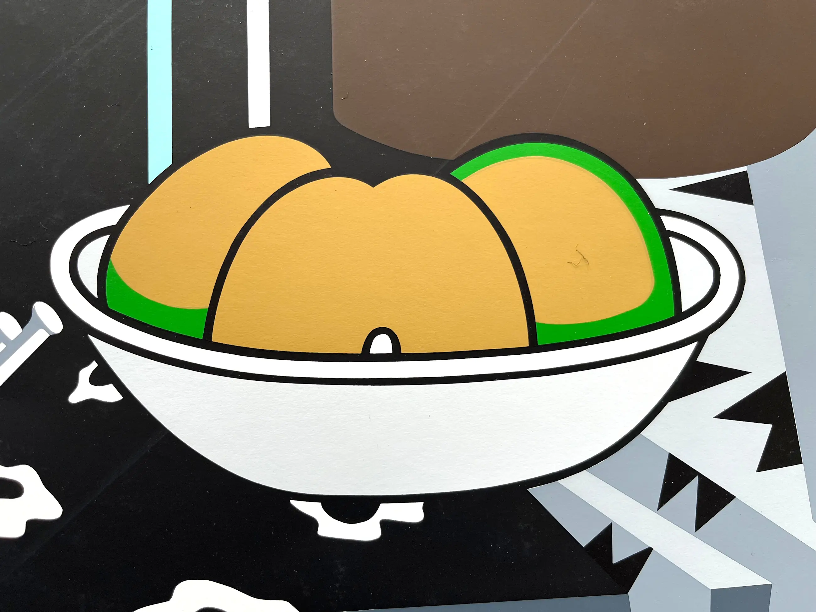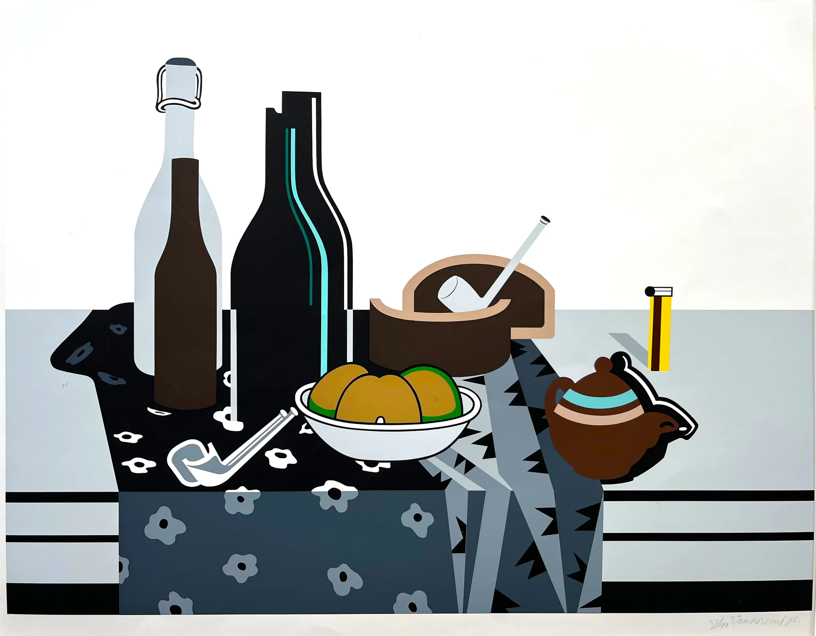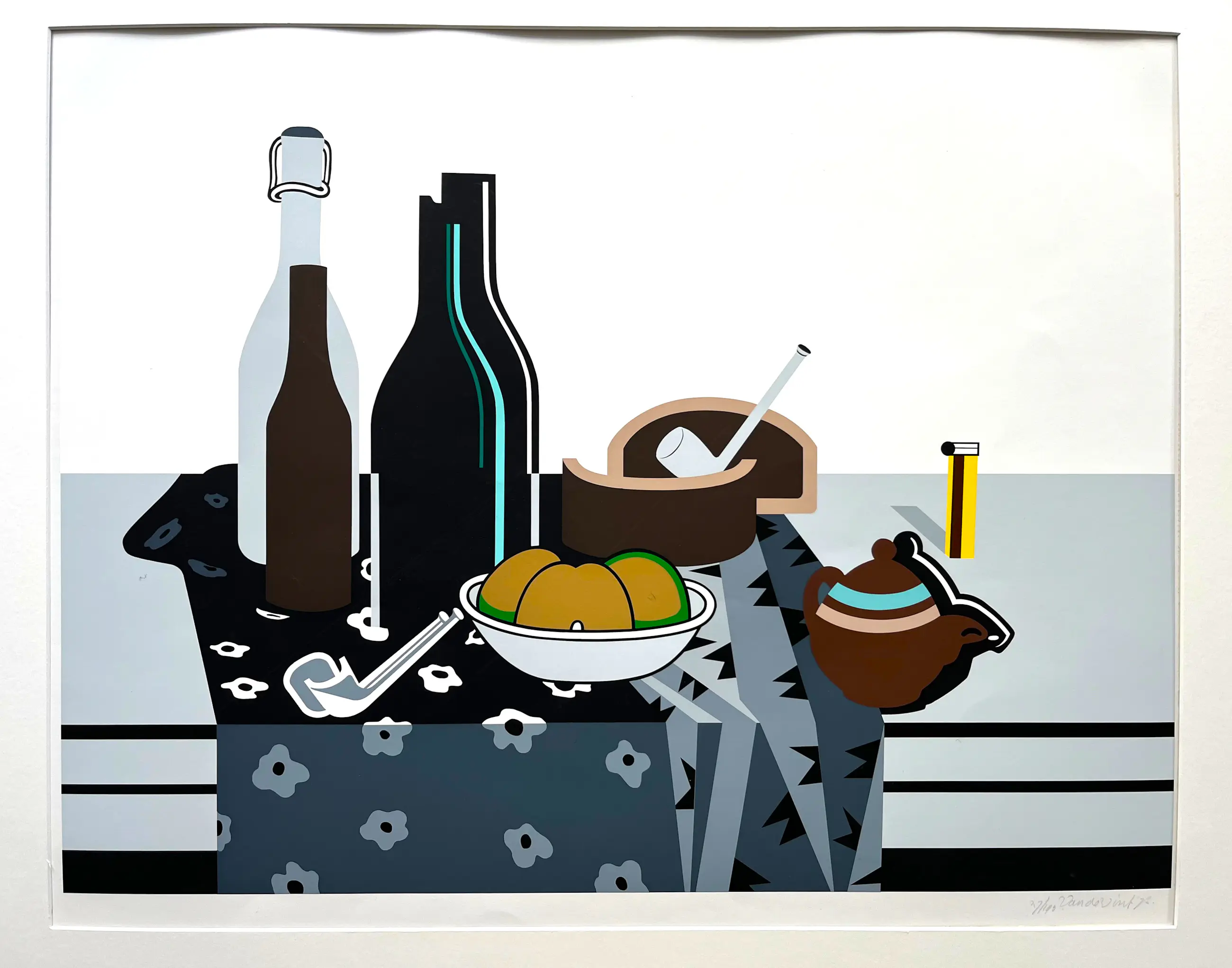 Grote zeefdruk van Rudi van de Wint uit serie van drie, gemonteerd in passe-partout. Kan zo worden ingelijst.