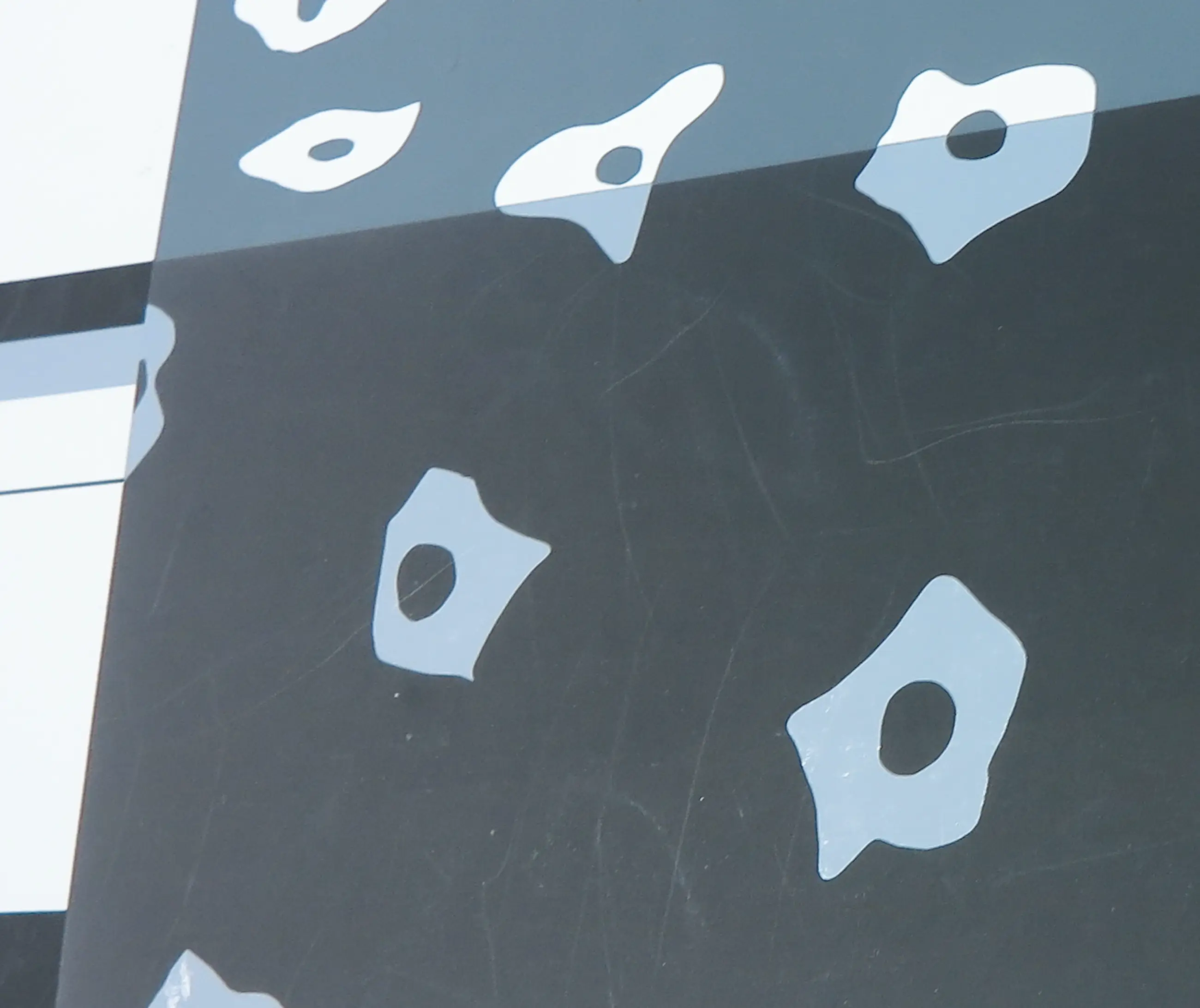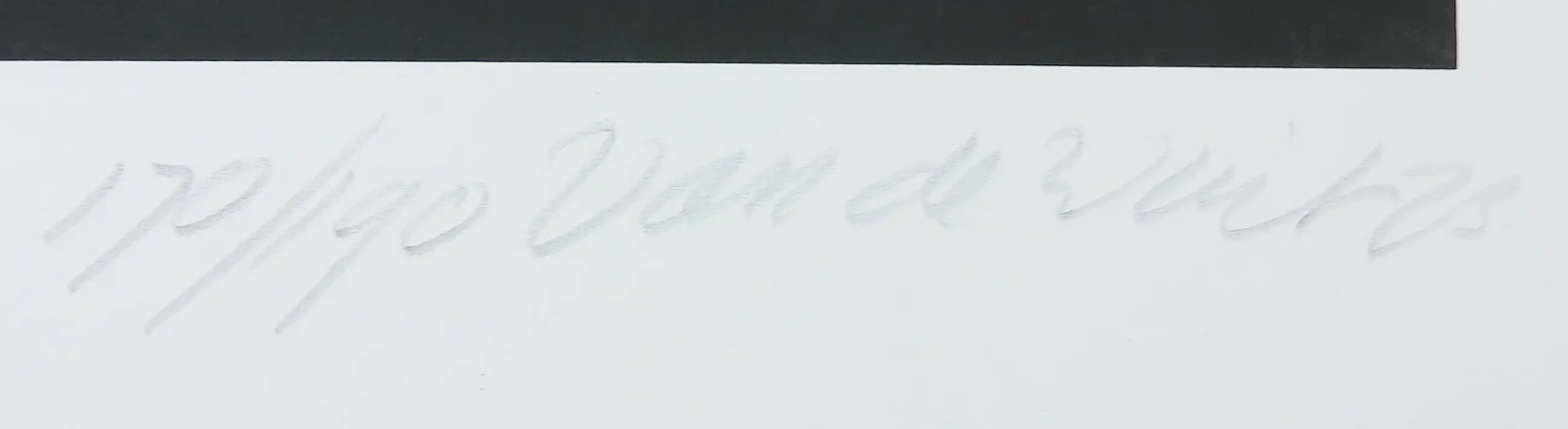 Enkele kreuklijnen en schade zichtbaar aan de randen van het papier. Daarnaast enkele oppervlaktekrasjes zichtbaar. Zie de detailfoto's voor een indruk van de huidige staat van het werk.