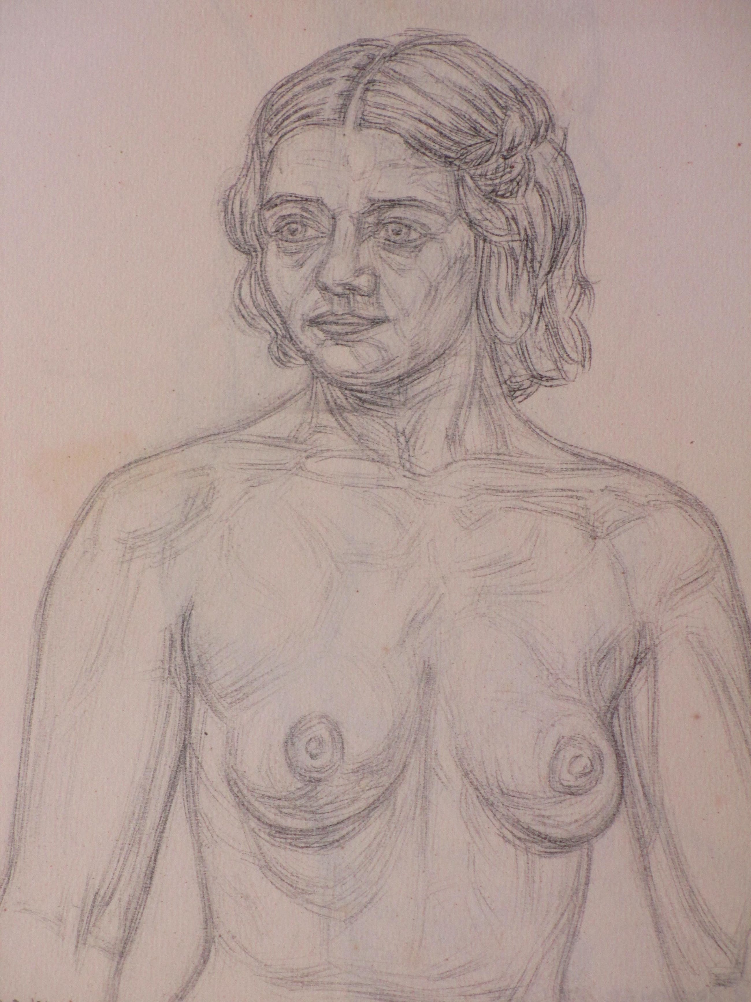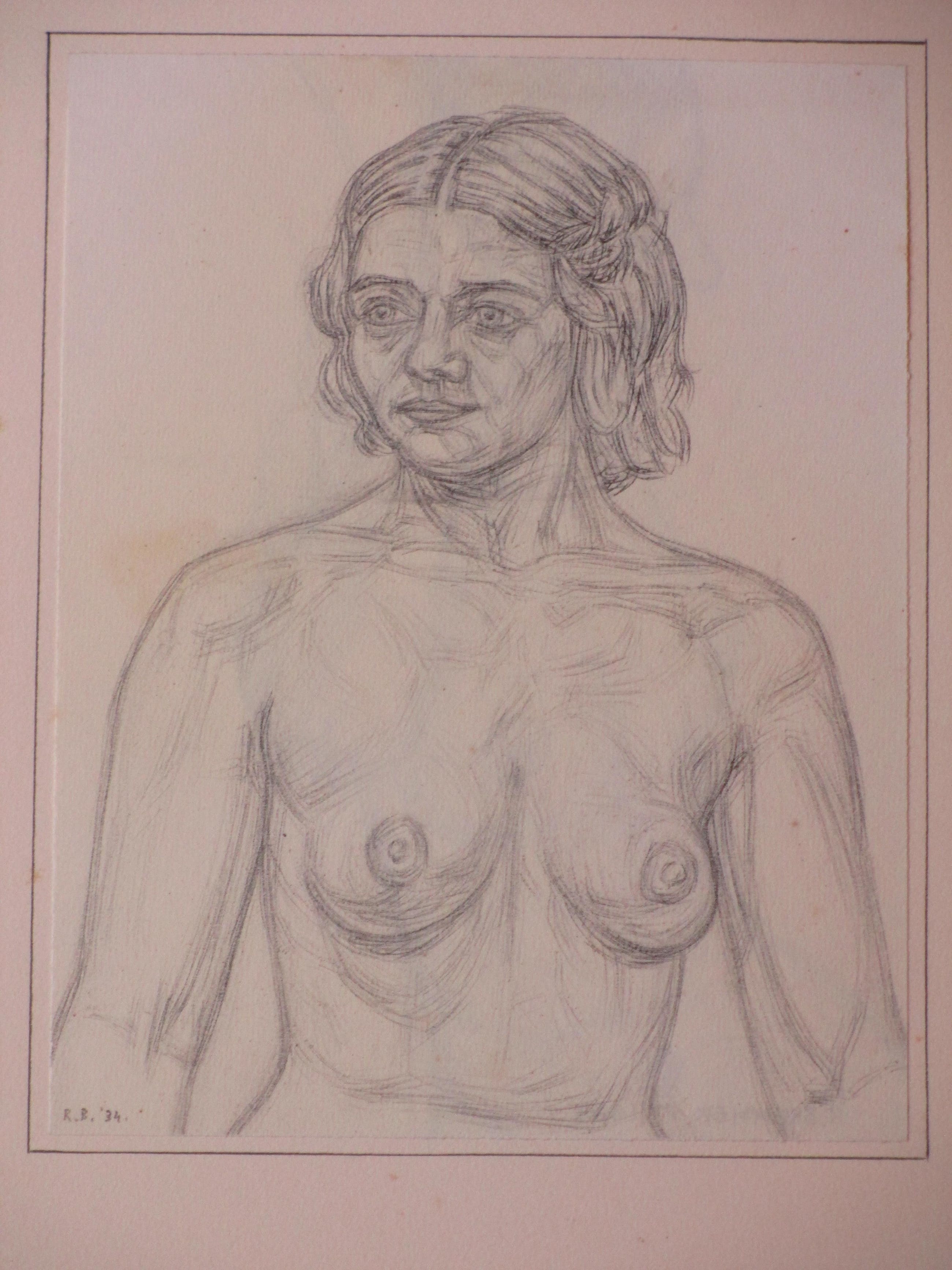 Tekening door Rudolf BremmerPortret van een naakte vrouwLosbladig, beeldmaat 25x20Gemonogrammeerd en gedateerd l.o. 'R.B.'34' Authenticiteit volledig gegarandeerd