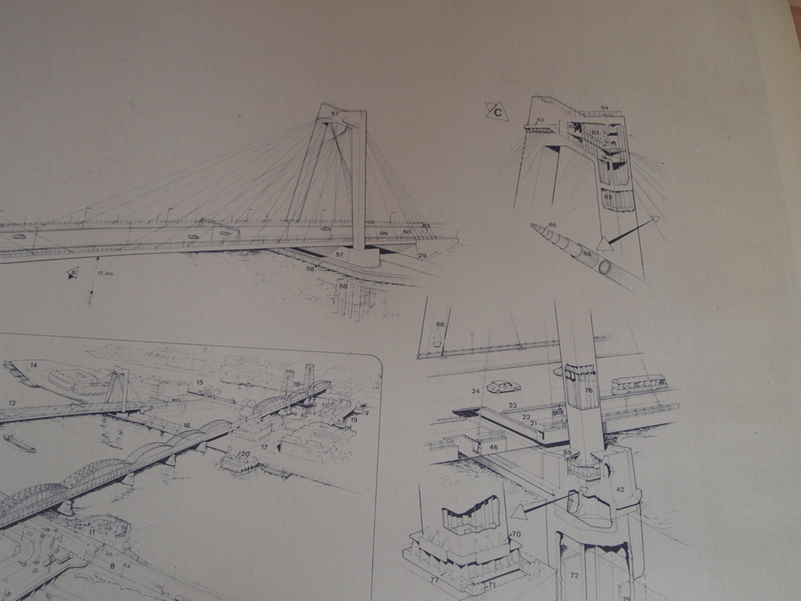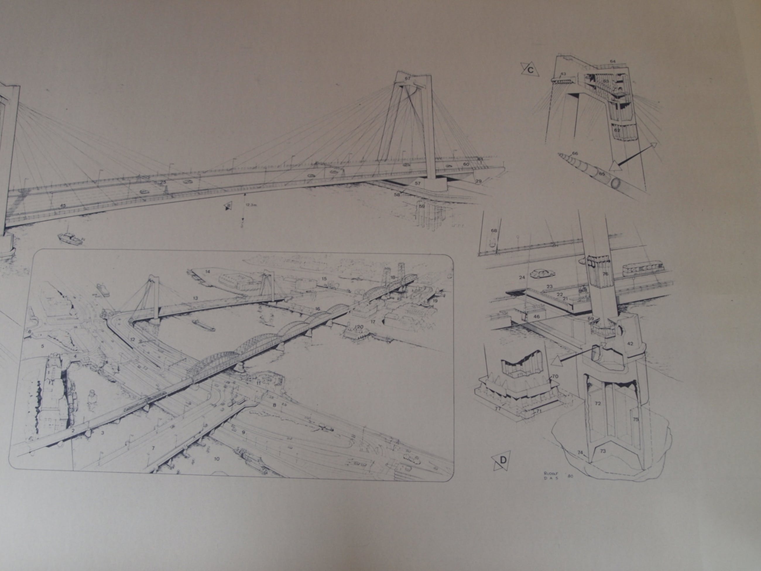Rudolf Das - grote originele bouwtekening van de Willembrug uit 1980. Uitgevoerd in zeer dik zwaar karton. In goede conditie, echter de linker bovenhoek mist een stukje. Gesigneerd en gedateerd.