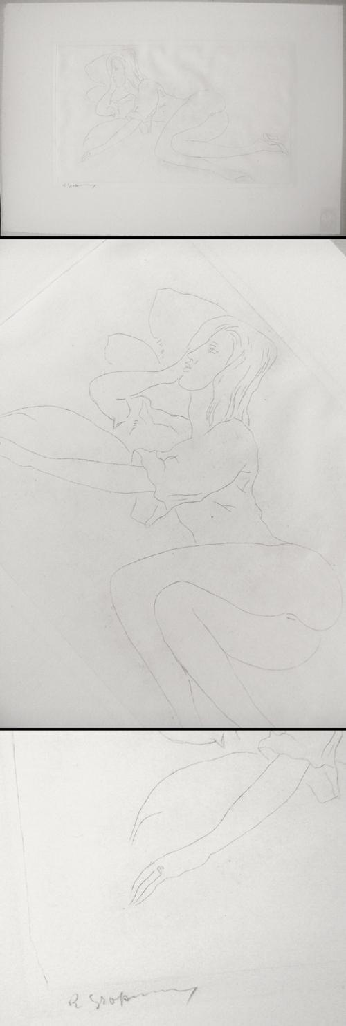 Rudolf Großmann (1882-1941). Liegender weiblicher Halbakt. Gelatineradierung, 1918.