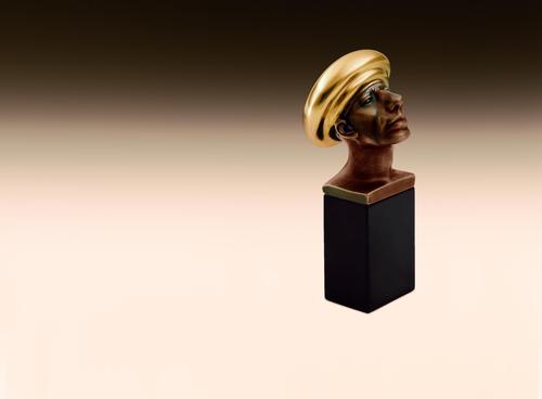 Skulptur aus Bronze, gegossen im Wachsausschmelzverfahren. Patiniert, teilweise poliert und auf einem Sockel aus Marquinia-Marmor montiert.