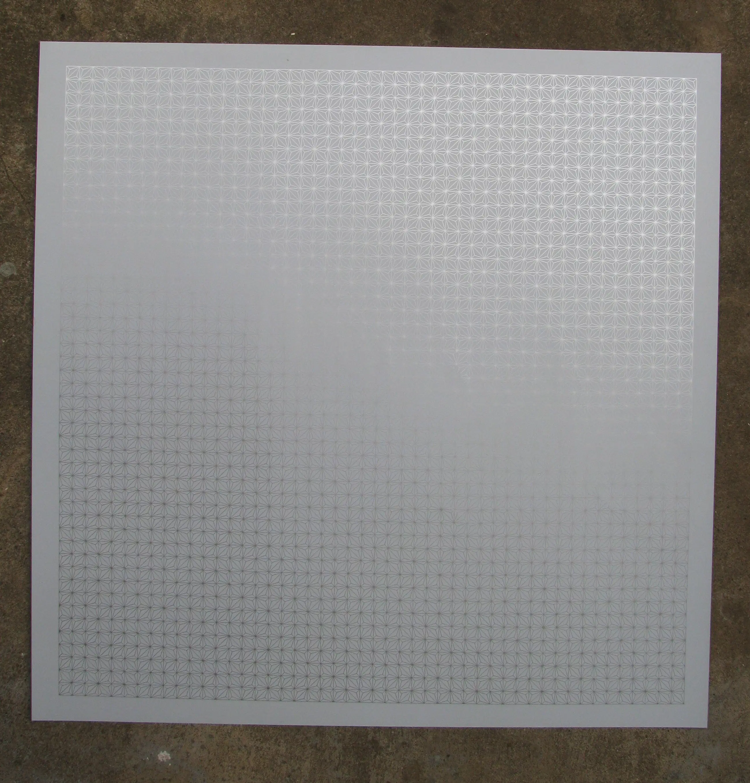 Kleurenzeefdruk, 52 x 52 cm, zilverkleurig. Op de achterkant gegraveerd en opgedragen Editie, hier pagina 5 van 86. Prachtige toepassing van kleur