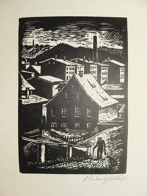 Original-Holzschnitt von Rudolf Kraft. Rückseitig mit Verlags-Nr. 161 der Balder-Presse bezeichnet. Bildformat ca. 12 x 17 cm, Blattformat 35 x 25 cm. Versand: BRD 4.00 Euro versichert, Europa 6.00 Euro, Übersee 12.00 Euro.